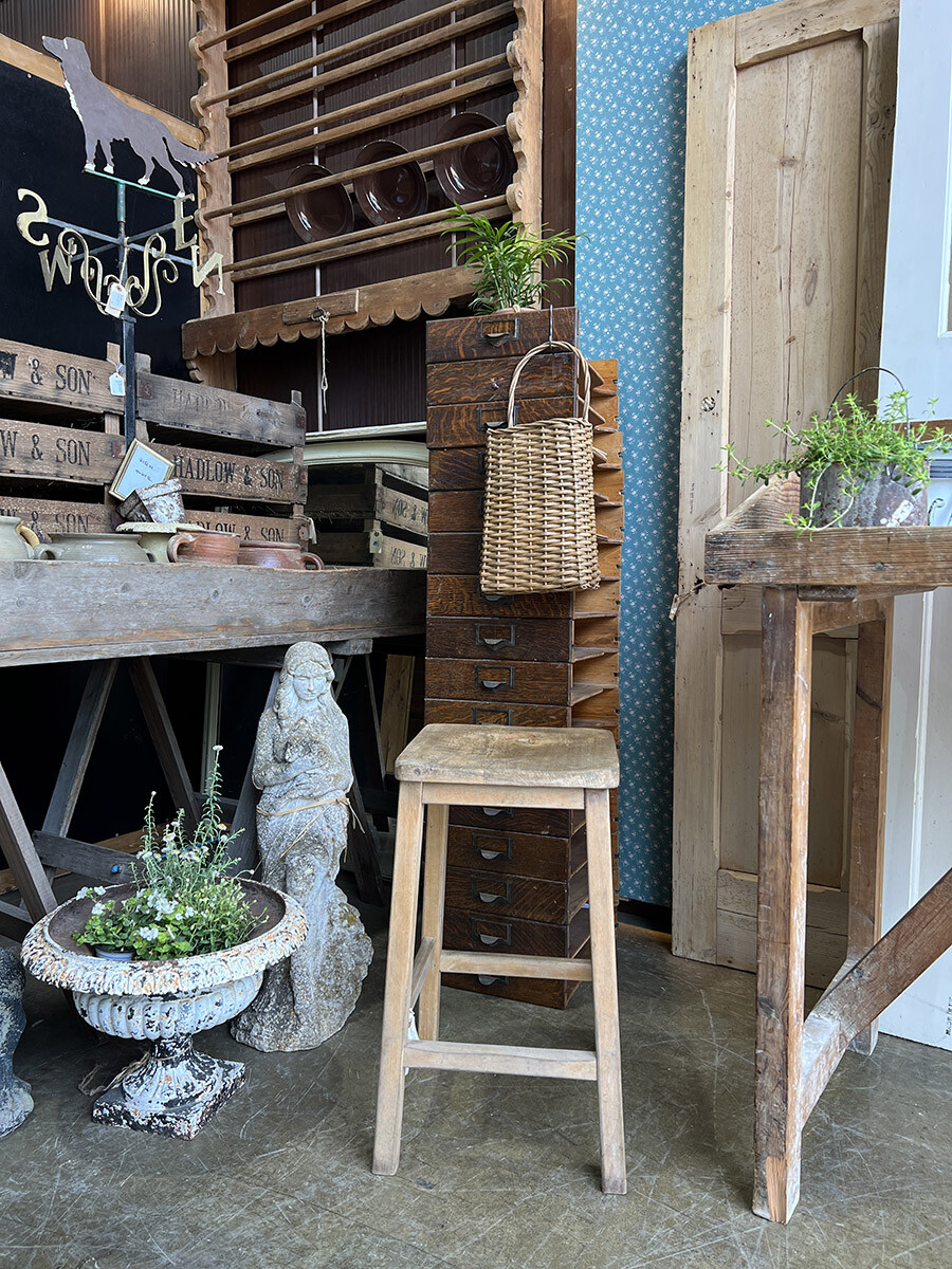 사이언스 랩, 즉 과학실에서 사용했던 바스툴 높이의 빈티지 스툴입니다. 본 상품처럼 사이언스 랩에서 사용했던 스툴이나, 대형 포스터 사이즈의 생물 도감 등 독특한 느낌을 갖고 있는 사이언스 랩 아이템도 빈티지 영역에서 그 자리를 확고히 하고 있습니다.