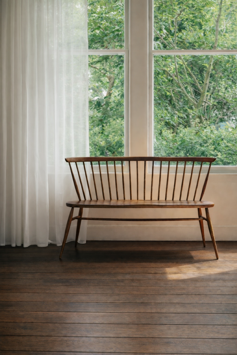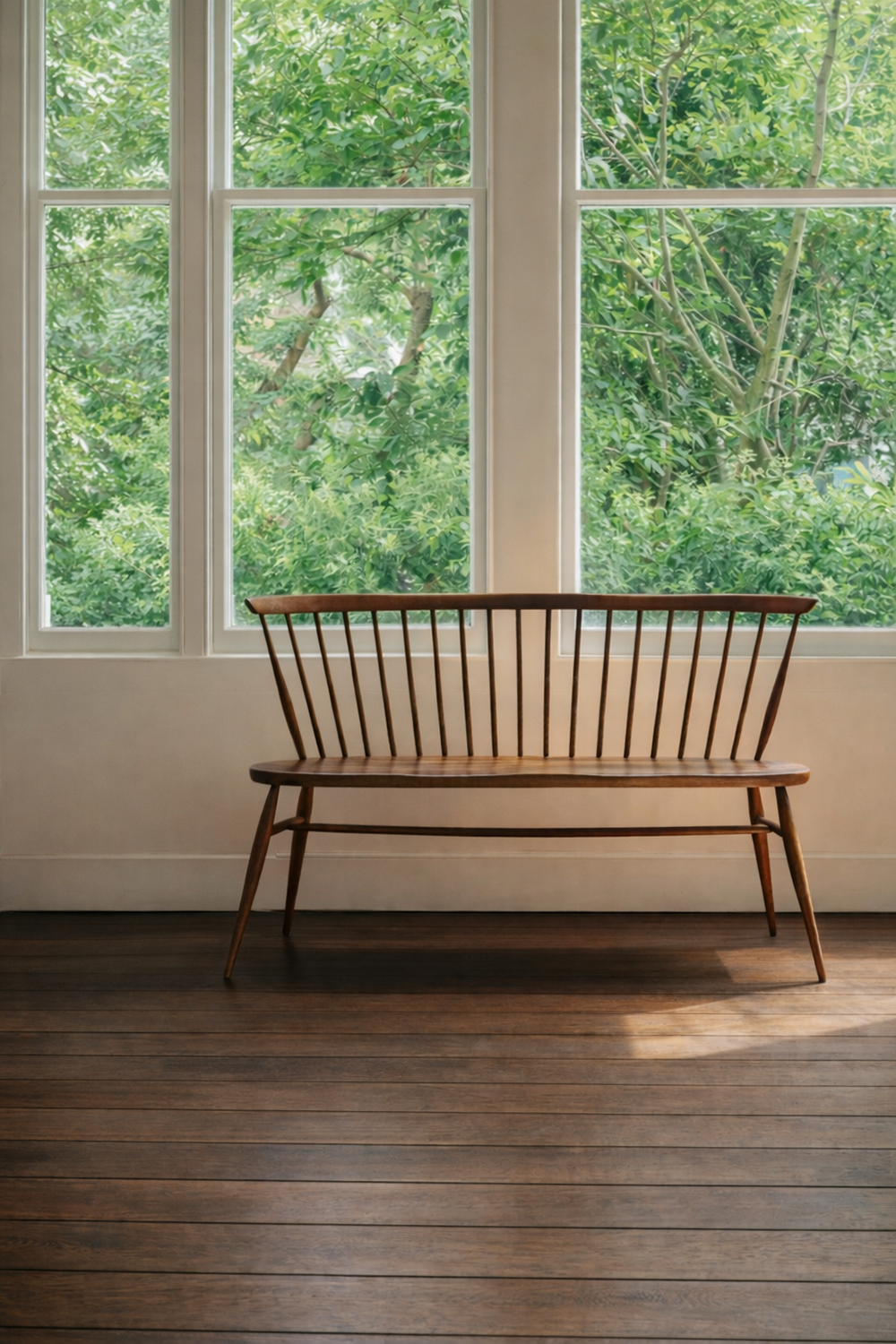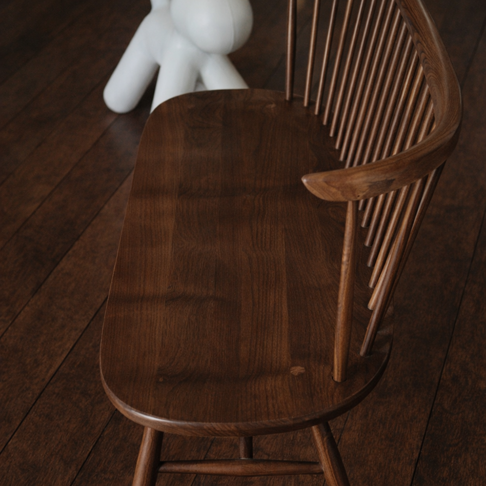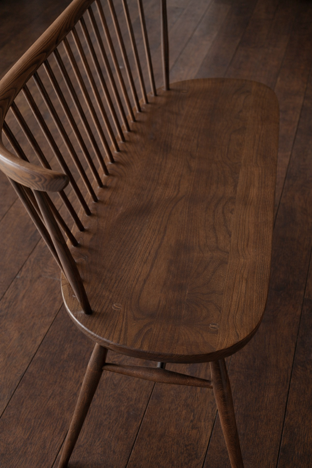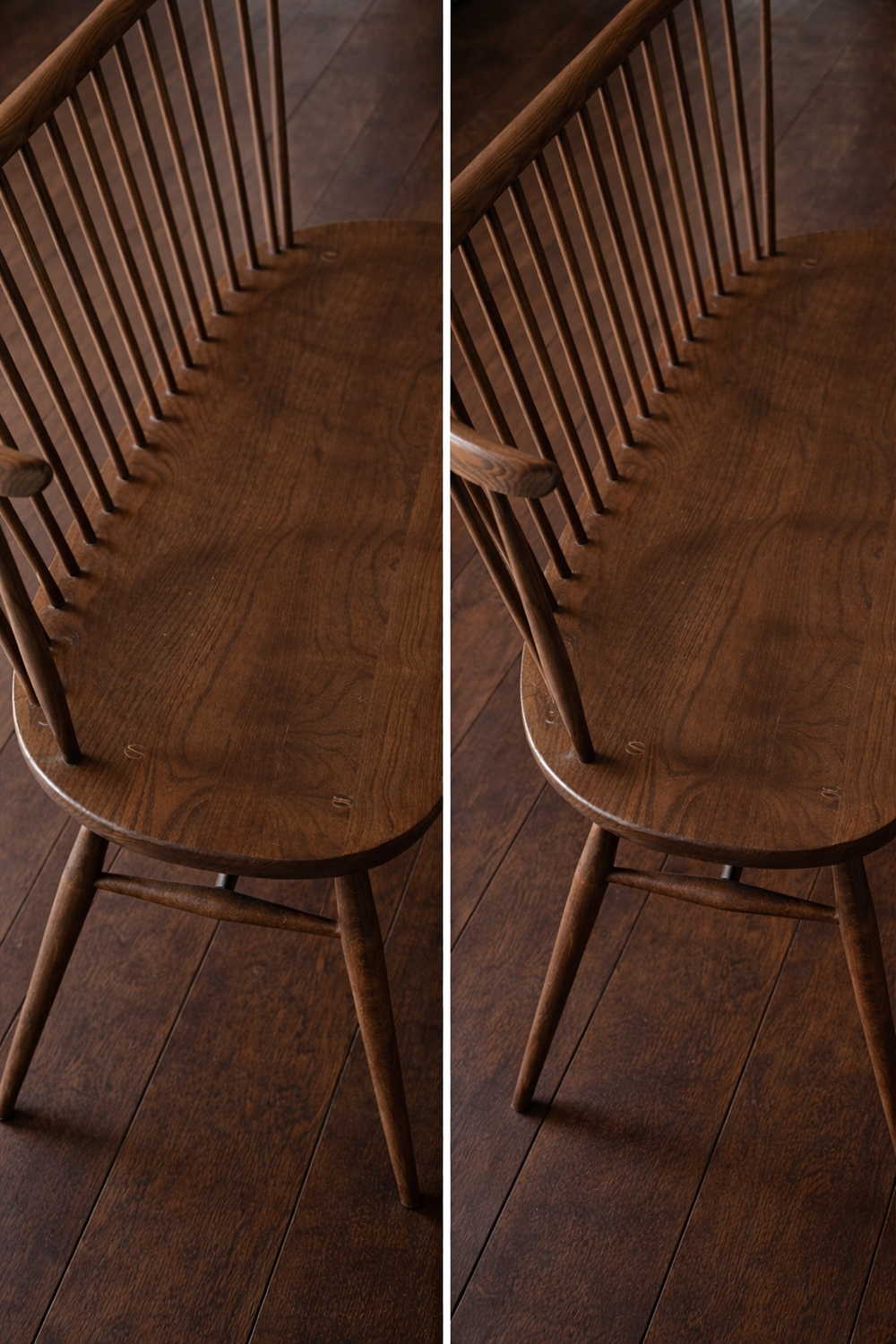 최초의 러브 시트 체어의 고유 상품번호는 349 번이었습니다. 크기도 현재보다 작았고, 등받이를 이루는 스핀들의 개수가 당시에는 13개였습니다. 두 명이 약간 타이트하게 앉을 수 있는 크기였는데, 1956년~1959년 단 3년 동안만 이 형태로 제작되었고, 이듬해인 1960년부터는 크기를 키워서 현재의 사이즈로 제작되었습니다. 크기가 커지면서 등받이의 스핀들의 개수는 19개로 늘어났고, 이 새로 만들어진 러브 시트 체어의 모델 넘버는 450 번으로 결정되었죠.