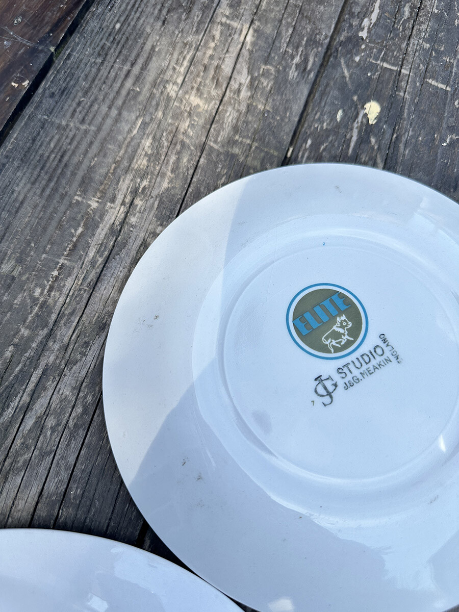 J & G 미킨(J & G Meakin)은 영국 포터리 메이커의 성지, 스태퍼드셔주 스토크-온-트렌트에서 1851년에 창업한 포터리 메이커입니다. 본 상품은 1970년대에 제시 테이트(Jessie Tait)가 디자인 한 'ELITE' 상품군에 속하는 사이드 플레이트입니다.