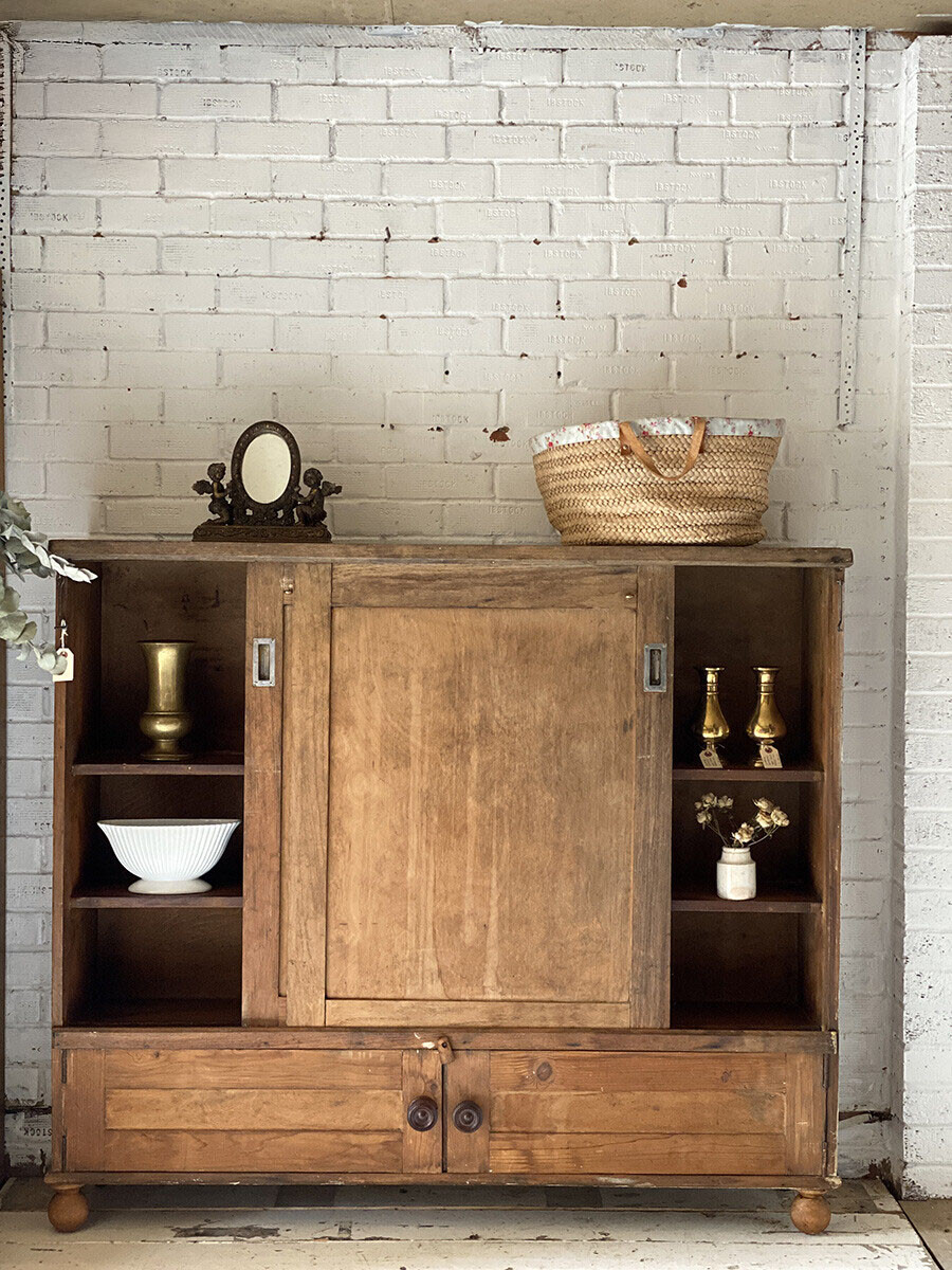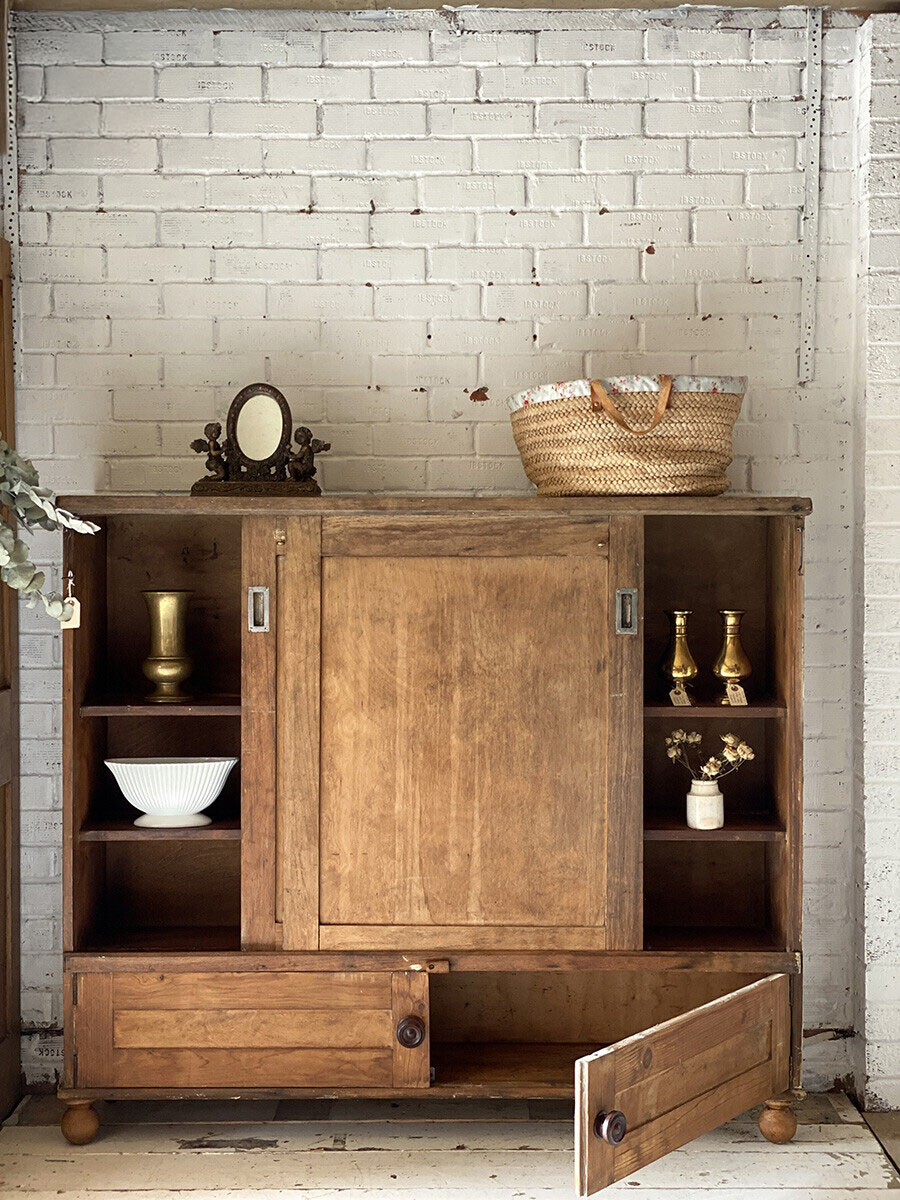 15-087 앤틱 파인 스쿨 슬라이딩 도어 캐비넷