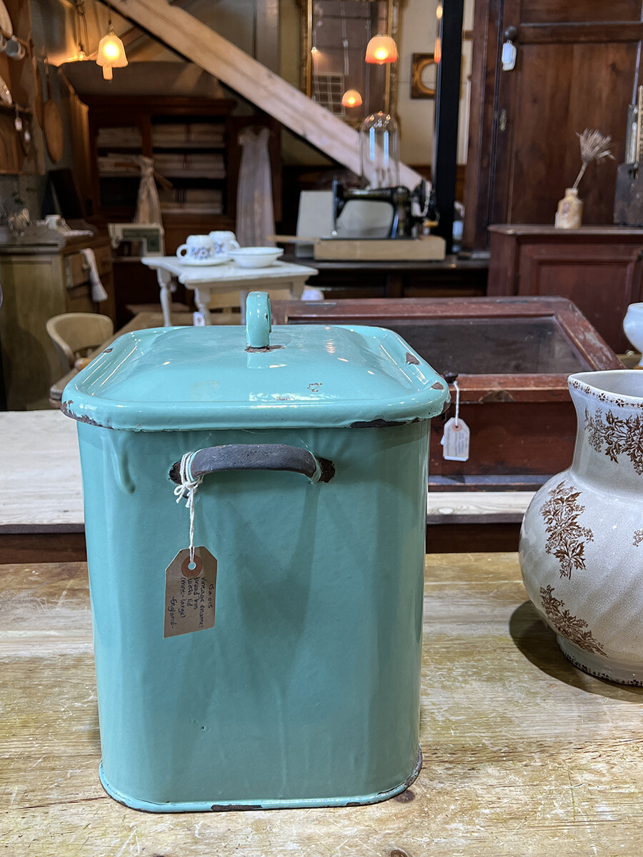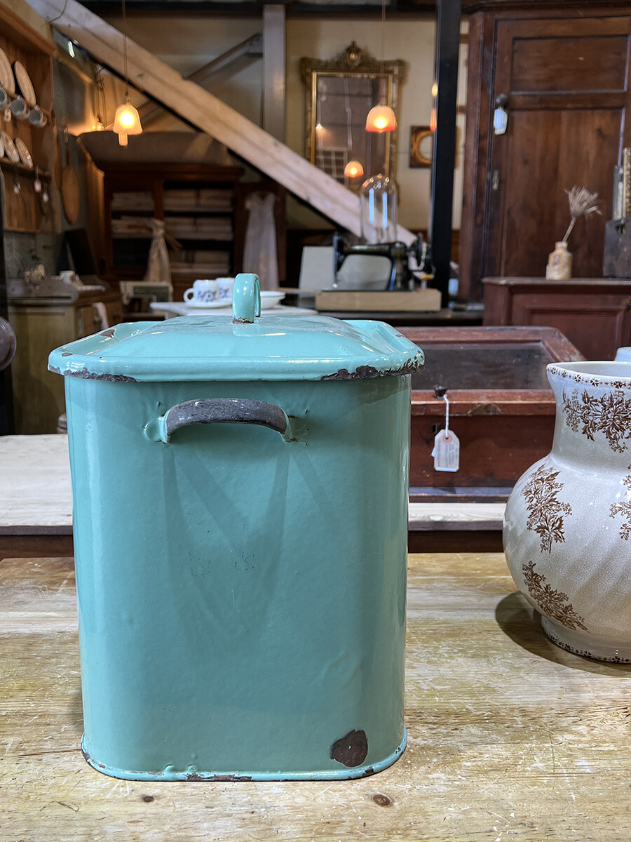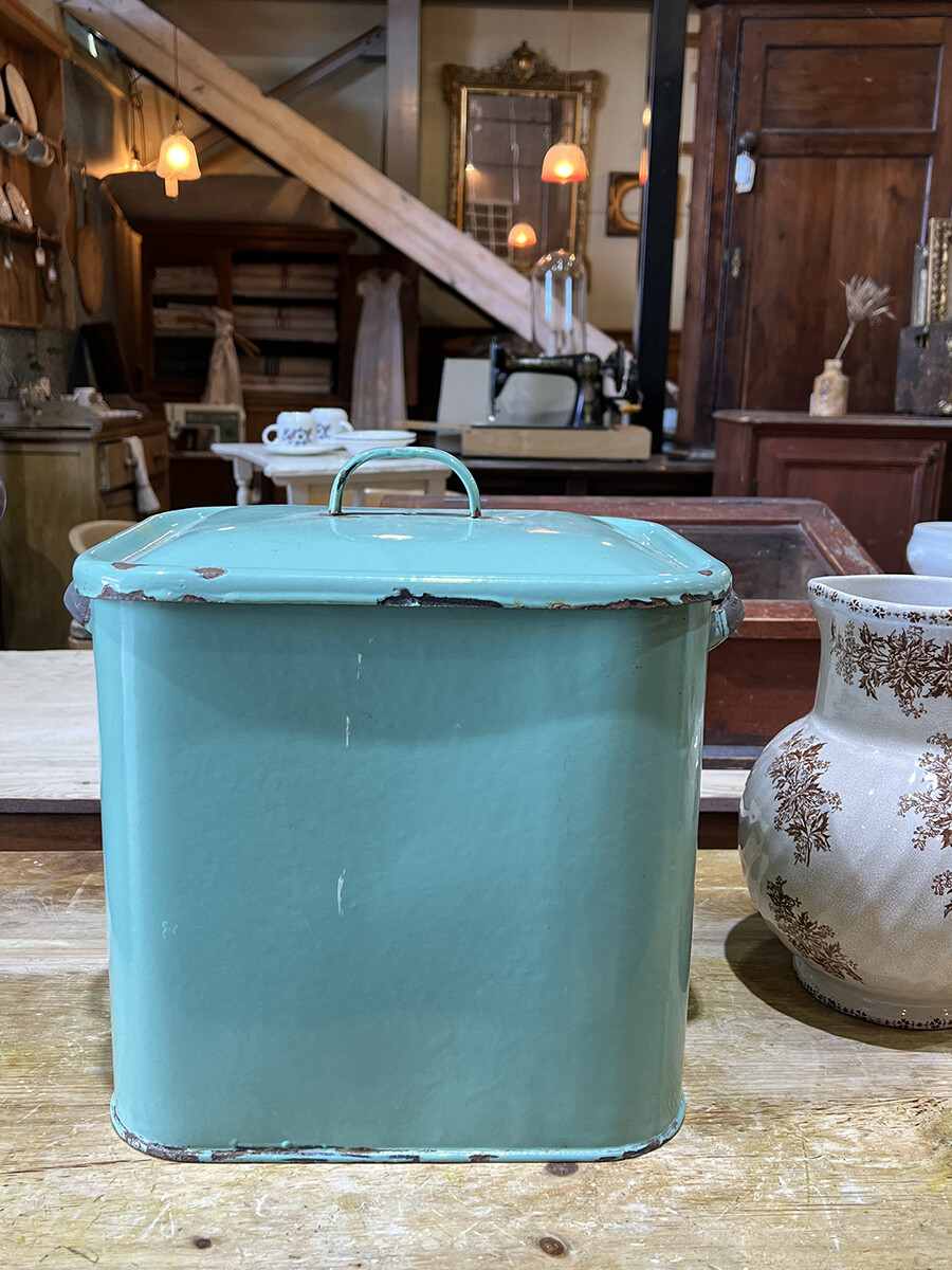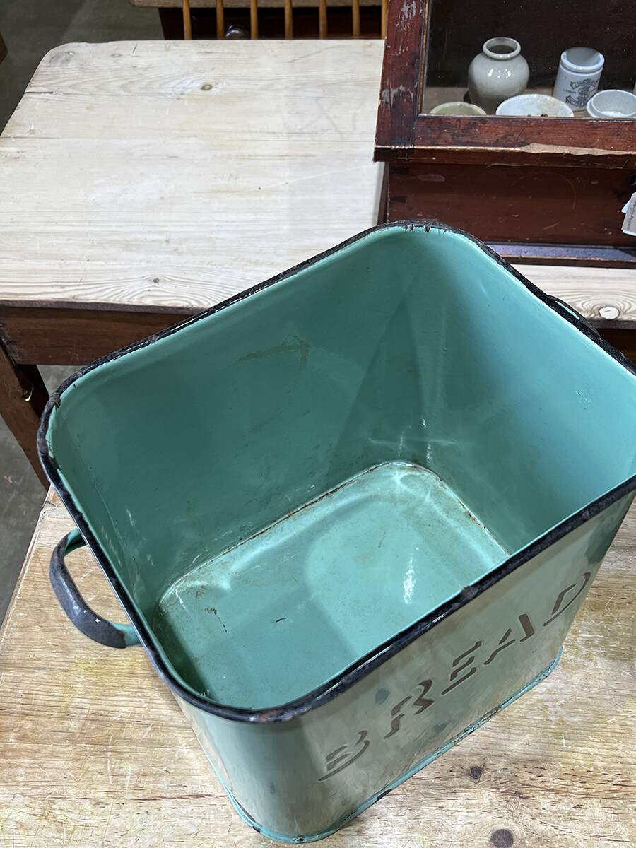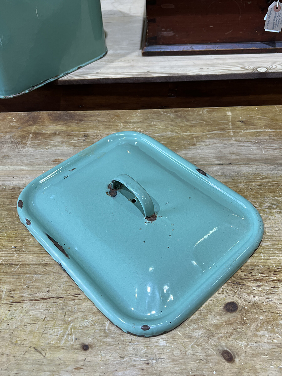 15a-015 Vintage enamel bread bin with lid (mint & large)