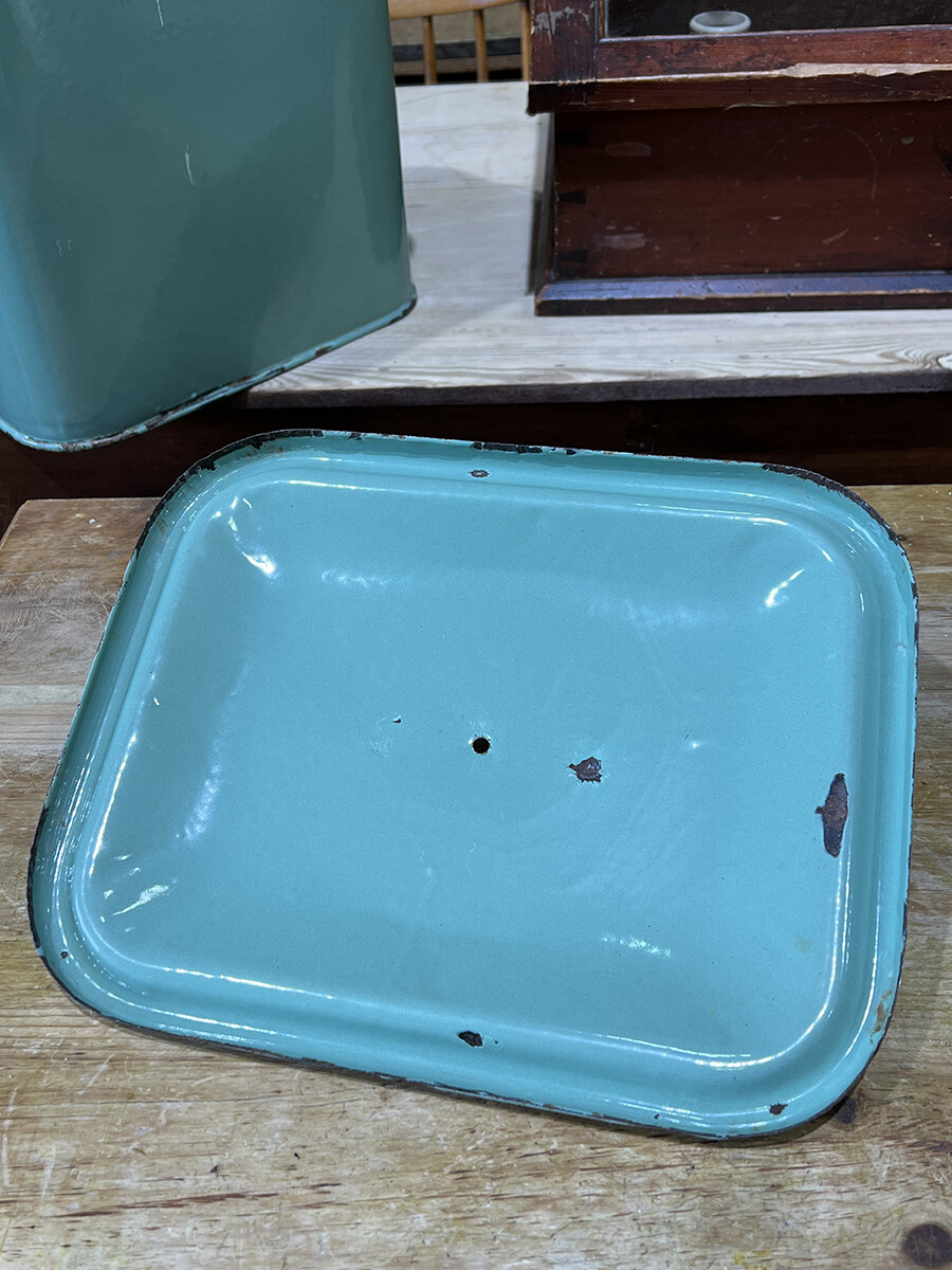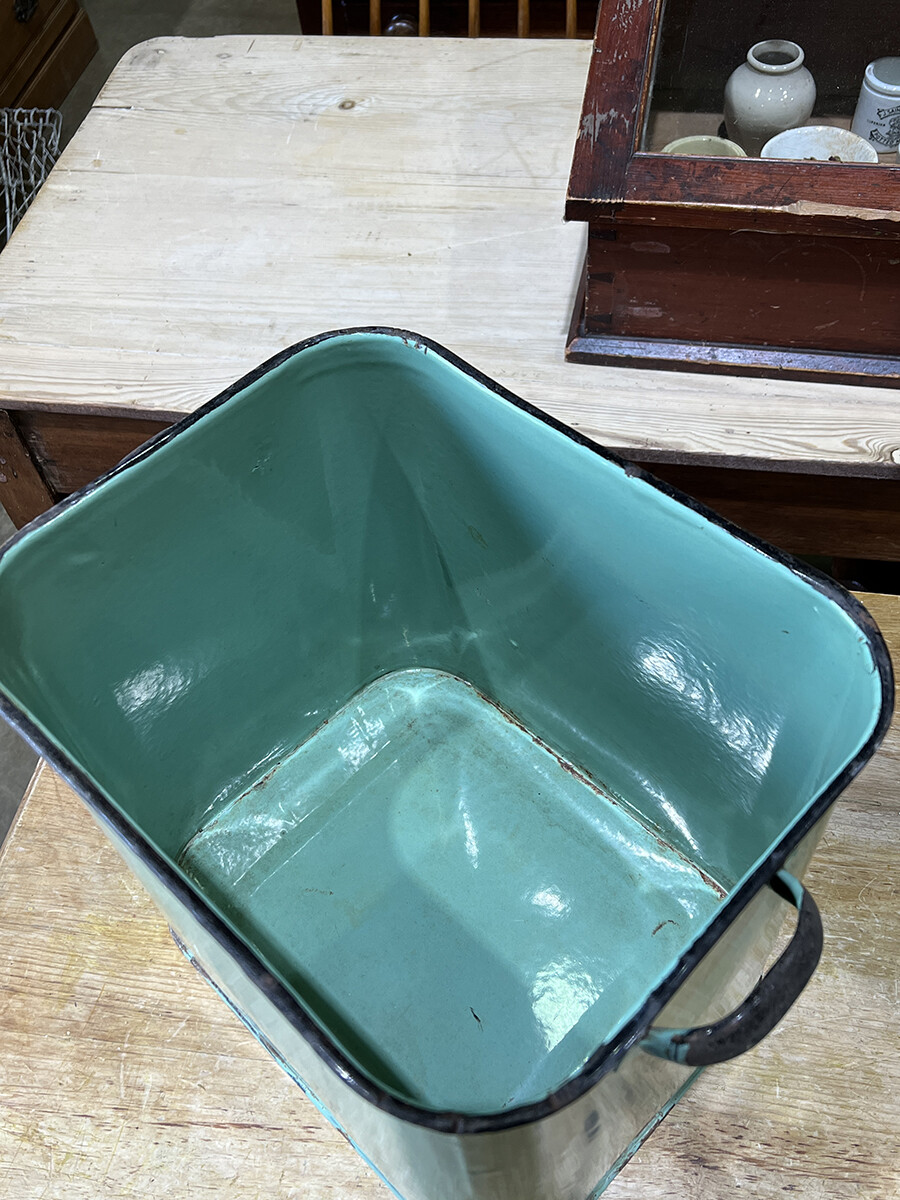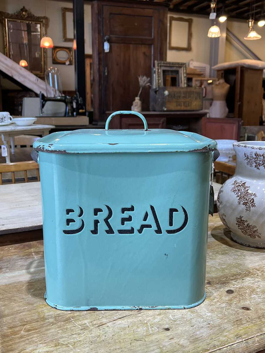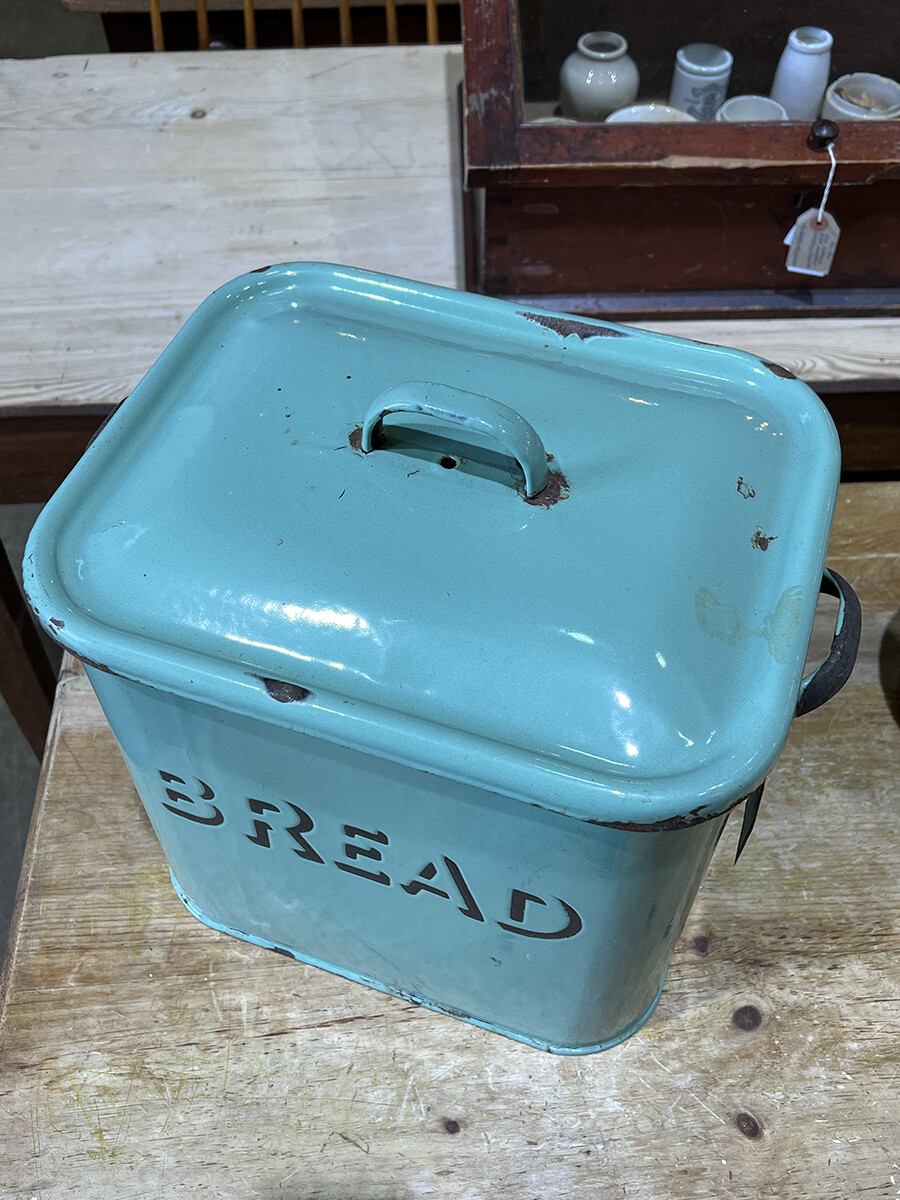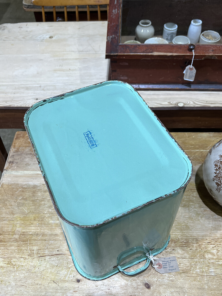 15a-015 Vintage enamel bread bin with lid (mint & large)