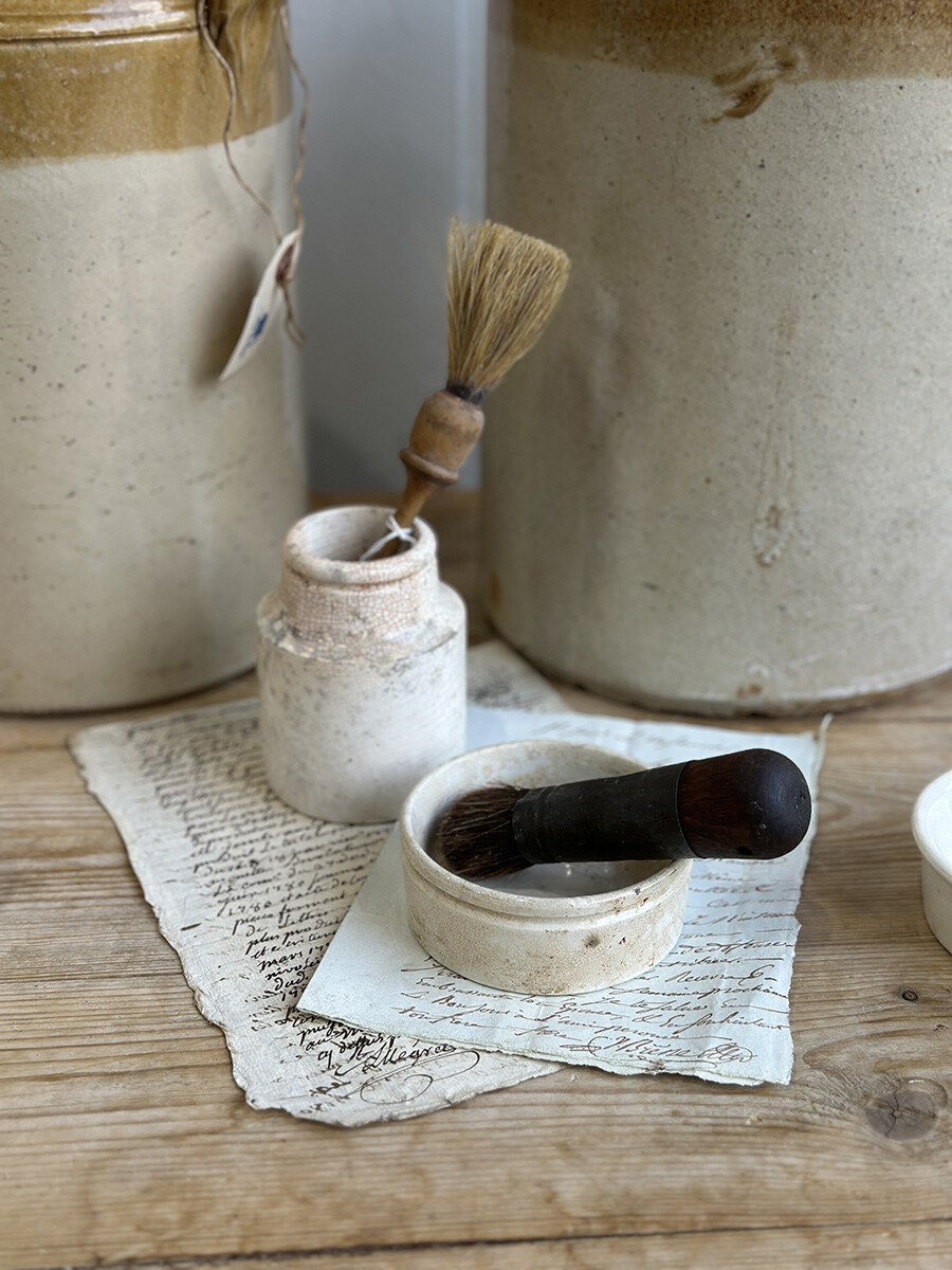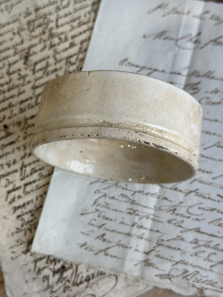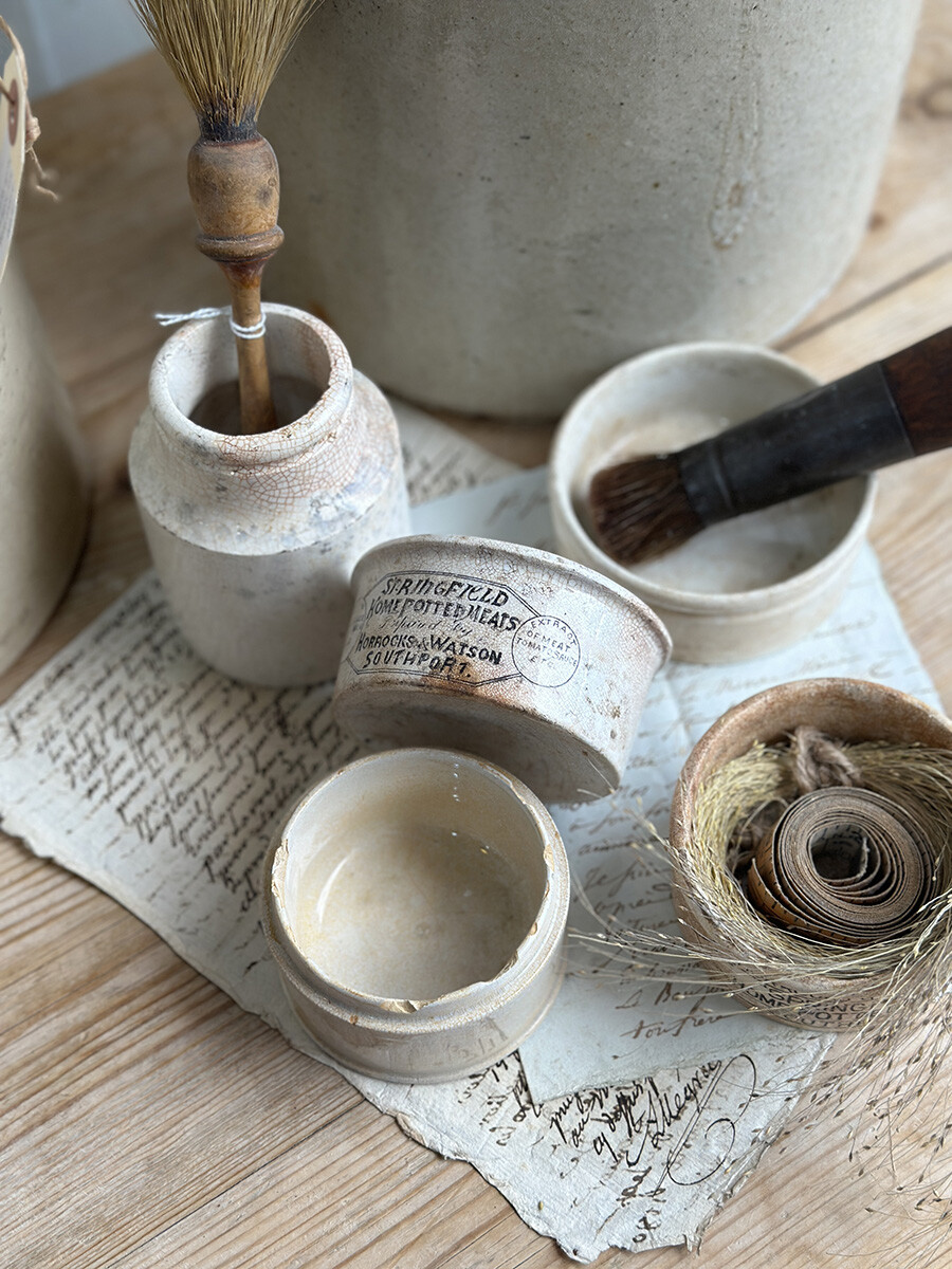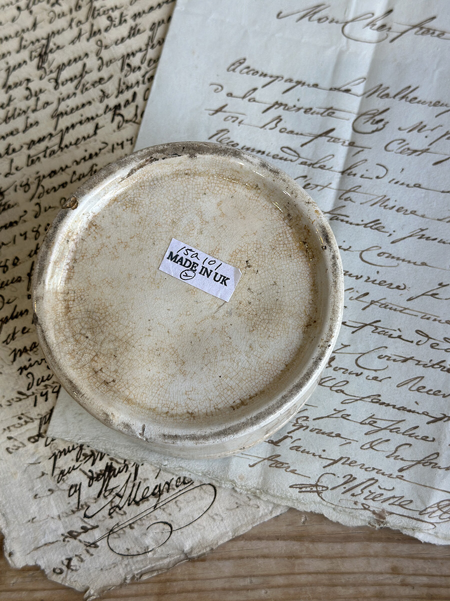 아이언스톤(ironstone) 소재로 만들어진 앤틱 스몰 자입니다. 아이언스톤 소재의 도기는 충격에 강하고, 위생적이라 식품의 보존과 유통을 위해 많이 사용되었습니다. 이러한 경향성은 1800년대 후반부터 영국에서 시작된 대형 식료품점(슈퍼마켓의 원형이 됩니다)의 등장으로 인해 가속화 되었죠. 이렇게 식료품을 전문적으로 판매하는 곳을 푸드홀 카운터 서비스 마켓이라고 하는데, 베이컨이나 햄, 잼과 빵, 그리고 앤초비나 포티드 미츠가 주요 판매품이었습니다.