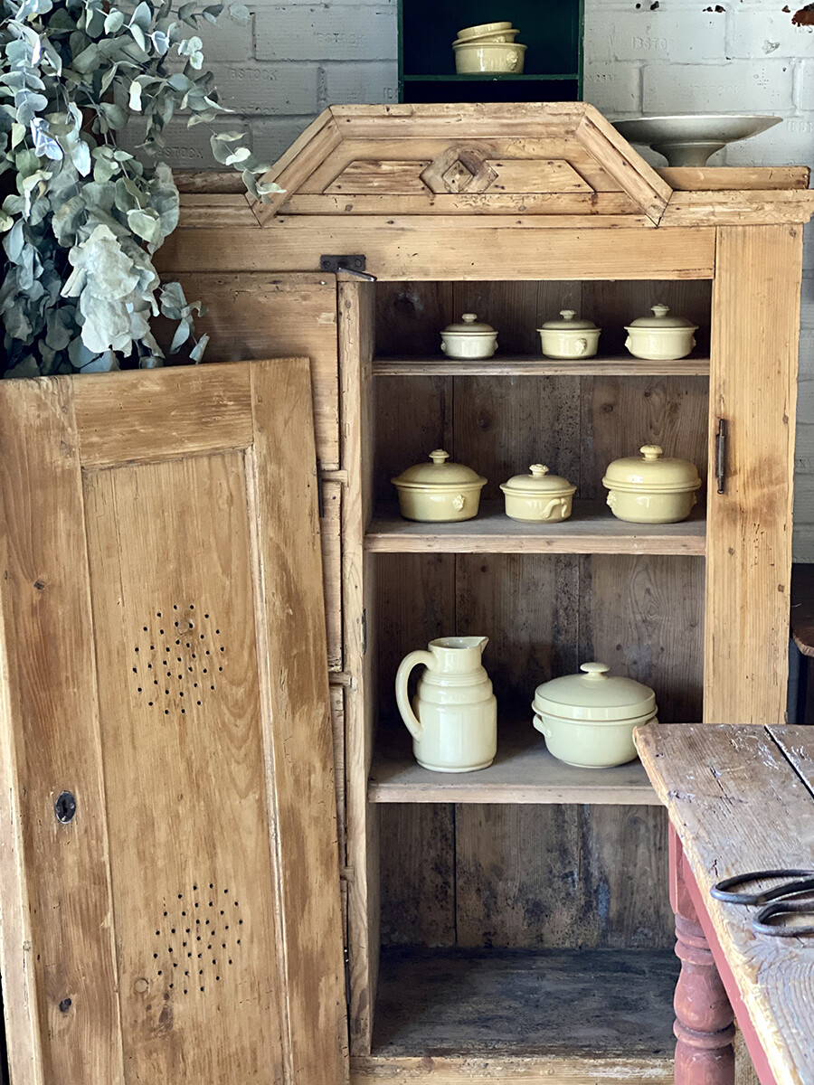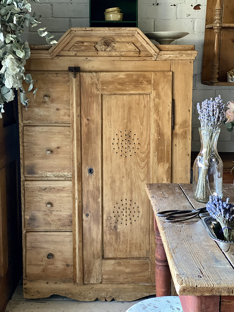 희소성이 높은 빅토리안 시대(1837-1901)에 제작된 앤틱 파인 키친 라더입니다. 라더(larder)는 돼지기름인 라드(lard)를 보관하는 가구를 말합니다. 냉장고가 없던 시대에 라드를 비롯한 햄이나 소시지, 치즈, 우유 등의 식품을 보관하던 가구가 이 '라더'였습니다.