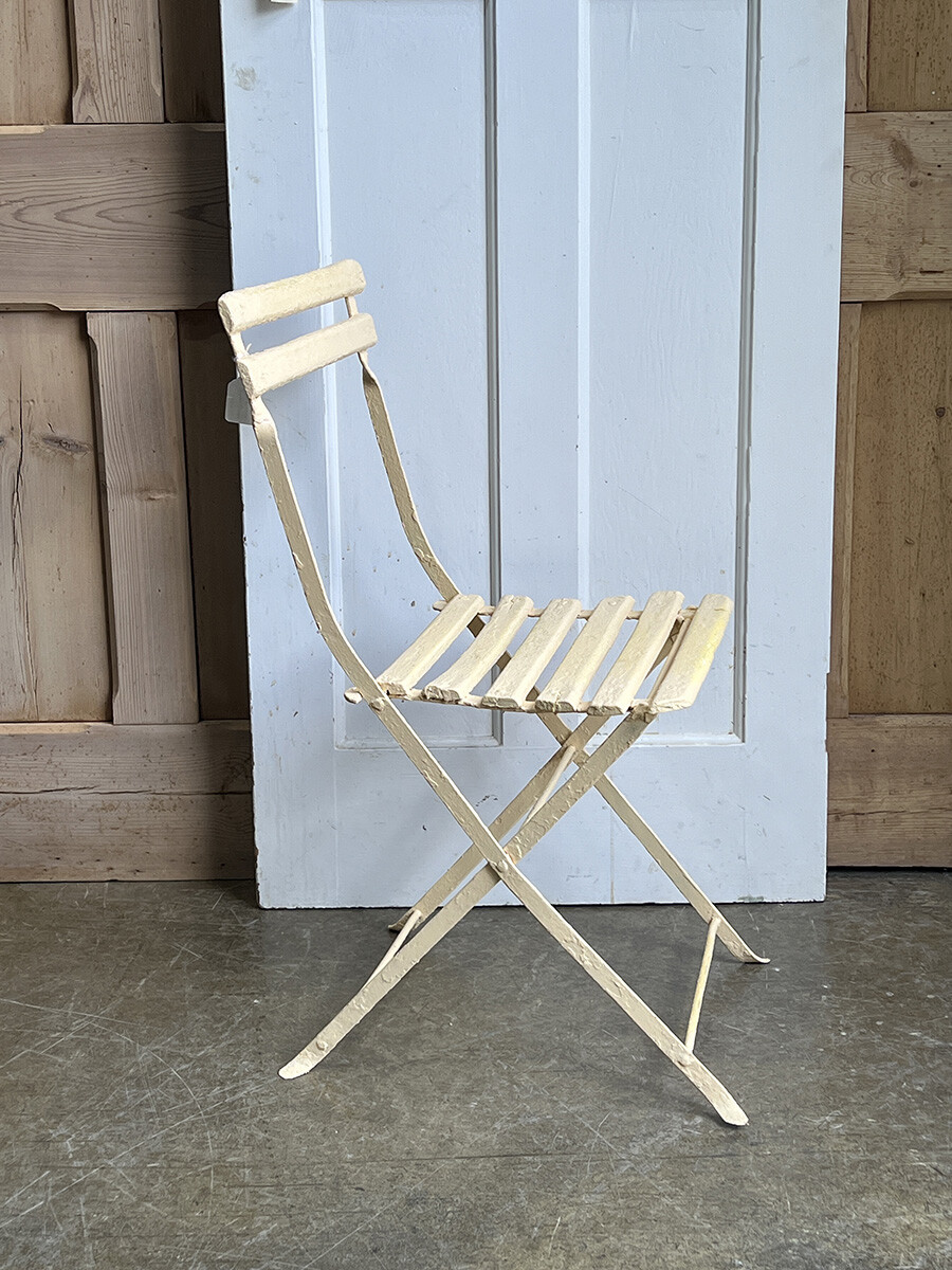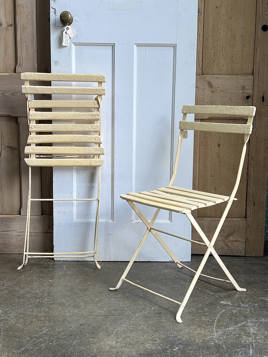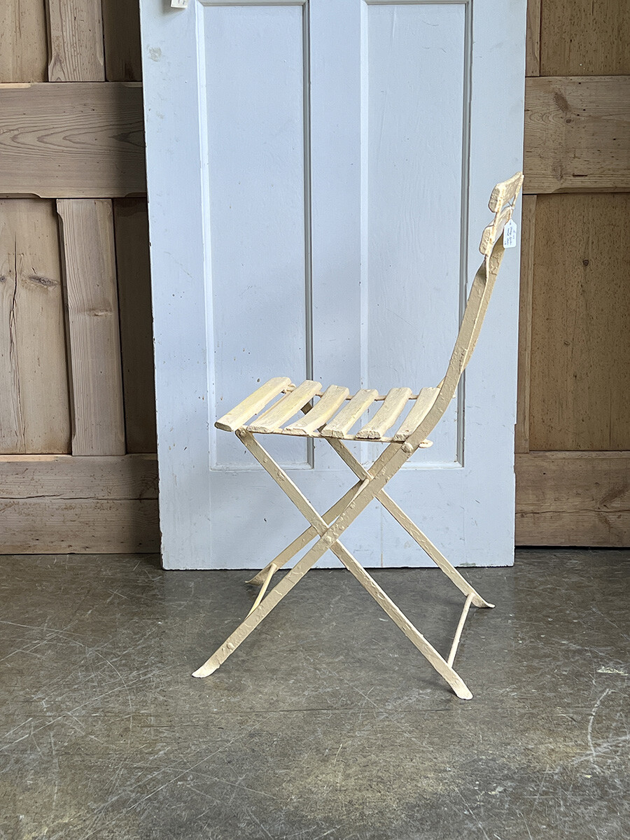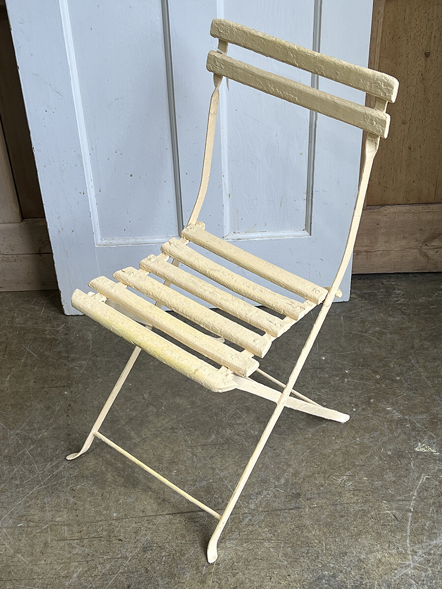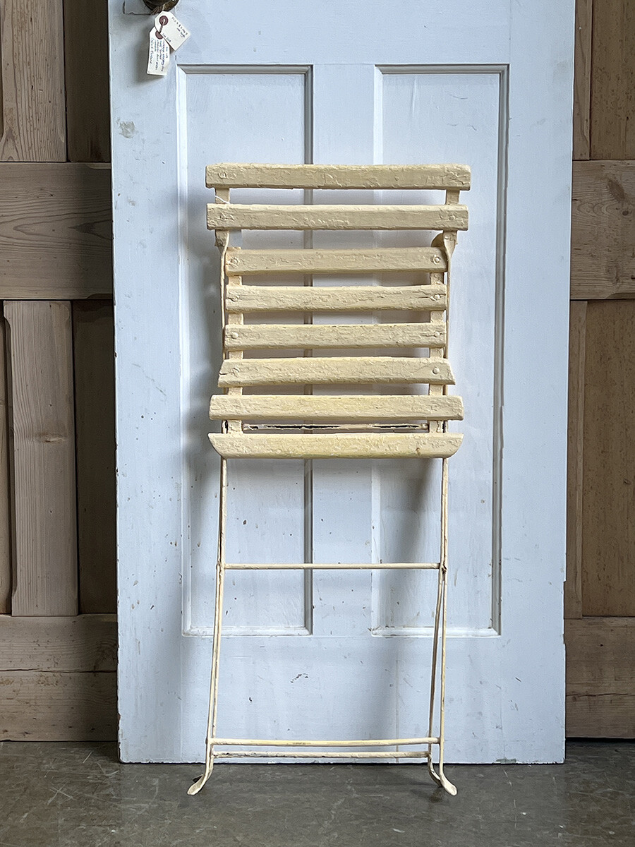 가든 및 야외용 메탈 폴딩 체어입니다. 원목 패널과 철제 프레임으로 제작되어 있으며 접이식 구조를 갖고 있습니다. 전체적으로 버터 옐로우 컬러로 칠해져 있습니다.