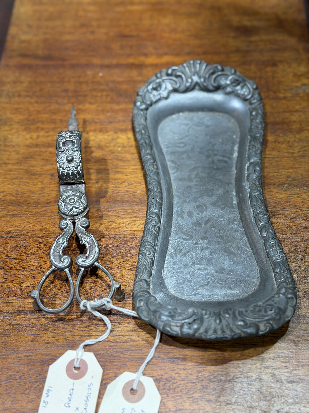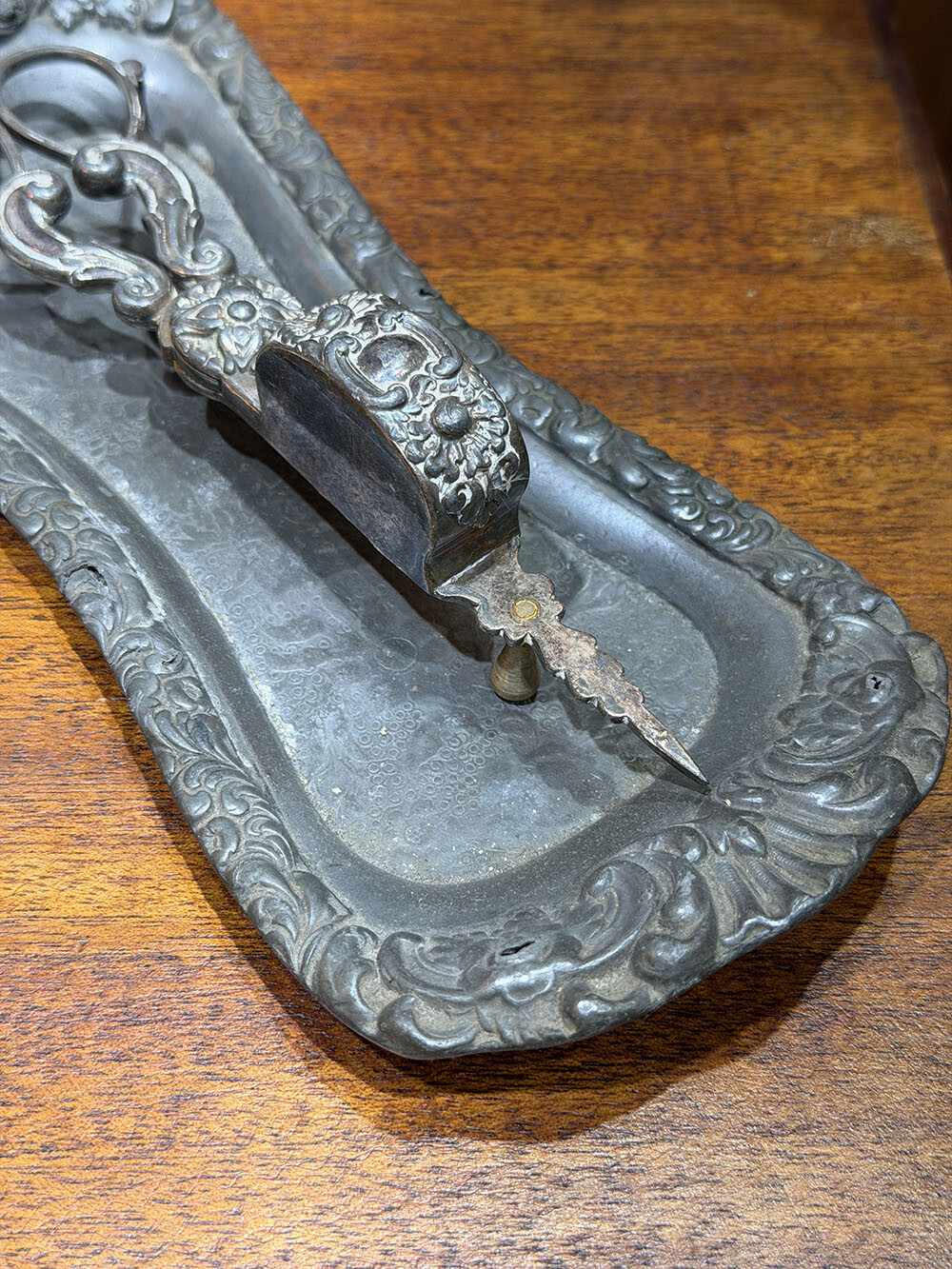 16a-090-5 Antique candle snuffer scissor & tray