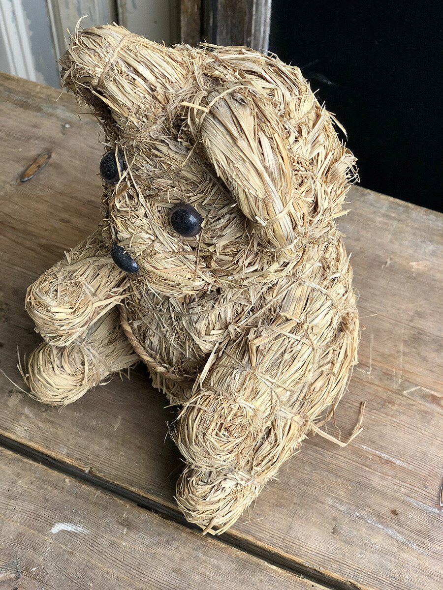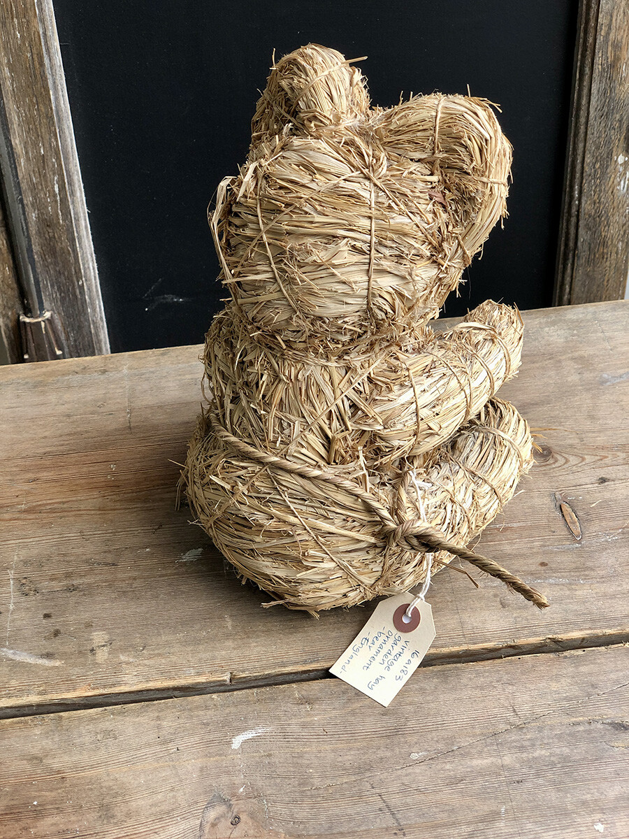 귀여운 곰 모양의 가든 장식 소품으로, 건초로 만들어진 초경공예품입니다.