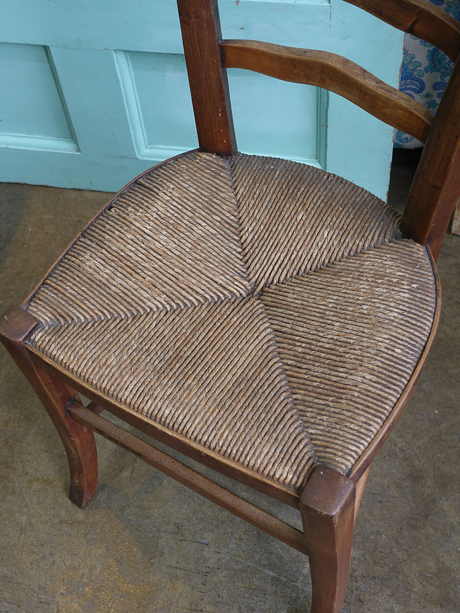 컨트리 퍼니쳐 체어 중에서 가장 전원적인 느낌을 갖고 있는 아이템이 있다면, 바로 이 러쉬 시트 체어를 꼽을 수 있습니다. 러쉬(rush)를 사전에서 찾아보면 '부들' 혹은 '골풀'이라고 되어 있는데요, 한국이나 아시아 쪽에서 나는 골풀(등심초)와는 굵기 등에서 차이가 있습니다. 유럽지역에서 막 수확한 워터 러쉬를 가지고 엮어 나가는 앤틱-빈티지 러쉬 시트 체어는 그 시각적인 느낌이나 촉감이 전혀 다릅니다. 동남아산 러쉬 섬유를 얇은 끈으로 만들어 얽은 것이나, 갈색의 크래프트 페이퍼(갱지)를 꼬아서 만든 파이퍼 러쉬(fiber rush)와는 전혀 다른 텍스쳐와 느낌을 내죠. 유러피언 러쉬를 수확하는 나라들 중 프랑스에서는 비교적 날씨가 서늘한 북부 지역에서 주로 수확을 했고, 영국에서는 주로 북쪽의 랭카스터 지방에서 러쉬 시트 체어를 만들었다고 합니다. 등받이는 전통적인 스플릿 백(split back) 형태를 하고 있습니다. 미드-센츄리 모던 계열의 유명 디자이너들 중에도 전통적인 러쉬 시트 체어를 토대로 자신만의 체어를 만들어낸 디자이너들이 있을만큼, 유럽 지역에서는 매우 친숙한 소재의 의자이기도 합니다.