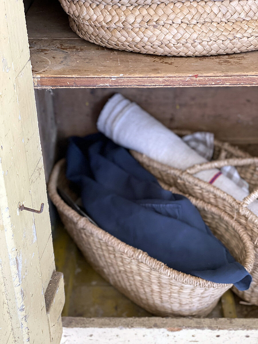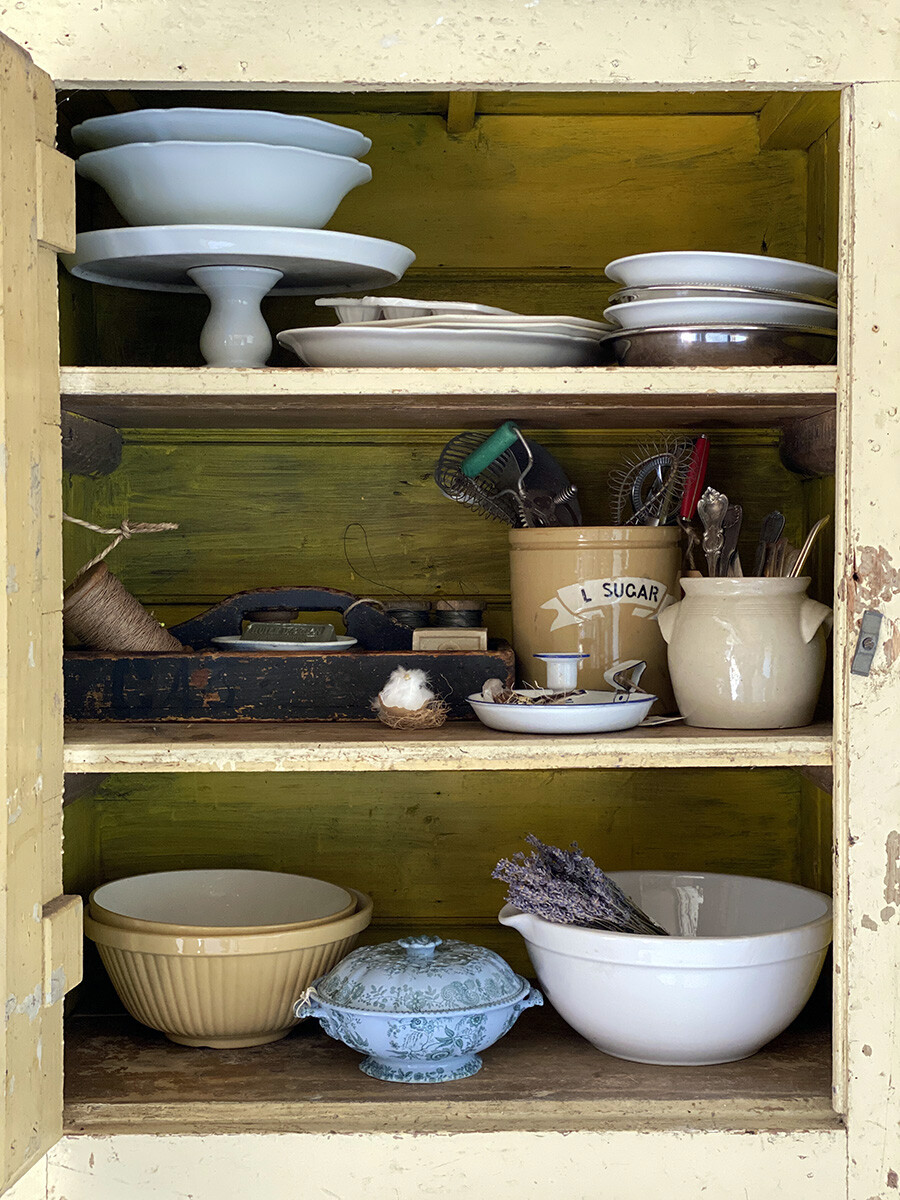 크림 컬러로 쉐비 시크 페인팅이 되어 있는 앤틱 파인 커보드입니다. 붉은색의 플레인 놉 손잡이와 경첩 부분이 귀엽게 느껴집니다. 커보드의 수납함은 총 2단으로 구성되어 있는데 상부 수납함은 내부가 3단, 하부 수납함은 2단으로 나뉘어 있습니다. 다양한 소품이나 키친 웨어들, 혹은 리넨들을 보관하고 데코레이션 하는 용도의 캐비넷 퍼니쳐로 추천합니다.