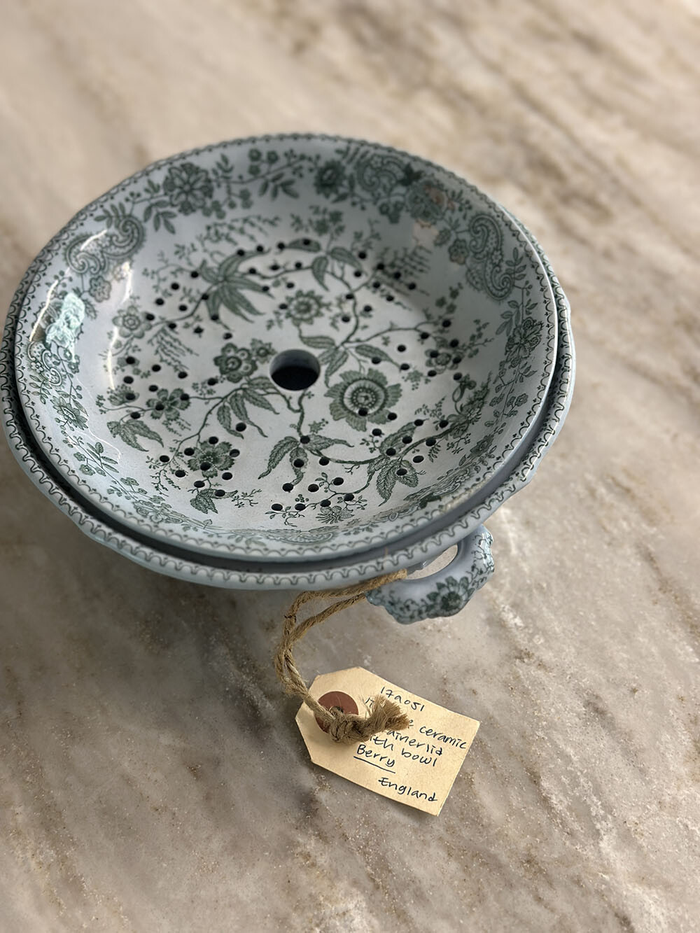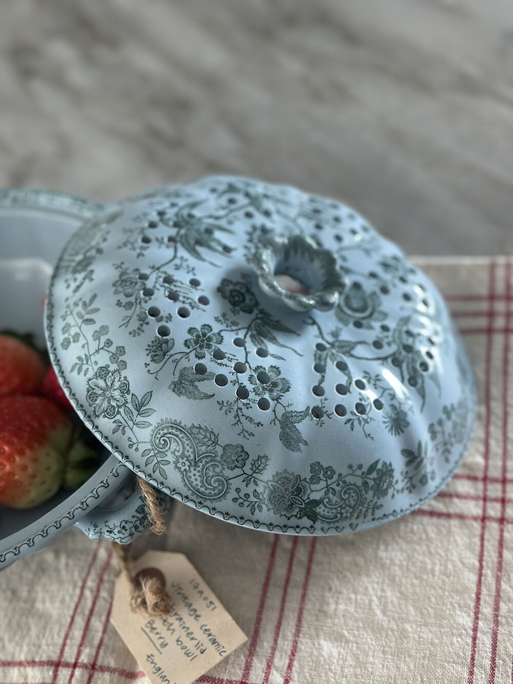 17a-051 Vintage ceramic strainer lid with bowl - Berry