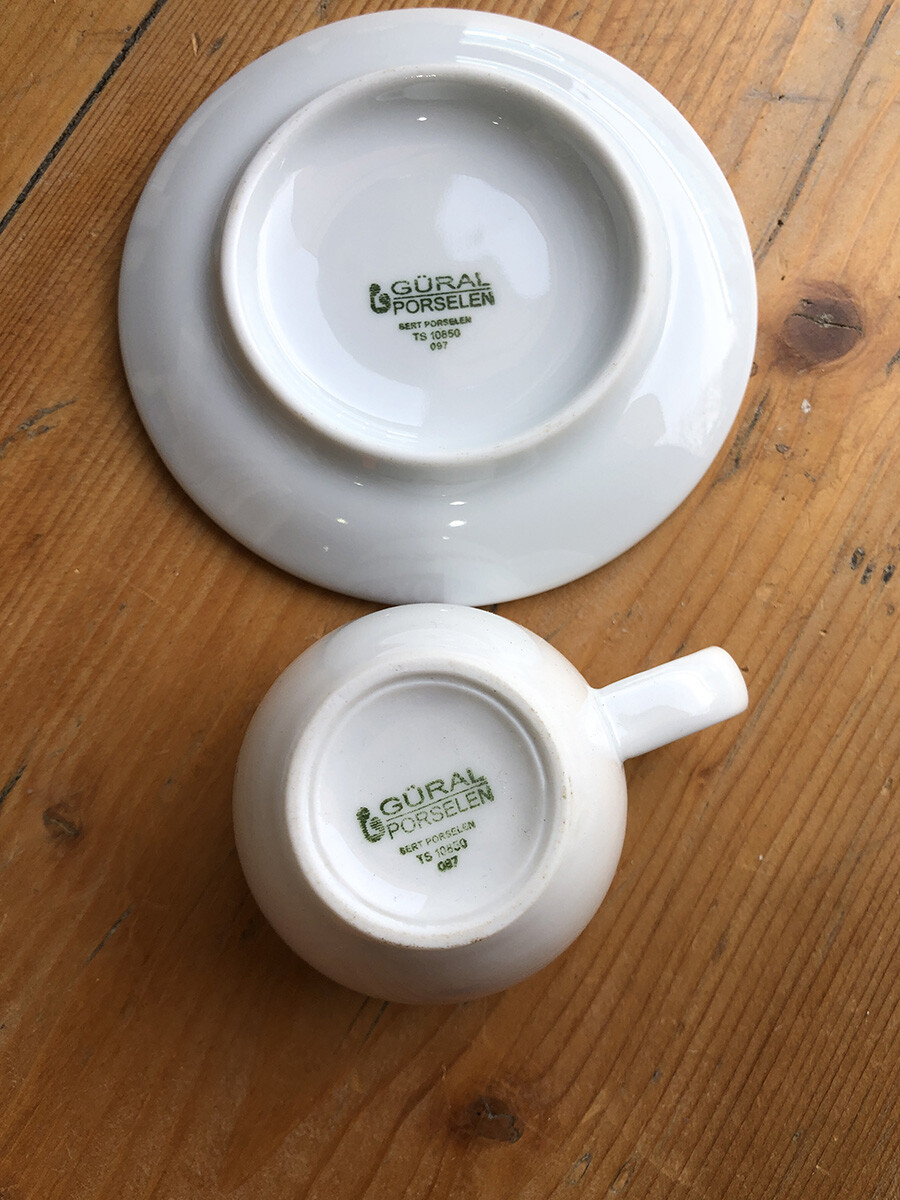 튀르키예의 전통있는 대형 테이블웨어 메이커, 규랄 포슬린(Güral Porselen)의 에스프레소 컵 & 소서입니다. 에스프레소 컵 1개와 소서 1개로 구성되어 있습니다.