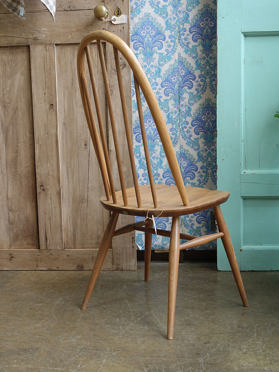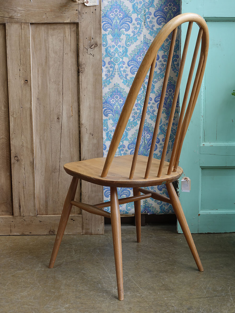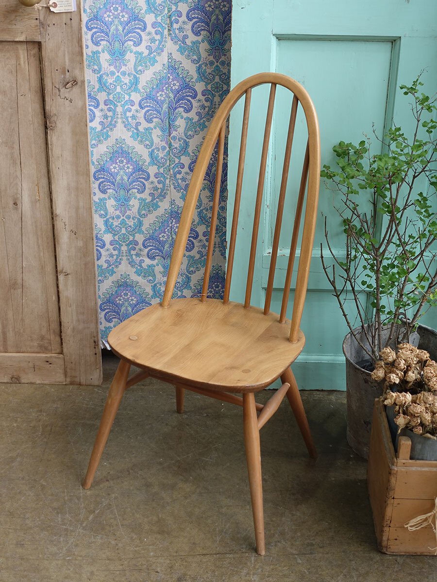 퀘이커 체어는 영국의 전통적인 윈저 체어 중 하나였는데, 얼콜(ercol)의 창업자 루치안 란돌프 얼콜라니(Lucian R. Ercolani)에 의해서 현대화 된 디자인으로 다시 탄생 했습니다. 영국 가구 업계에 미드-센츄리 모던 계열에서 리딩 디자이너가 흔치 않은 편인데, 얼콜라니는 영국의 전통 가구를 모더나이즈 한 디자인의 가구들을 윈저 레인지(Windsor range)와 콜로니얼 레인지(Colonial Range) 두 가지 상품군으로 출시하면서 명실상부한 미드-센츄리 모던 리딩 디자이너 중에 한 명이 되었습니다. 그 중에서 이 퀘이커 체어는 윈저 레인지(Windsor range)에 속하는 체어로 얼콜(ercol) 사의 스테디셀러 아이템입니다. (참고로 지금은 윈저, 콜로니얼 두 상품군이 오리지널스라는 상품군으로 합쳐졌습니다)
