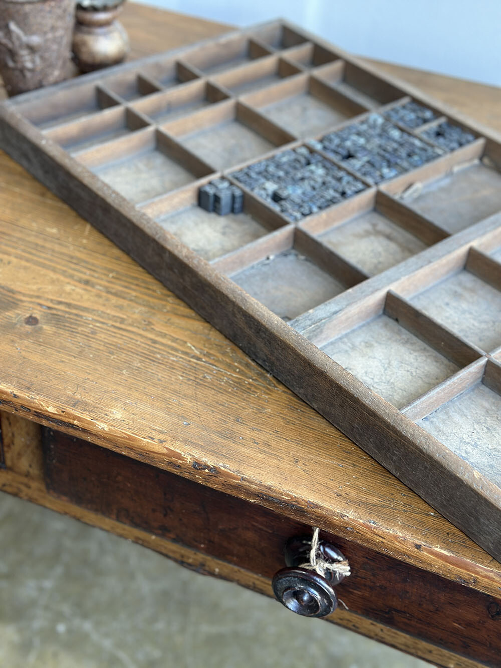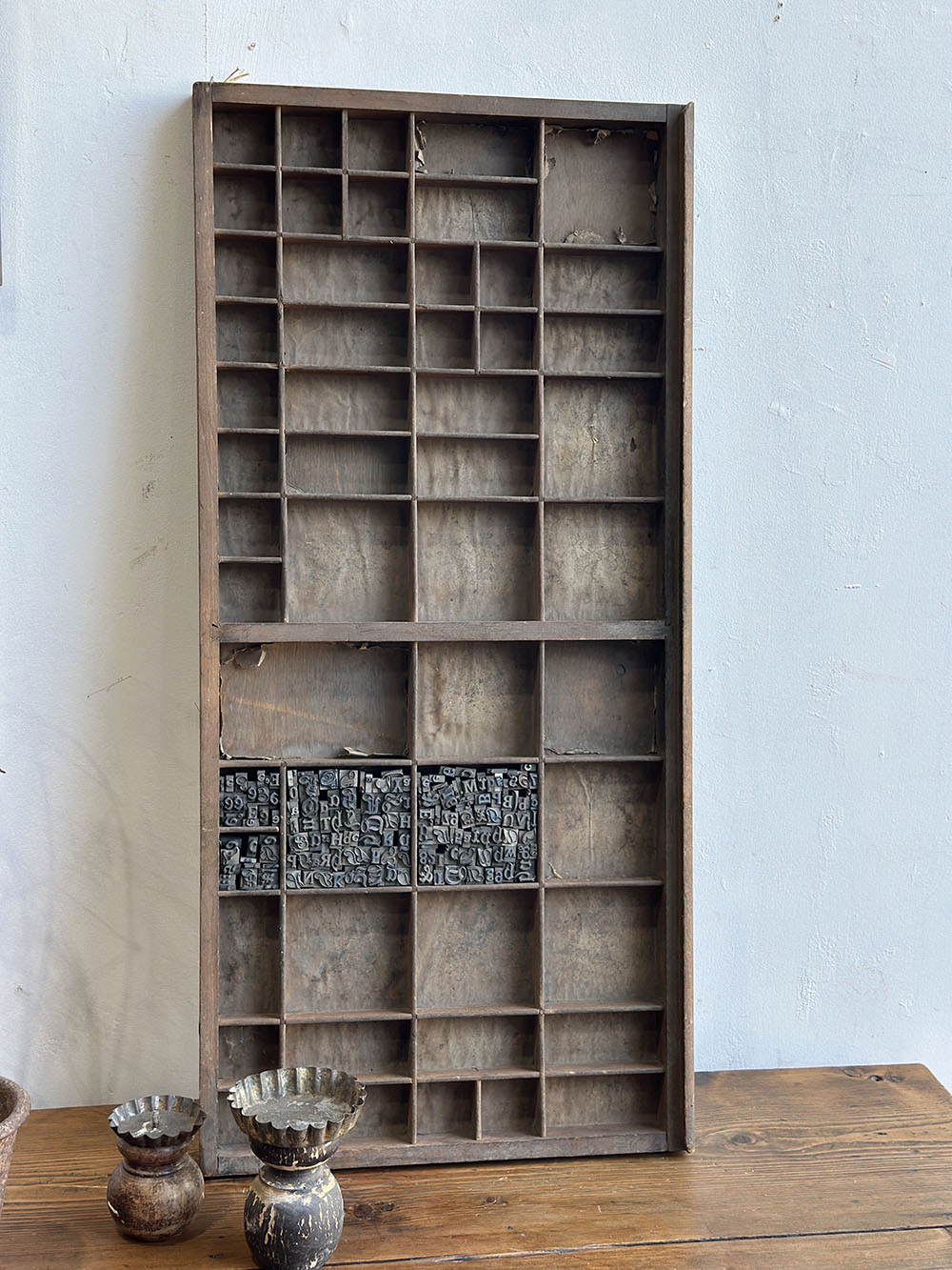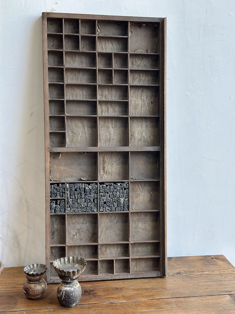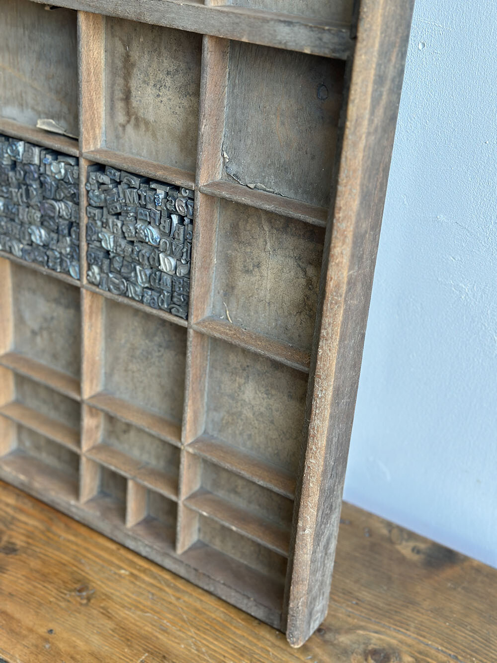 18a-019 올드 빈티지 레터프레스 우든 트레이 - 월 디스플레이용