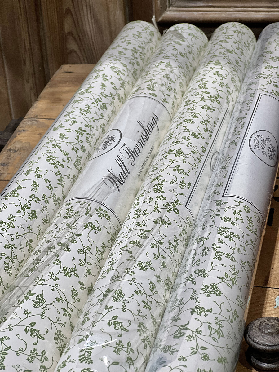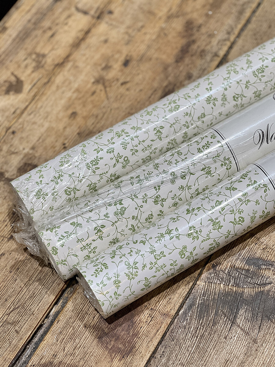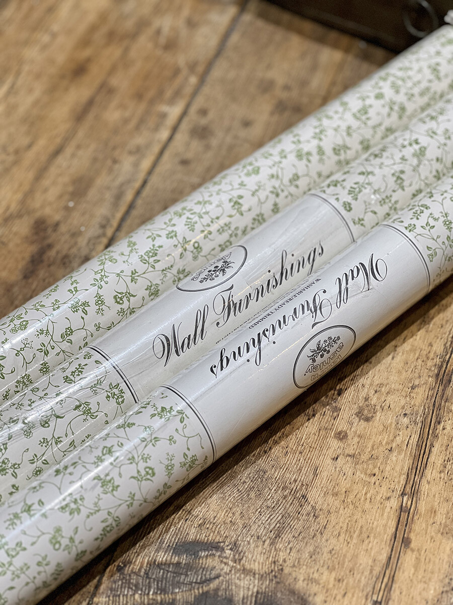 18a-025 빈티지 1970s Laura Ashley 월페이퍼 - 그린 리브스 패턴