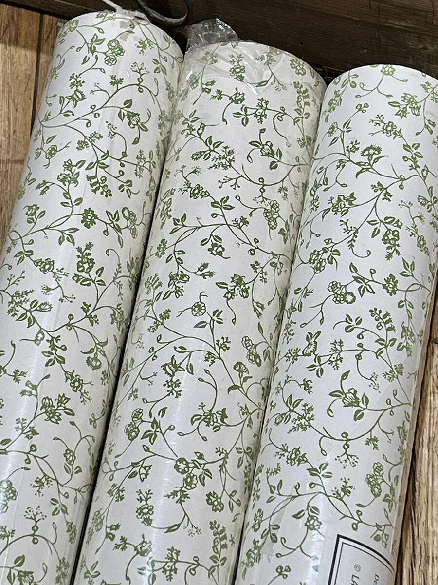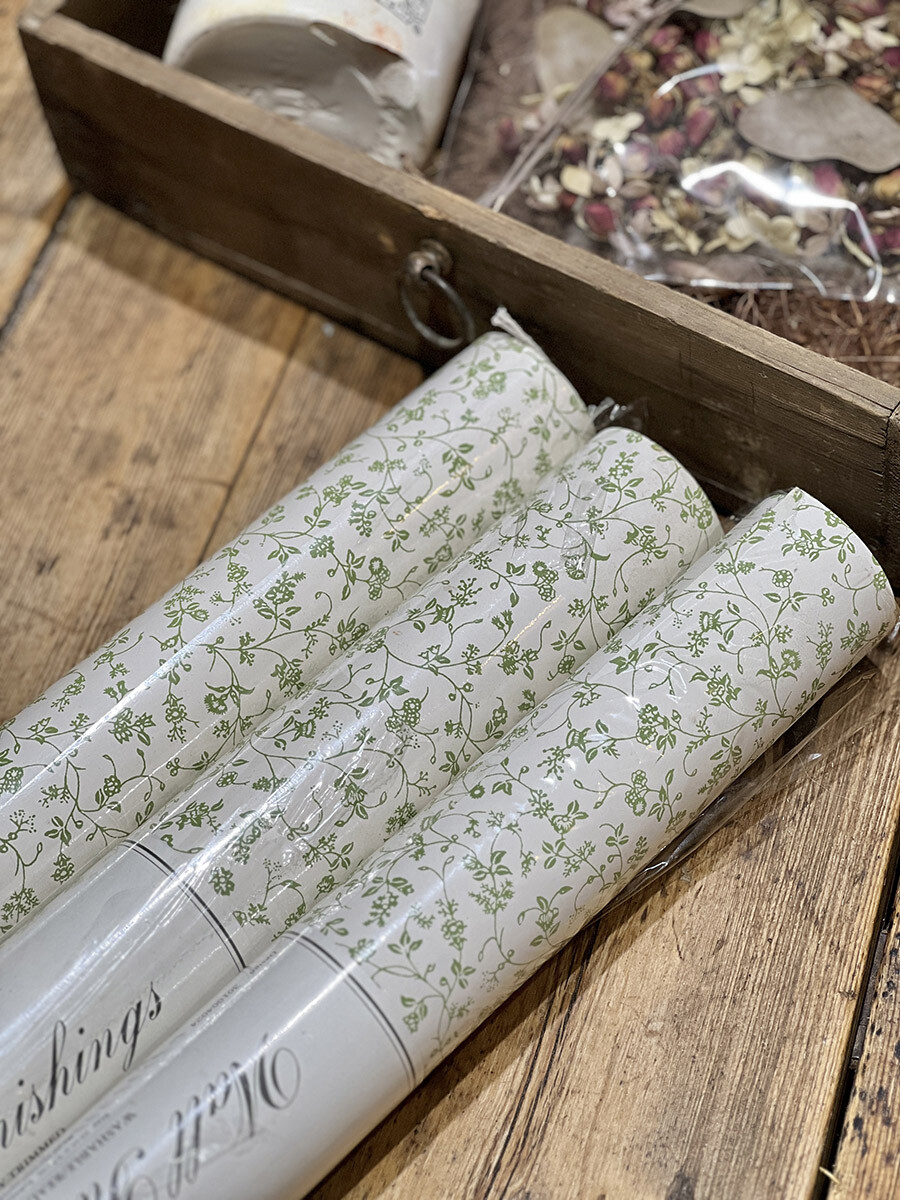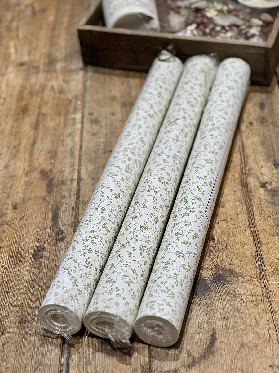 18a-025 빈티지 1970s Laura Ashley 월페이퍼 - 그린 리브스 패턴
