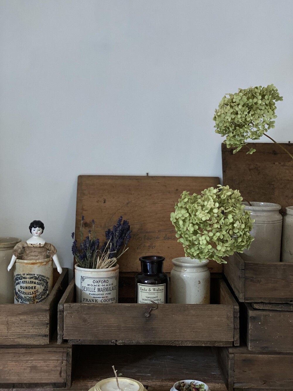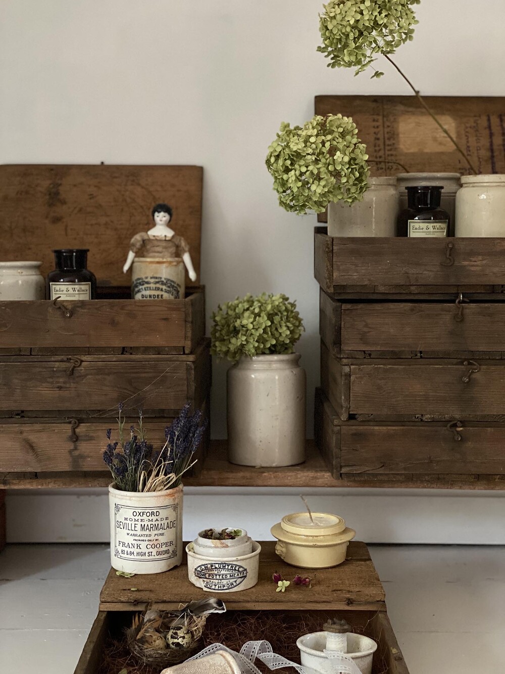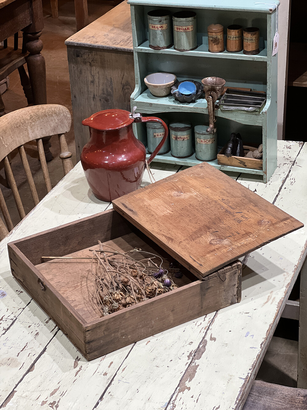 프렌치 올드 빈티지 샵 윈도우 우든 박스는 상점 쇼윈도우에 디스플레이 연출을 하기 위한 용도로 제작되었습니다. 약 5~7mm 정도의 원목 판재로 제작된 이 우든 박스는 매우 간소한 구조를 갖고 있으며, 상단의 커버가 열리고 닫히게끔 제작 되었습니다. 우든 박스의 표면에 오랜 세월동안 형성된 파티나가 차분하면서도 고급스러운 느낌을 주며, 이 켜켜히 쌓인 세월의 흔적들이 박스에 담긴 물건들도 쉽게 만들어지지 않았다고 어필해주는 듯 합니다. 해당 우든 박스로 연출한 디스플레이 샘플은 아래 사진을 통해 확인 하실 수 있습니다.
