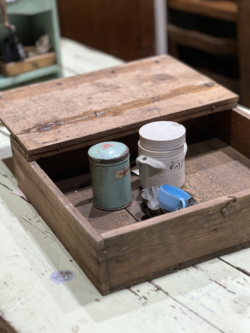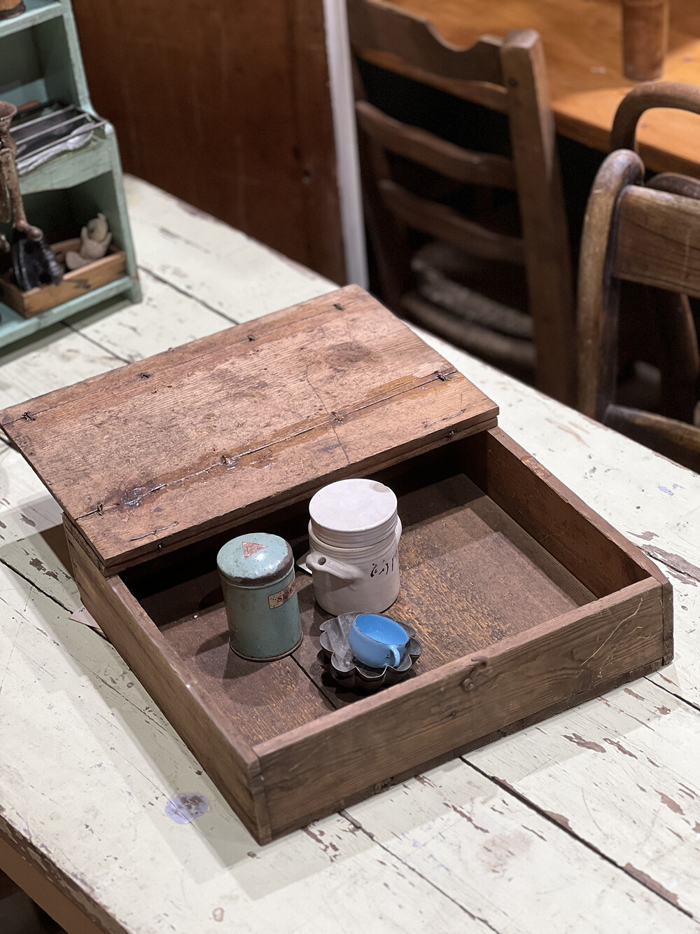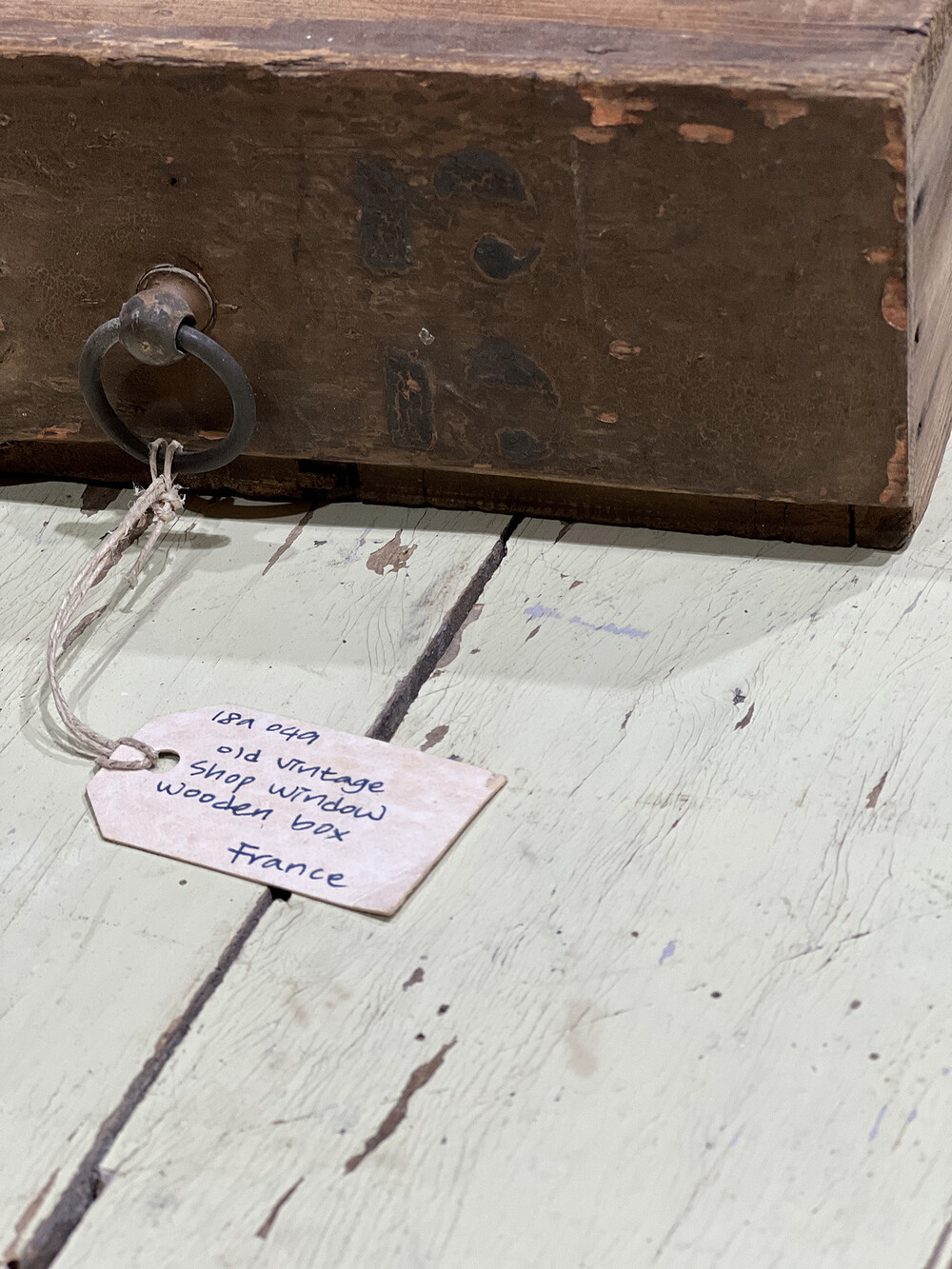 프렌치 올드 빈티지 샵 윈도우 우든 박스는 상점 쇼윈도우에 디스플레이 연출을 하기 위한 용도로 제작되었습니다. 약 5~7mm 정도의 원목 판재로 제작된 이 우든 박스는 매우 간소한 구조를 갖고 있으며, 상단의 커버가 열리고 닫히게끔 제작 되었습니다. 우든 박스의 표면에 오랜 세월동안 형성된 파티나가 차분하면서도 고급스러운 느낌을 주며, 이 켜켜히 쌓인 세월의 흔적들이 박스에 담긴 물건들도 쉽게 만들어지지 않았다고 어필해주는 듯 합니다. 해당 우든 박스로 연출한 디스플레이 샘플은 아래 사진을 통해 확인 하실 수 있습니다.