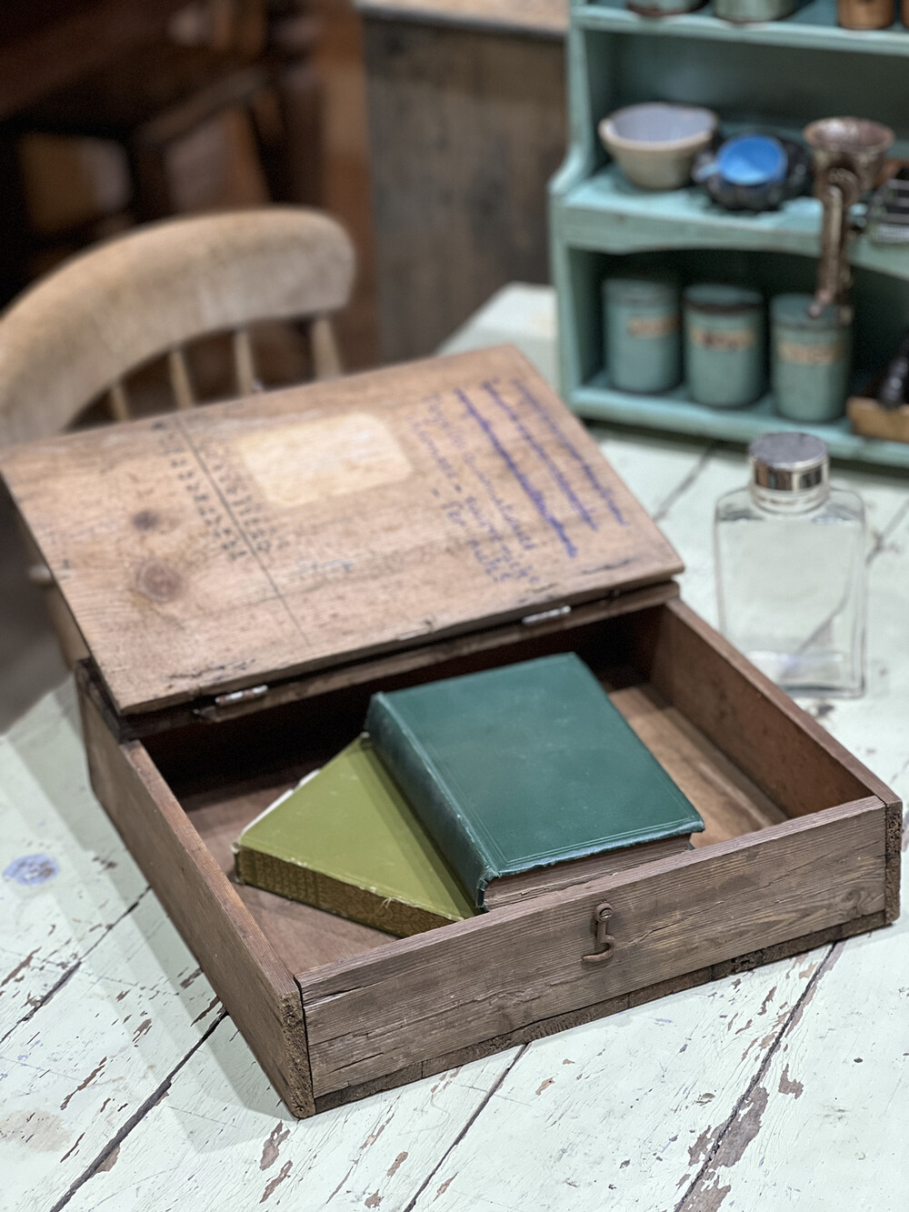 프렌치 올드 빈티지 샵 윈도우 우든 박스는 상점 쇼윈도우에 디스플레이 연출을 하기 위한 용도로 제작되었습니다. 약 5~7mm 정도의 원목 판재로 제작된 이 우든 박스는 매우 간소한 구조를 갖고 있으며, 상단의 커버가 열리고 닫히게끔 제작 되었습니다. 우든 박스의 표면에 오랜 세월동안 형성된 파티나가 차분하면서도 고급스러운 느낌을 주며, 이 켜켜히 쌓인 세월의 흔적들이 박스에 담긴 물건들도 쉽게 만들어지지 않았다고 어필해주는 듯 합니다. 해당 우든 박스로 연출한 디스플레이 샘플은 아래 사진을 통해 확인 하실 수 있습니다.
