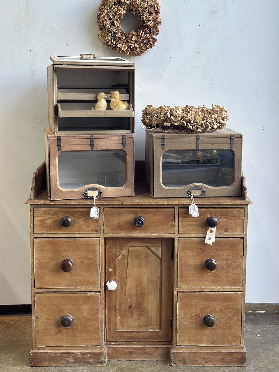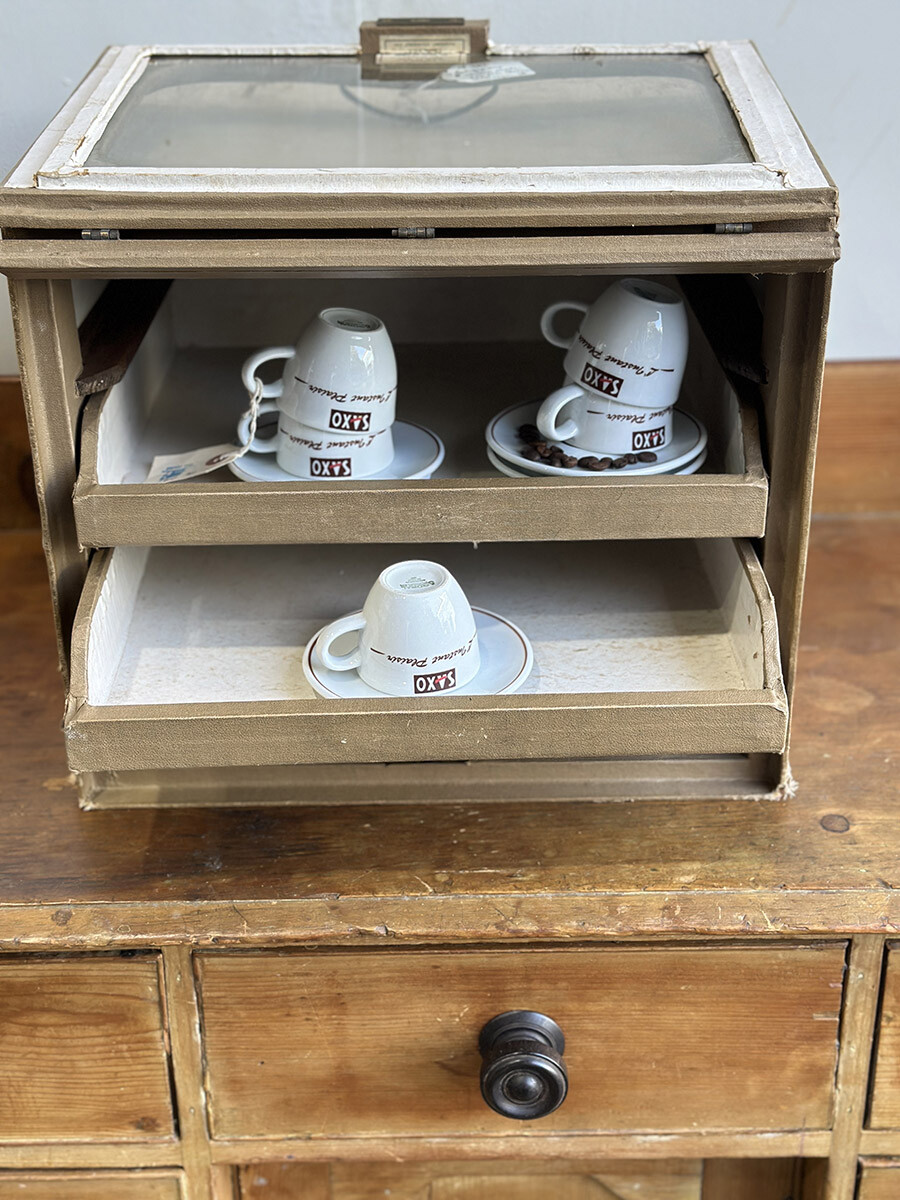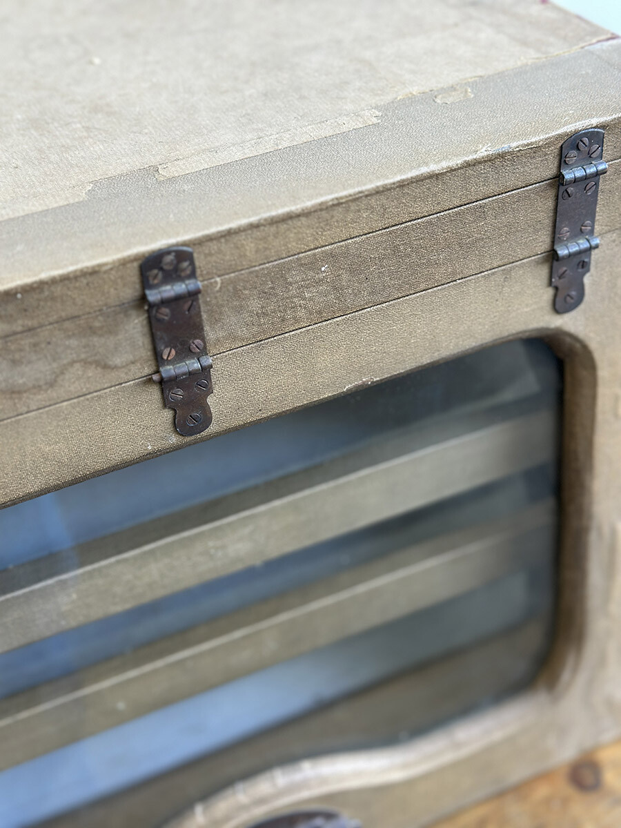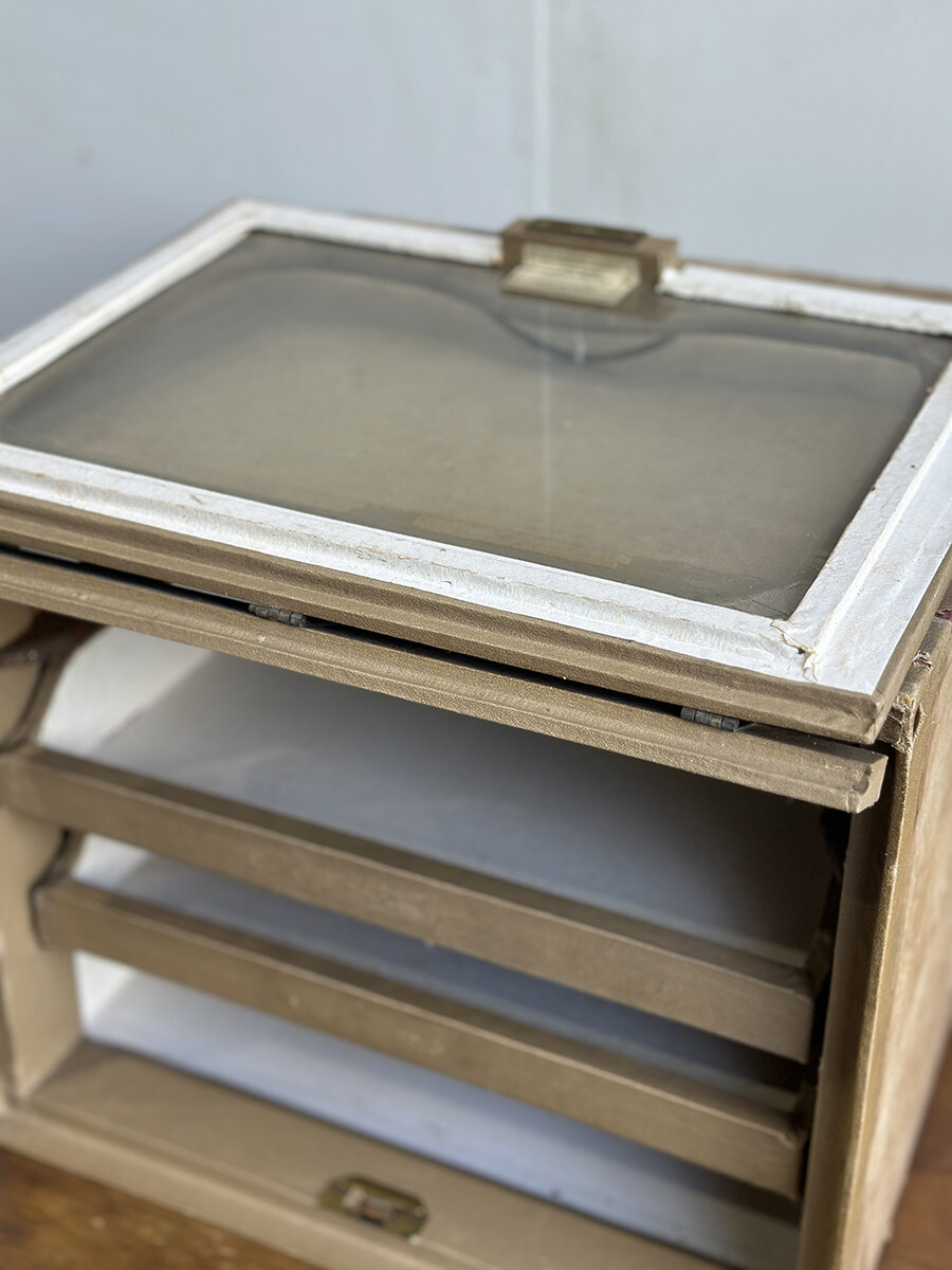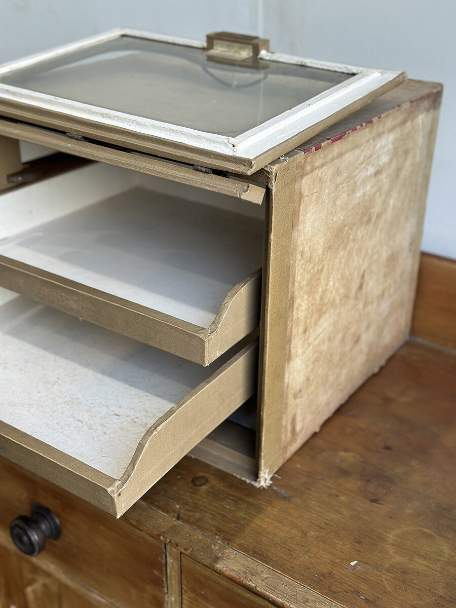해당 상품은 런던의 한 상점에서 디스플레이 용도로 사용되다가 더스테이블에 의해 수집되었습니다. 상업 공간에서 디스플레이 용도로 사용하거나 개인 수집품으로도 추천할 만한 상품입니다. 내부에 두 개의 쉘프가 들어 있습니다.