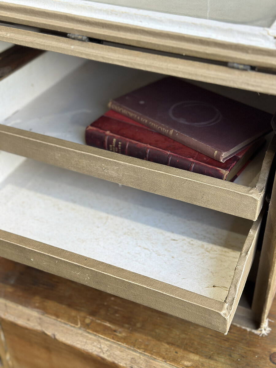 1800년대까지만 해도 여행은 큰 모험이자 상류층의 전유물이었습니다. 여행 비용이 매우 컸고, 영국에서 유럽 대륙을 여행하려면 수개월에서 연 단위로 긴 시간이 필요했습니다. 긴 여행 기간 동안에도 이동할 때마다 간이 서재나 집무실을 빠르게 셋팅해야 했기 때문에, 서류, 편지, 문방구 등 다양한 물품을 수납할 수 있는 이동식 캐비넷이 필요했습니다. 이를 위해 사용된 것이 바로 픽스쳐 박스였습니다.