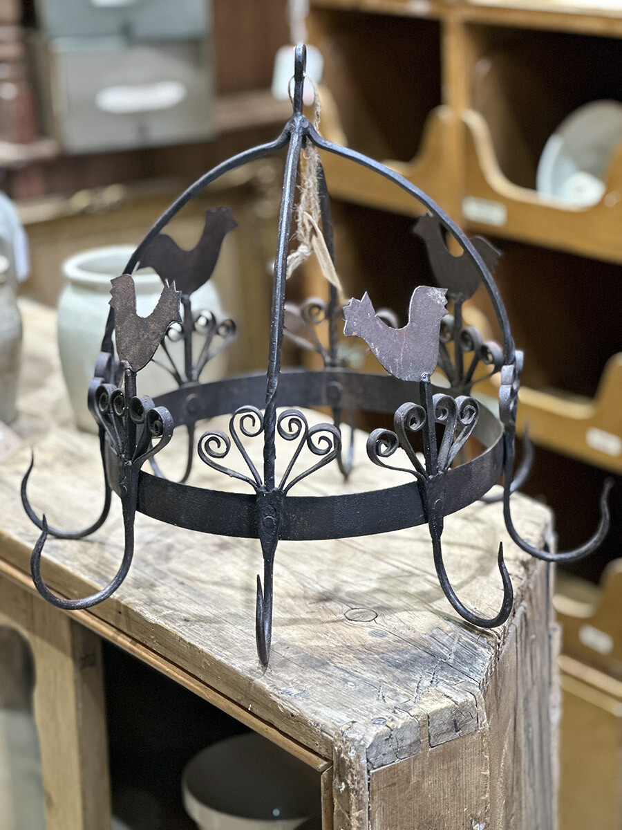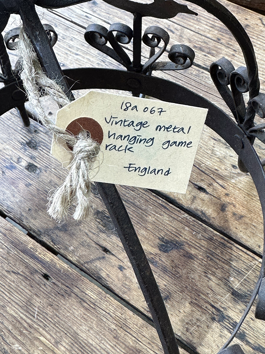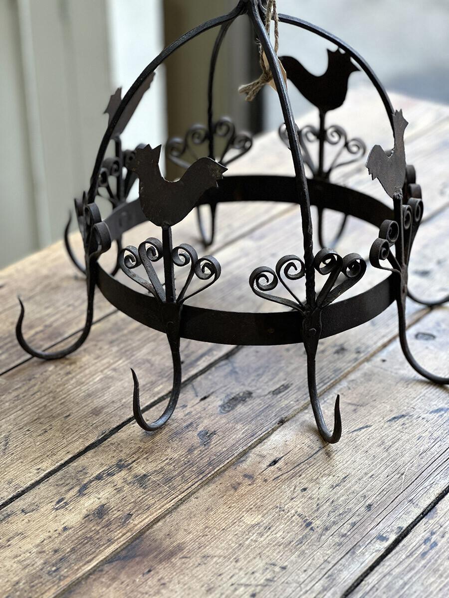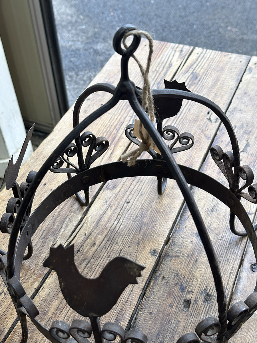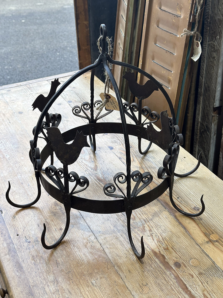 18a-067 Vintage wrought iron hanging game rack (round chicken)