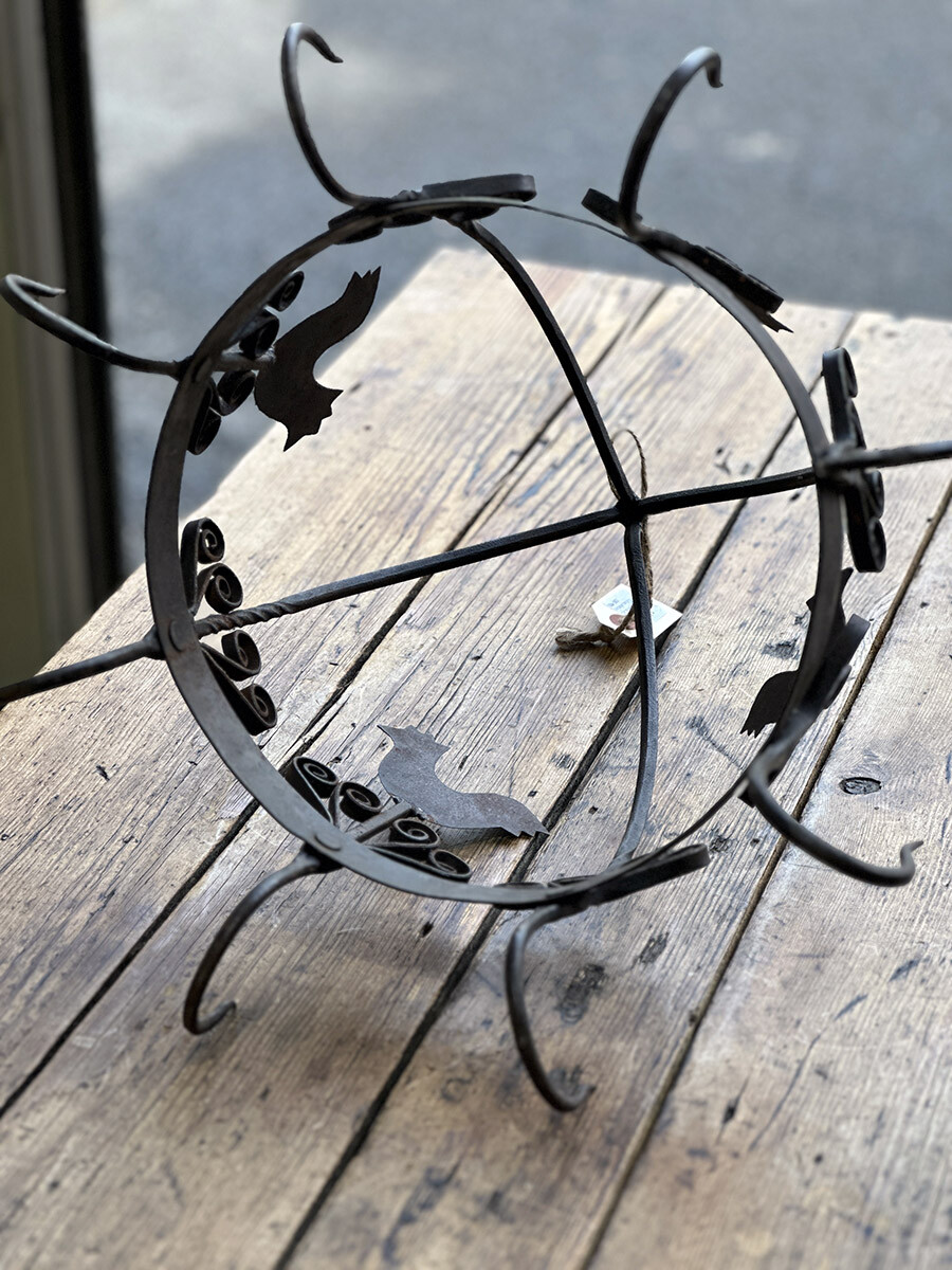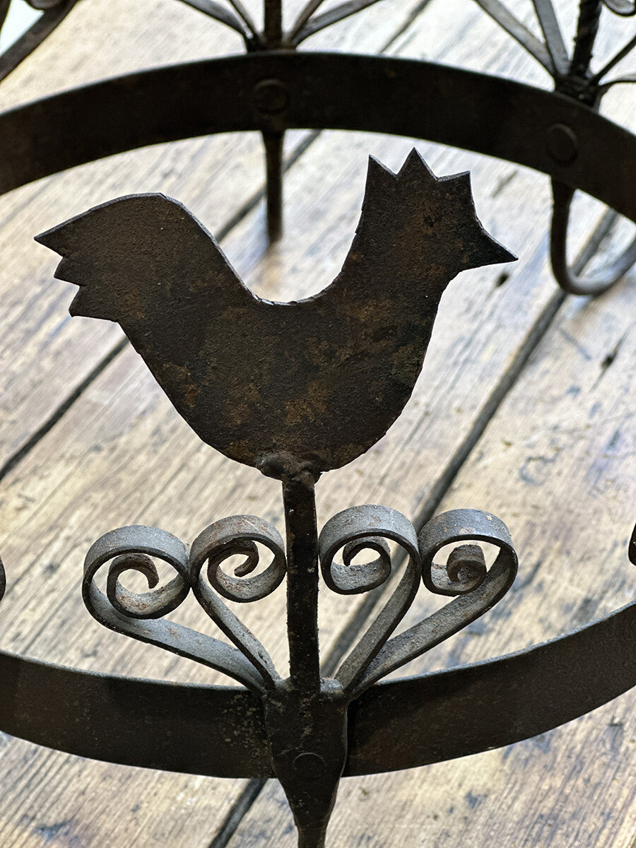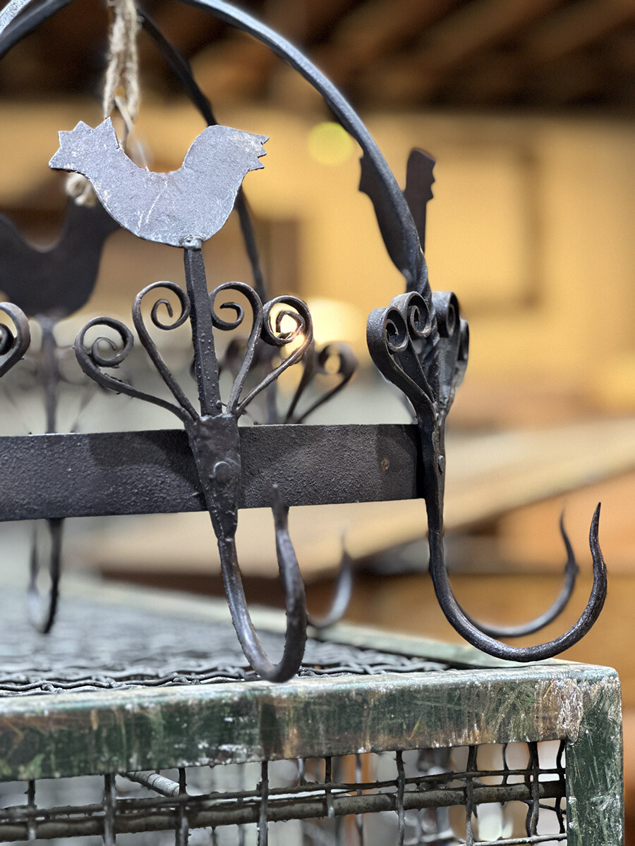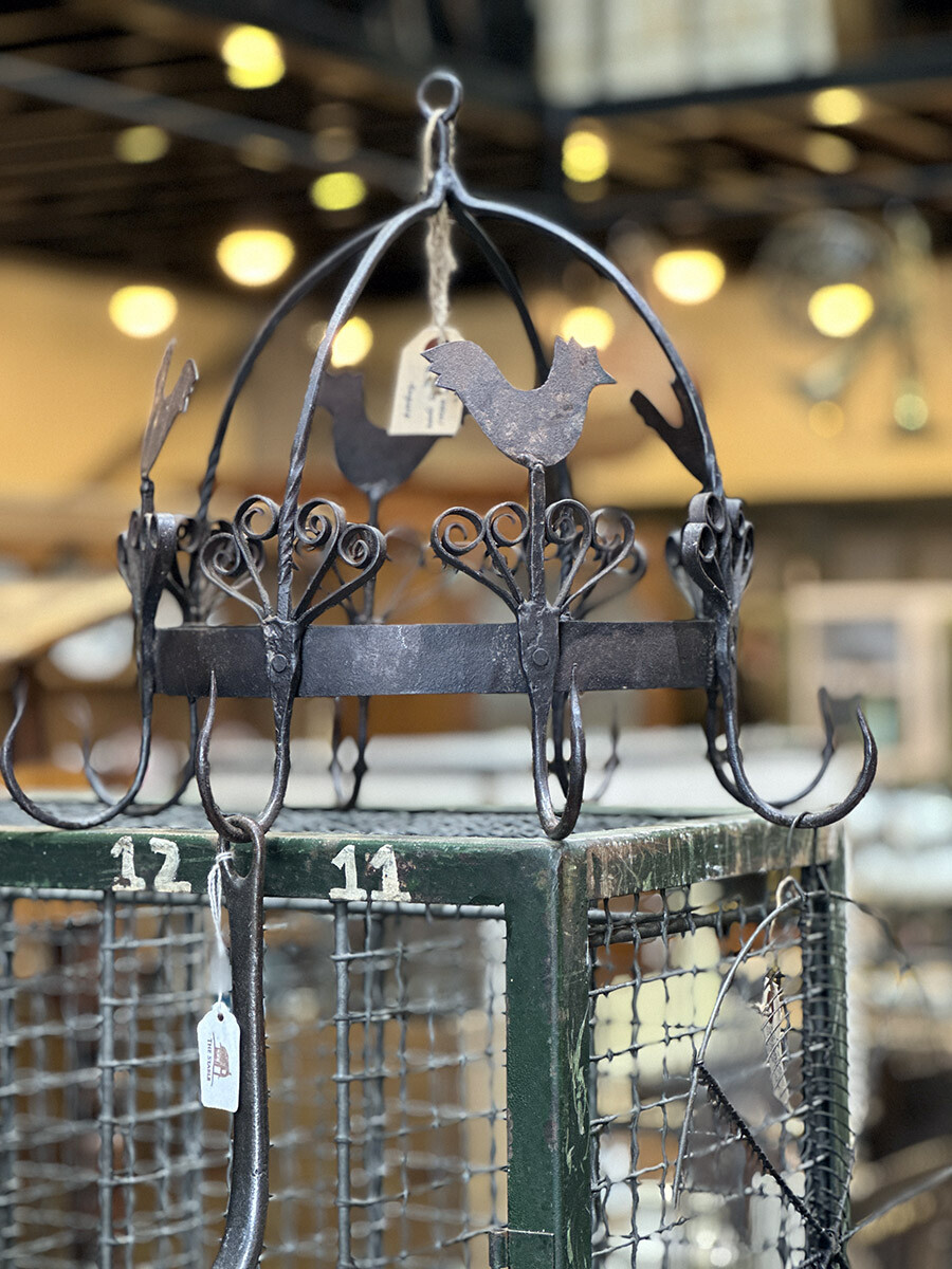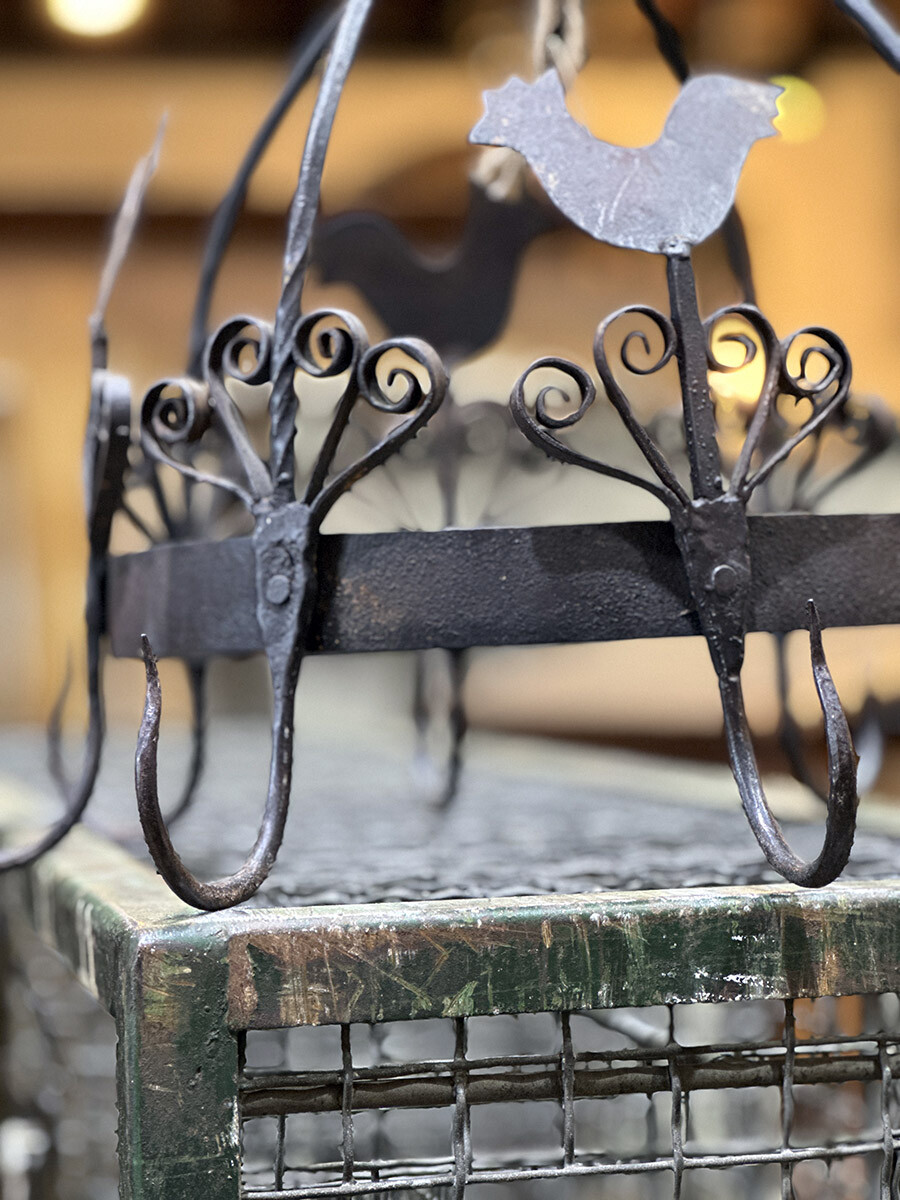 18a-067 Vintage wrought iron hanging game rack (round chicken)