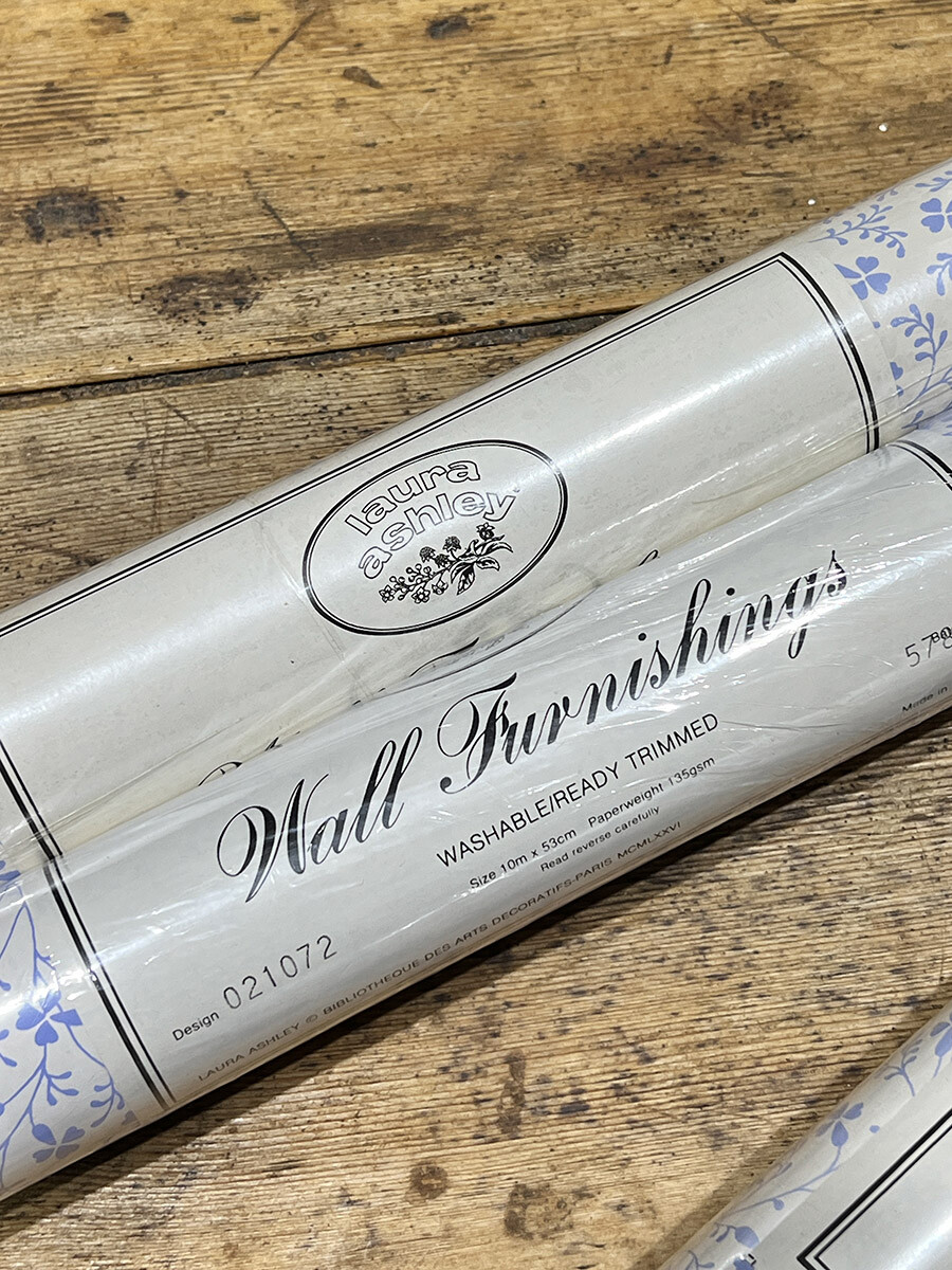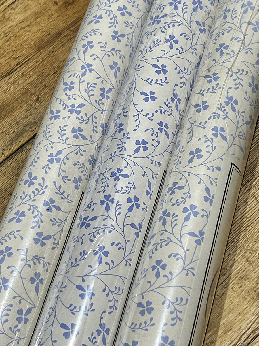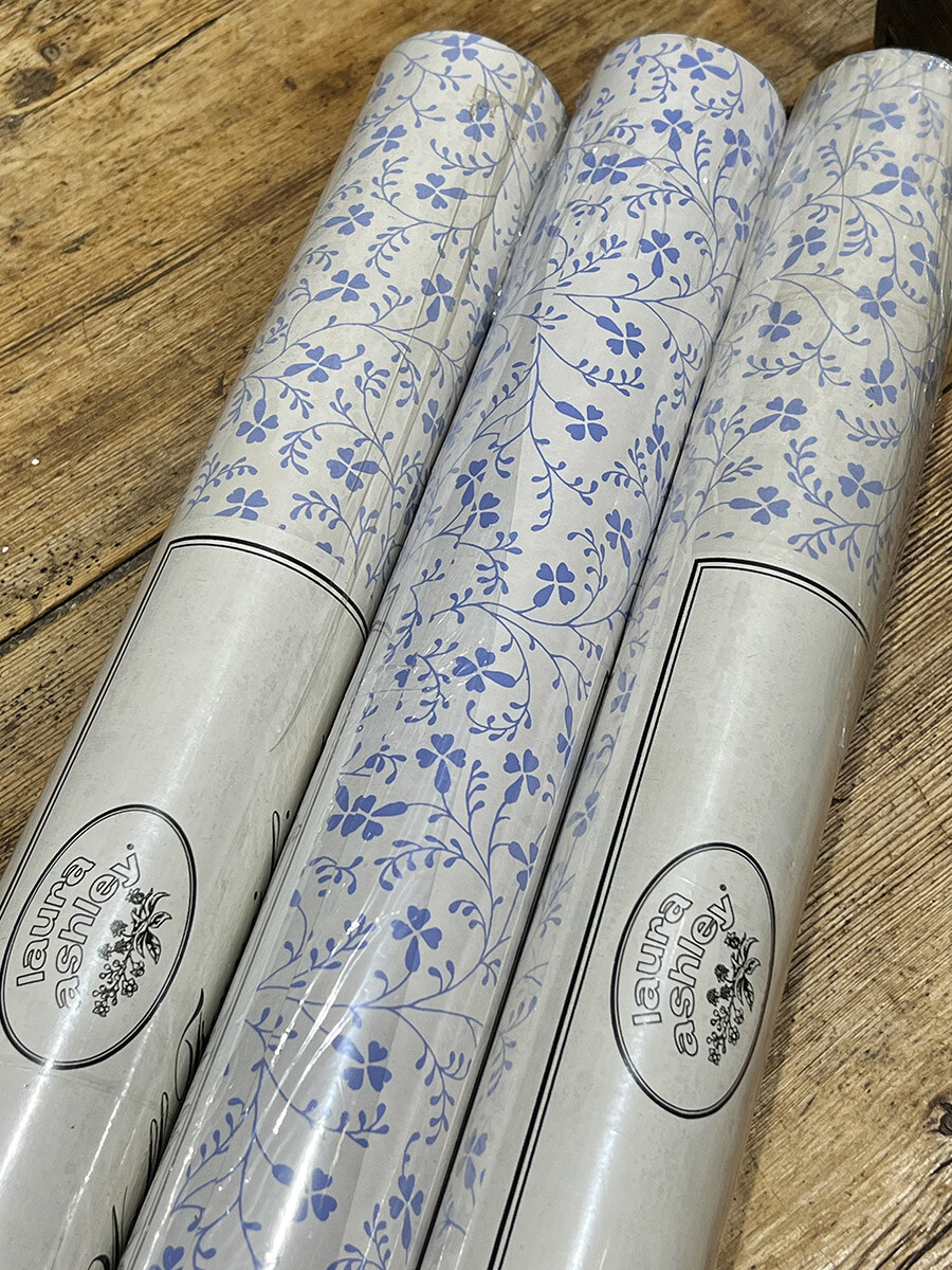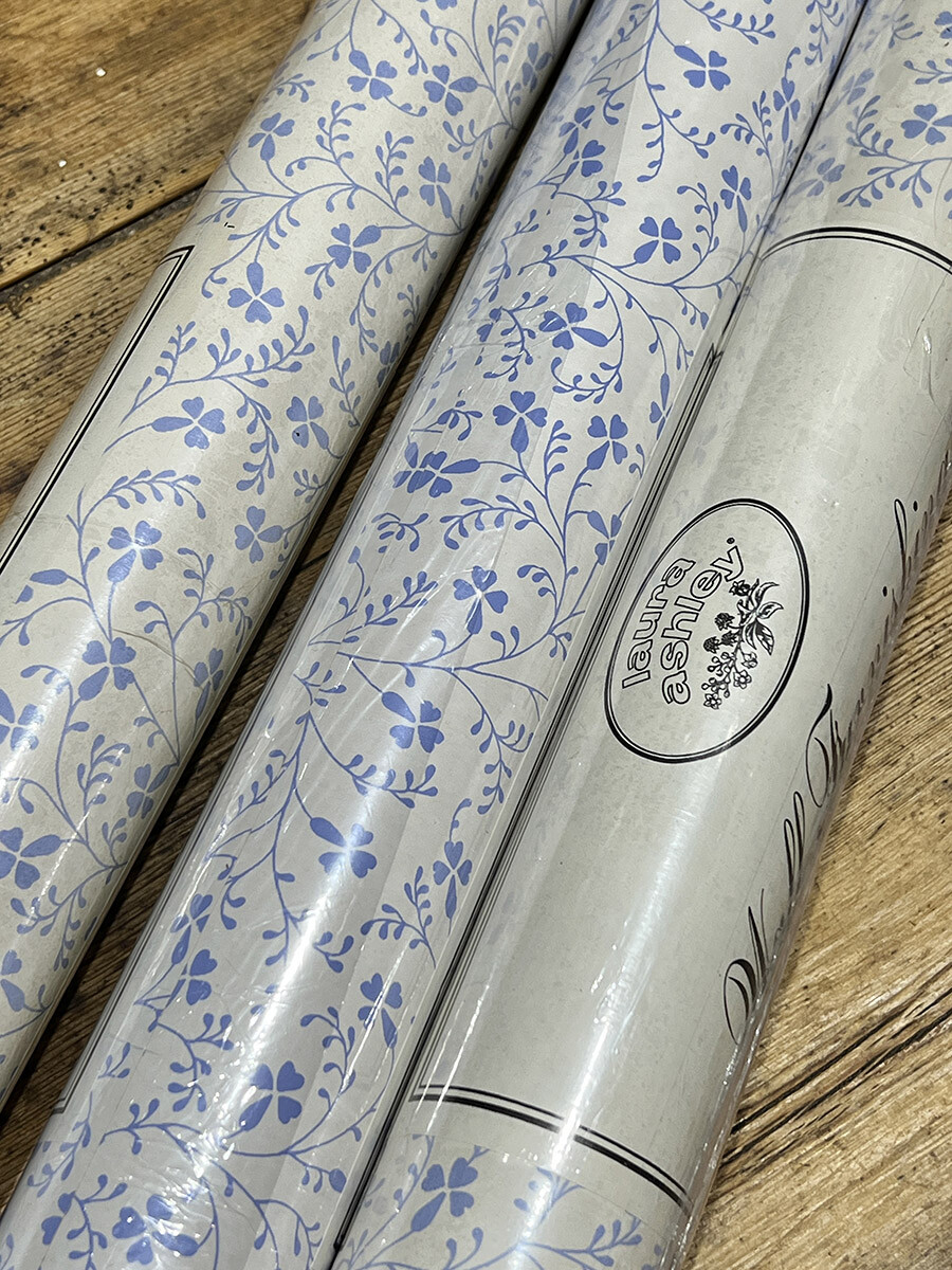 18a-146 빈티지 Laura Ashley 월페이퍼 - 블루 플로럴 패턴