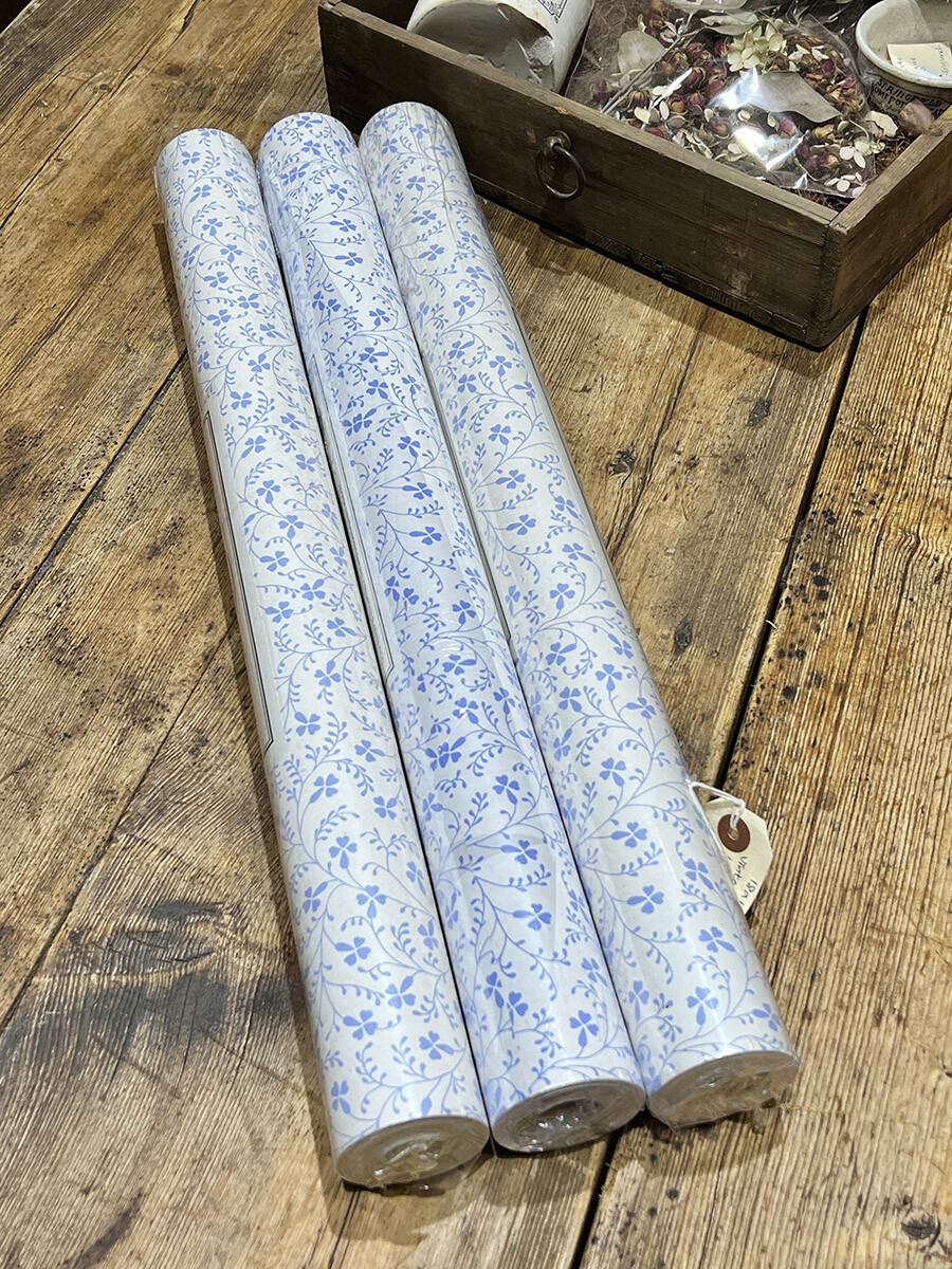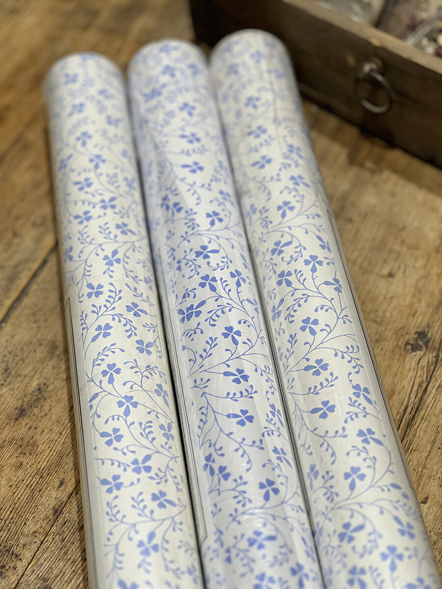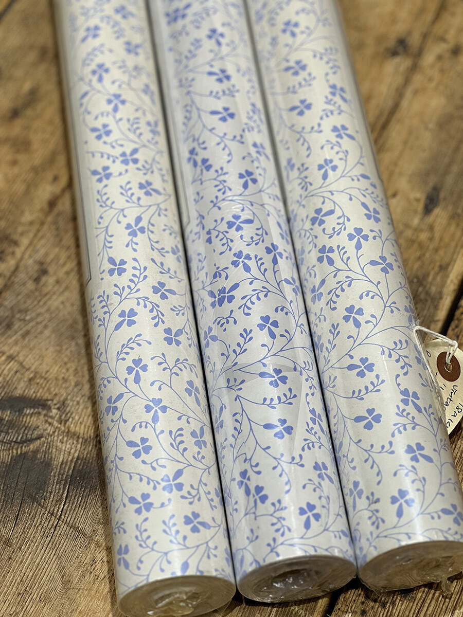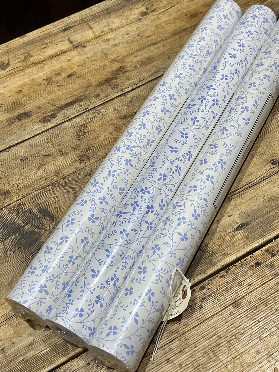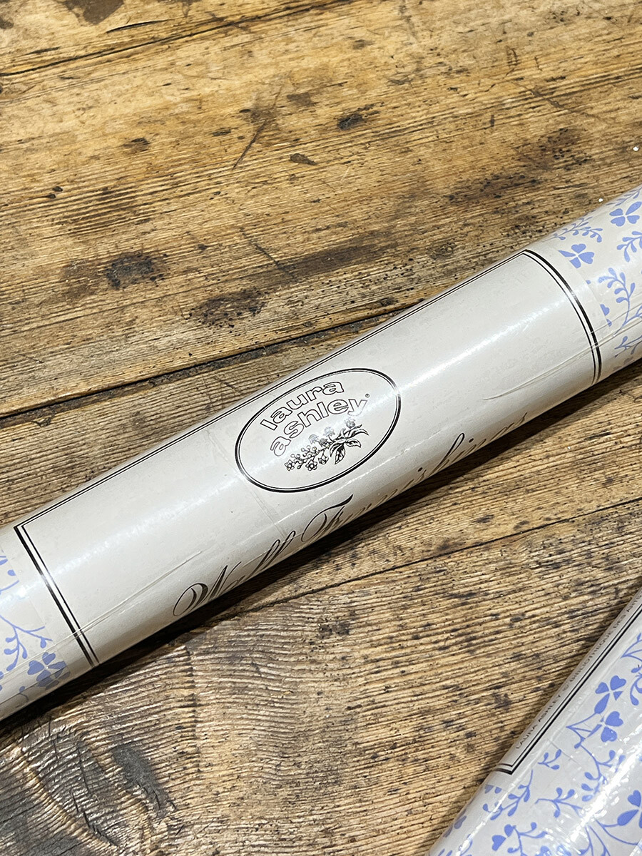 18a-146 빈티지 Laura Ashley 월페이퍼 - 블루 플로럴 패턴
