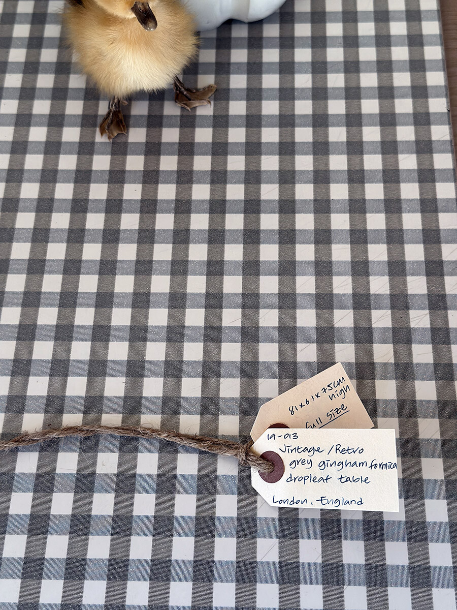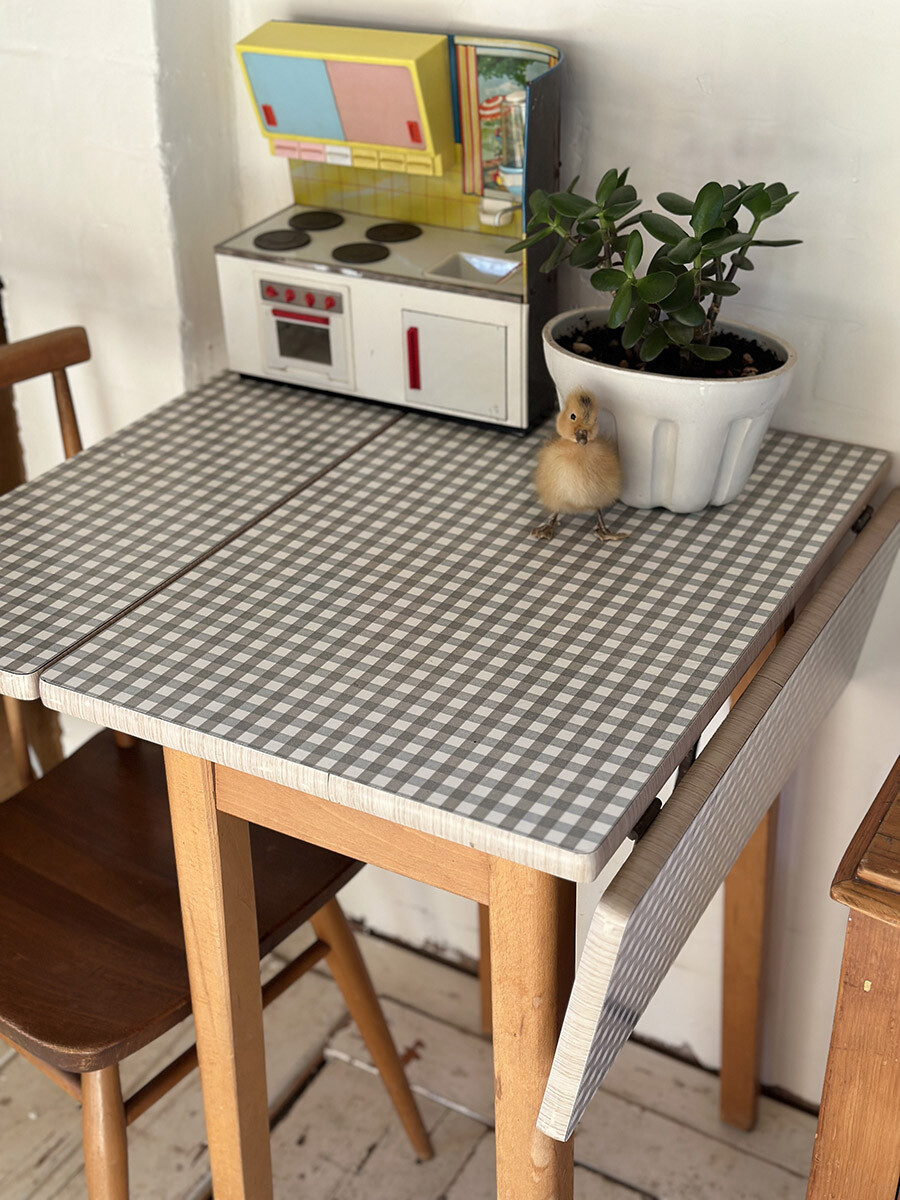 19-013 Vintage / Retro Formica gingham check dropleaf table (grey)