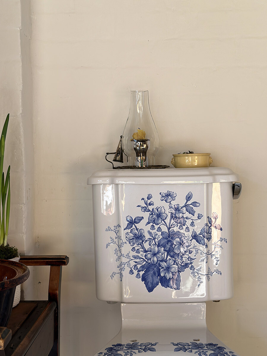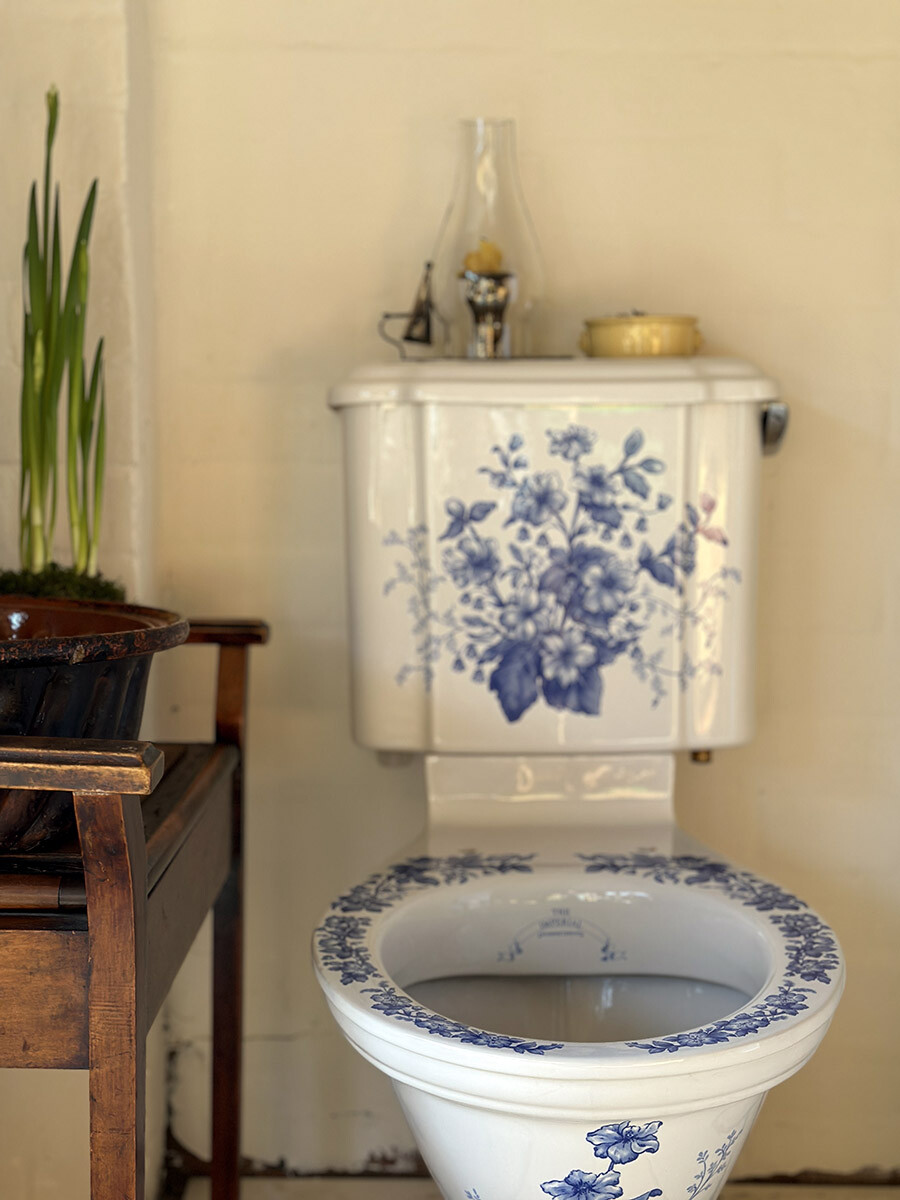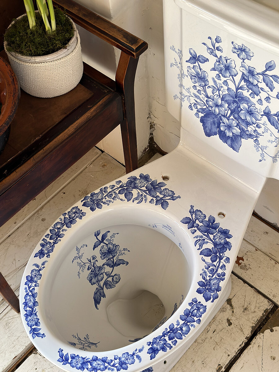 영국의 바스룸 도기 및 가구 업체인 IMPERIAL(임페리얼) 사에서 제작한 좌변기로, 상태가 민트급으로 매우 좋아 수집된 상품입니다. 임페리얼은 지금까지도 장인이 수작업으로 하나 하나 도기를 생산하는 업체이며, 1800년대의 빅토리안 스타일의 고급 욕실용 도기와 가구 및 타일 등을 생산하고 있습니다. 본 상품은 임페리얼 사에서 생산했던 시스턴(물탱크)이 포함되어 있는 모델로, 빅토리안 디자인 중에서도 특히 신고전주의적인 요소들이 많이 반영되어있고, 델프트 블루 스타일의 플로럴 그림이 추가 되어 있습니다. 시트나 커버 부분은 본래 목재로 된 것이 사용되었을 것으로 여겨지나, 수집 당시에 포함되어 있지 않았습니다. 실사용을 위한 설치는 지역 업체를 통하시거나, DIY로 진행하셔야 합니다.