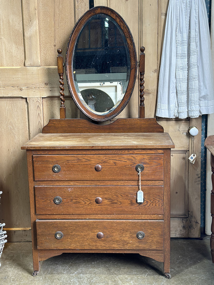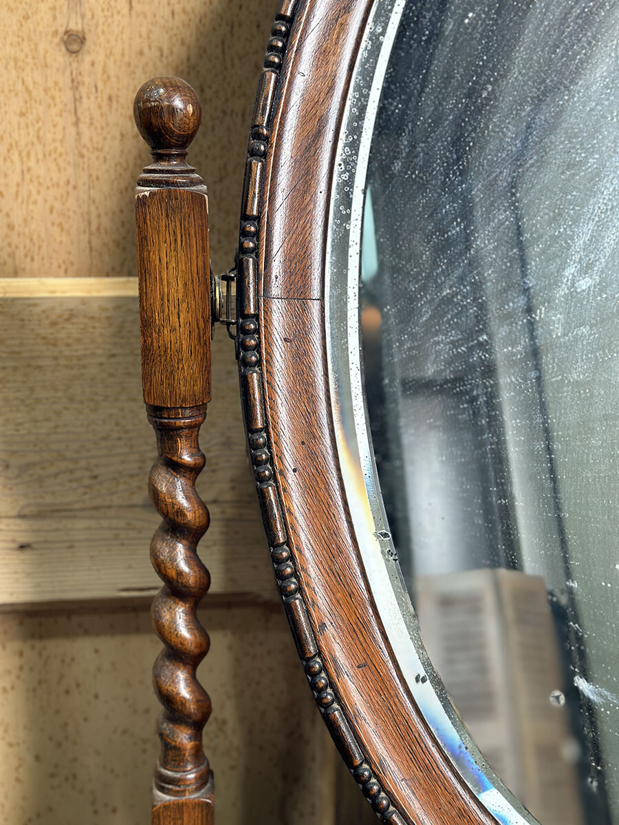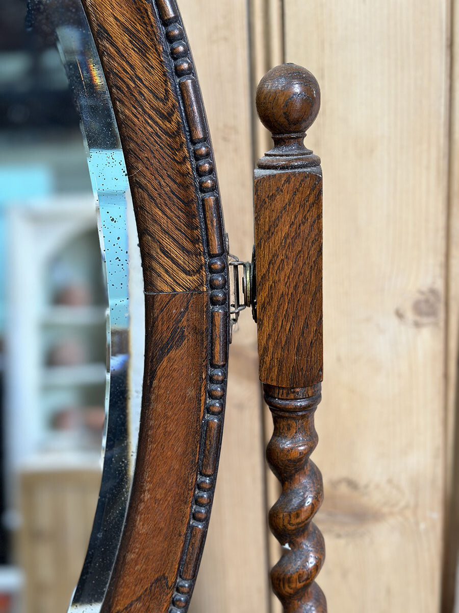 20-007 Vintage oak dressing table with oval mirror - barley twist