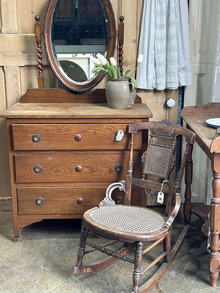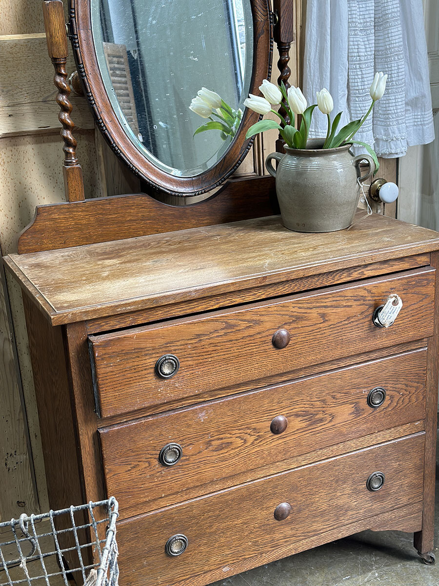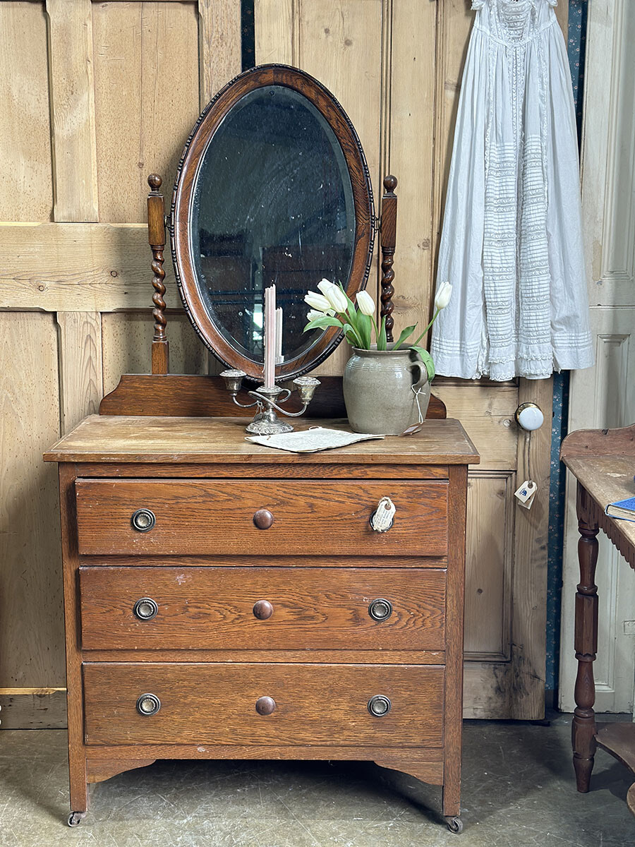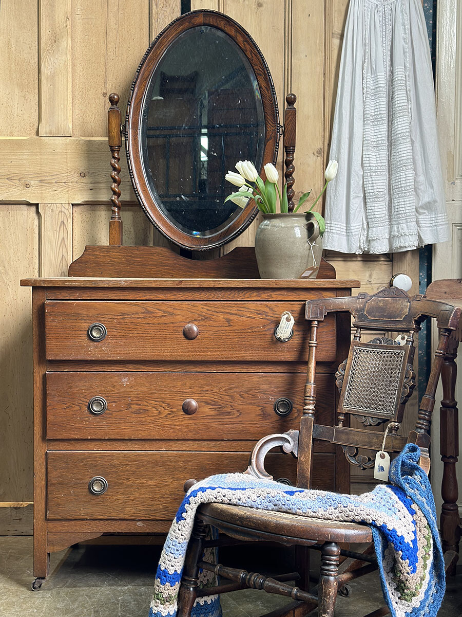 20-007 Vintage oak dressing table with oval mirror - barley twist