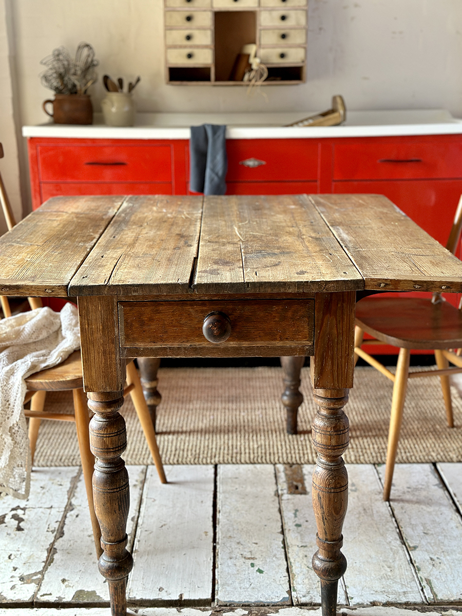 20-034 Old vintage pine dropleaf table with a drawer