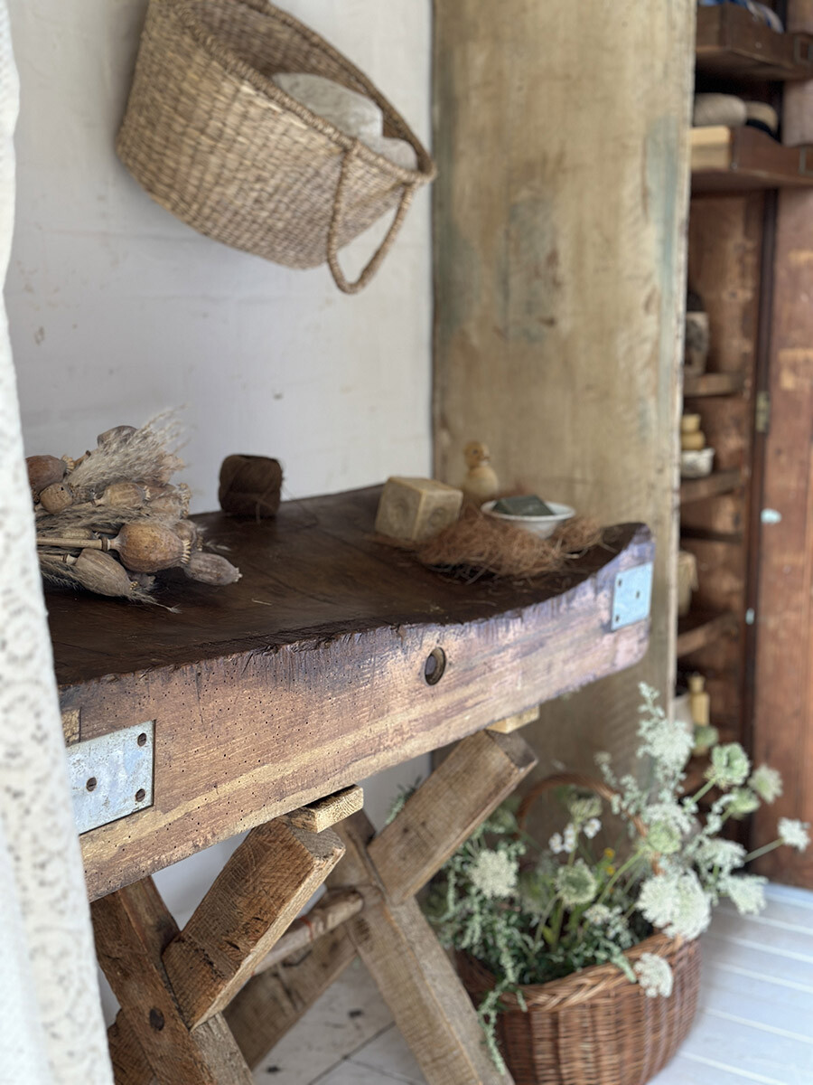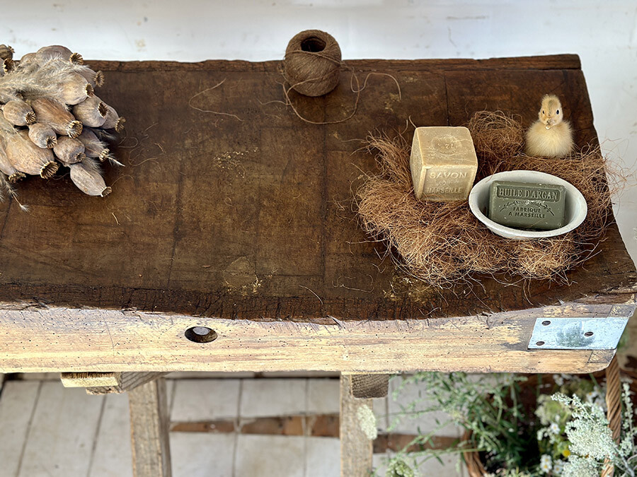 또한 본 상품의 경우, 앤틱 스탠드 위에 붓쳐스 블록이 얹혀져 있는 형태임을 보실 수 있습니다. 엄격하게 구분 짓자면 붓쳐스 블록은 하부의 스탠드를 제외하고 위의 상판 부분만을 말하는데, 이 붓쳐스 블록을 어디에든 필요에 따라 이동할 수 있도록 했던 것이죠. 그래서 유통되는 앤틱 붓쳐스 블록들 중에는 상판만 있는 것들도, 혹은 본 상품처럼 자기 나름대로의 스탠드나 받침대를 갖추고 있는 경우들도 있습니다.