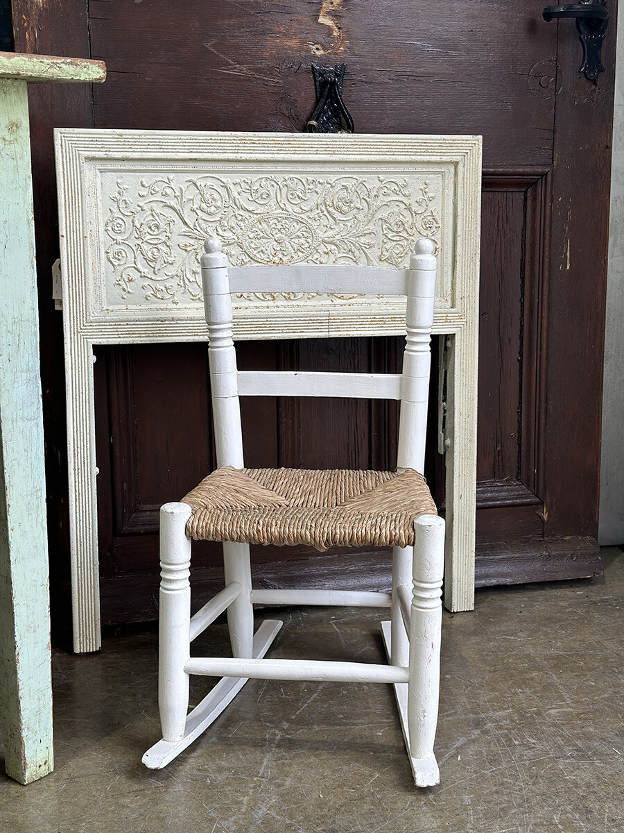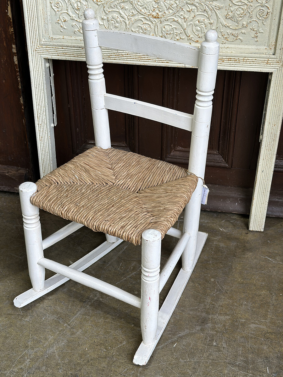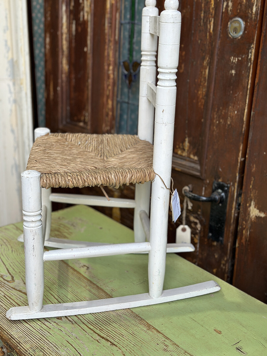 21-055 Vintage shabby chic rush seat kids rocking chair