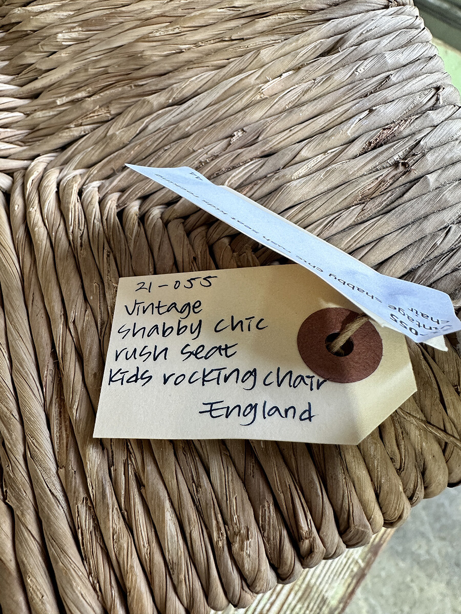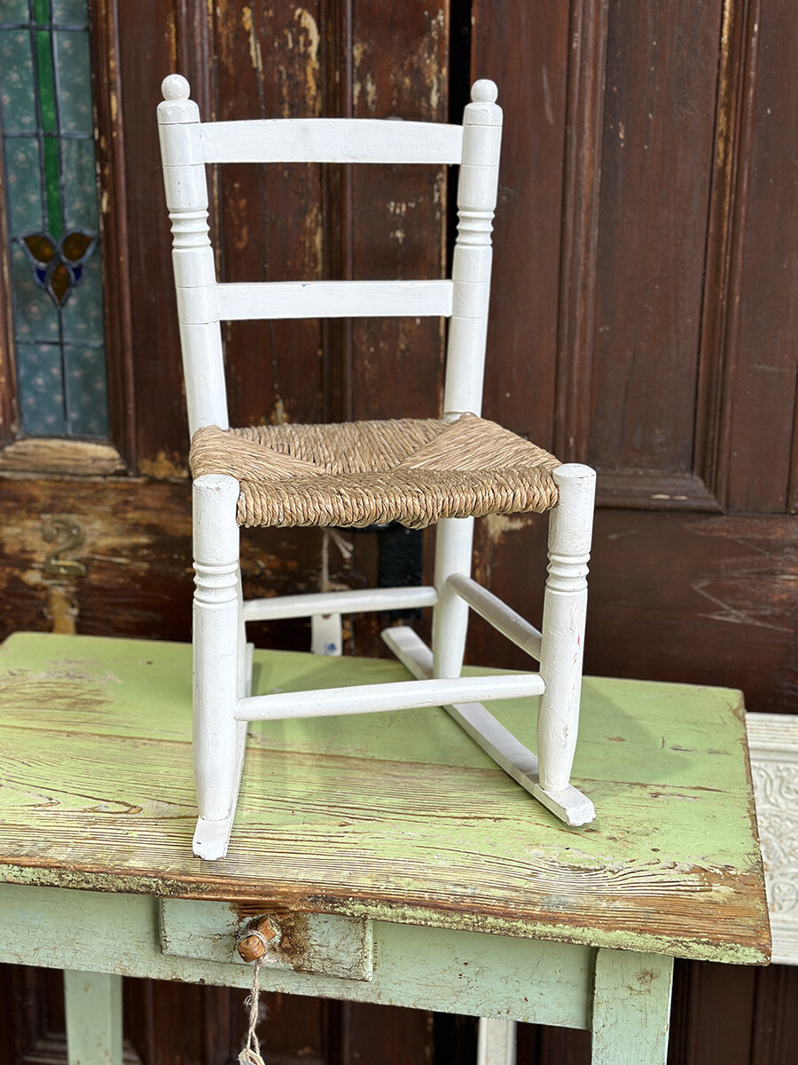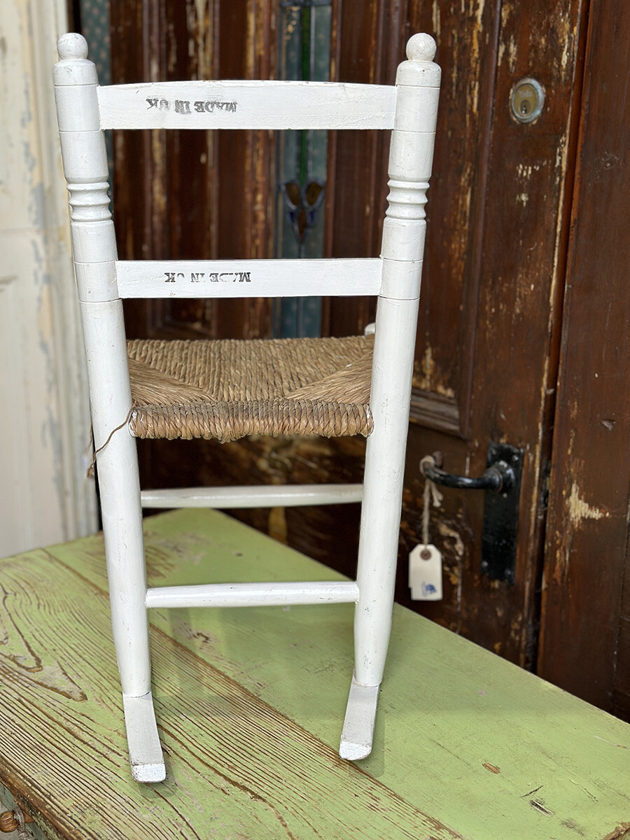 21-055 Vintage shabby chic rush seat kids rocking chair