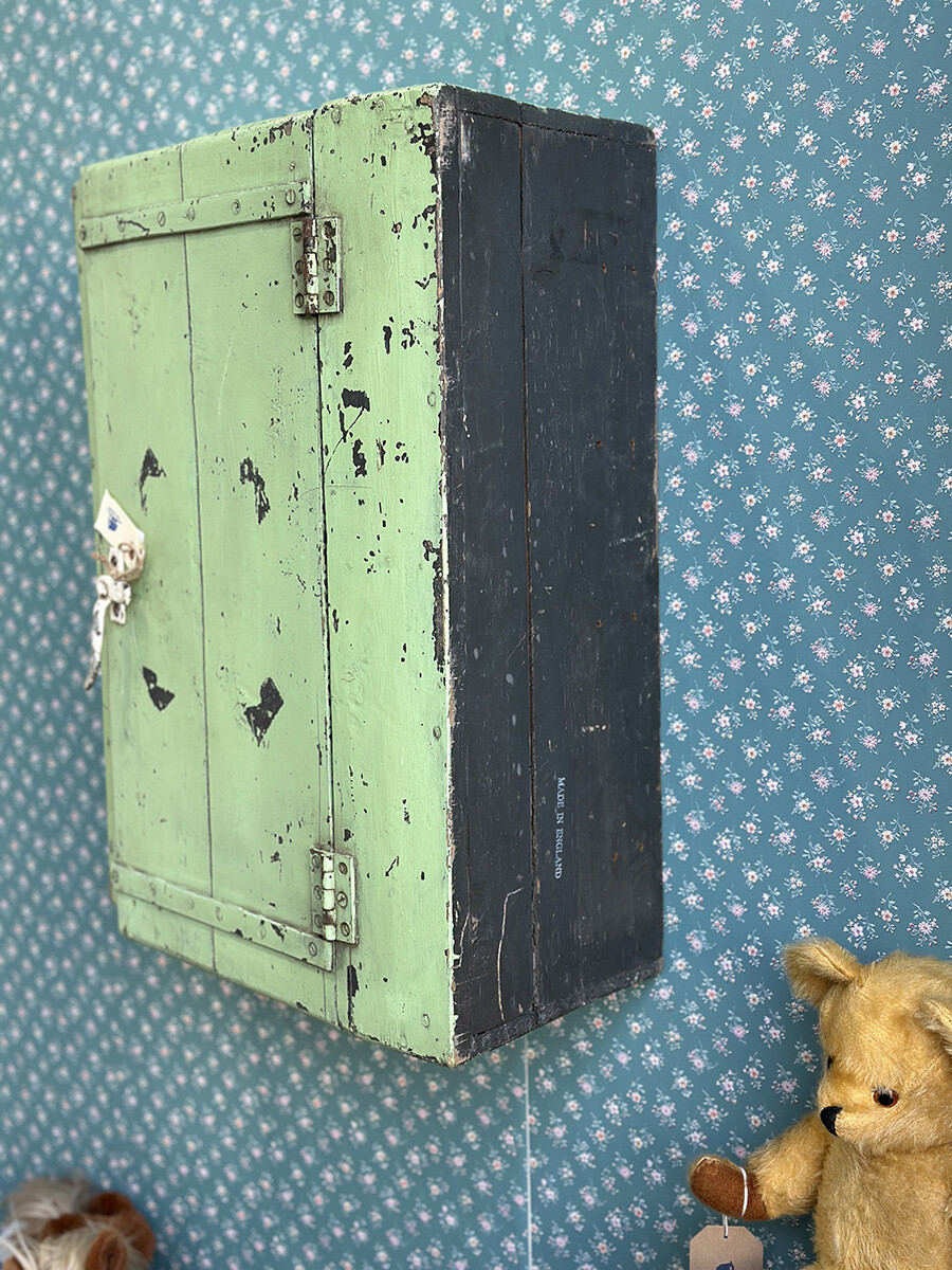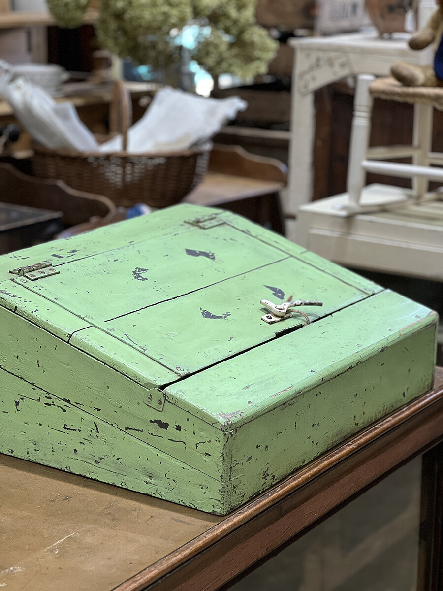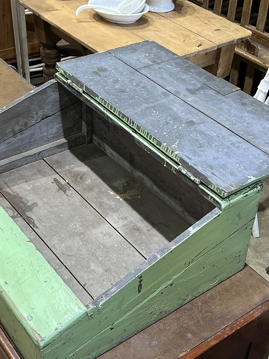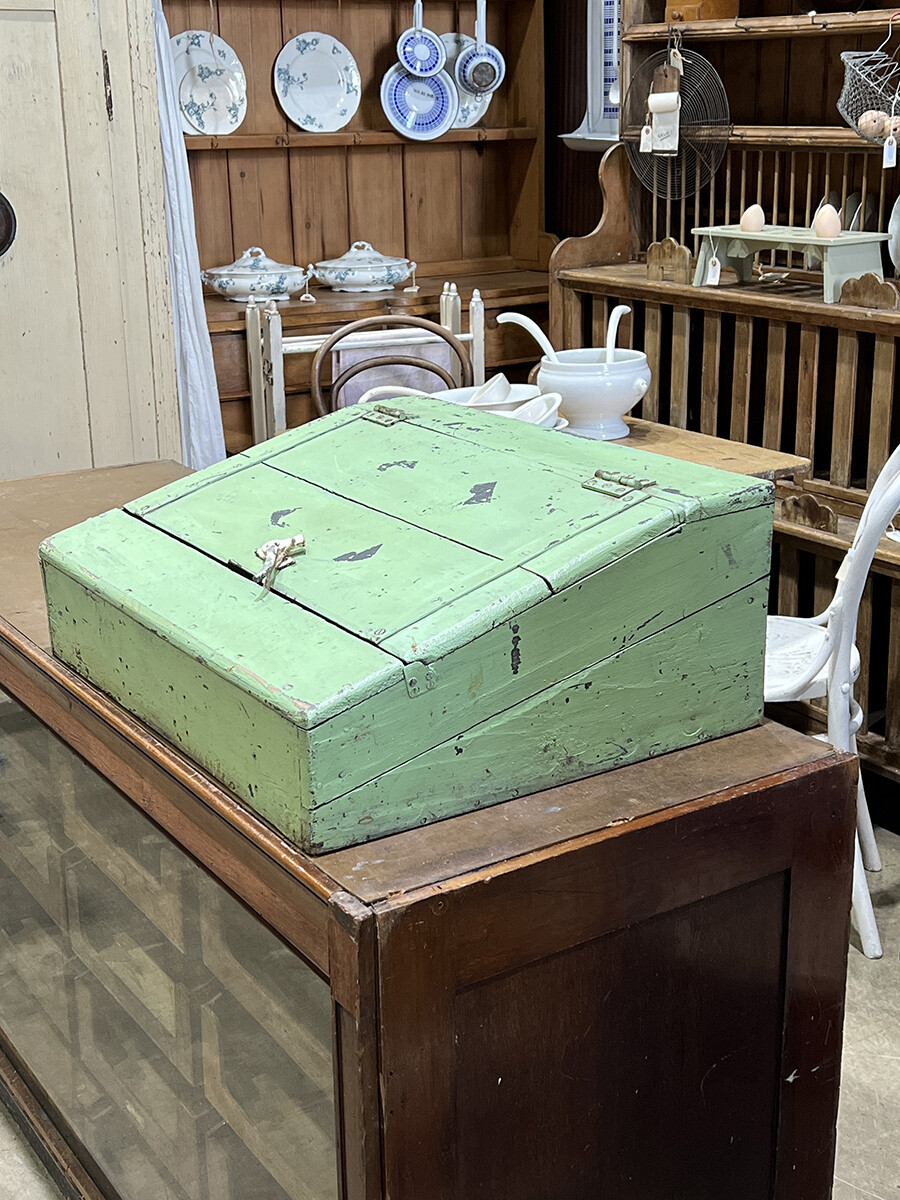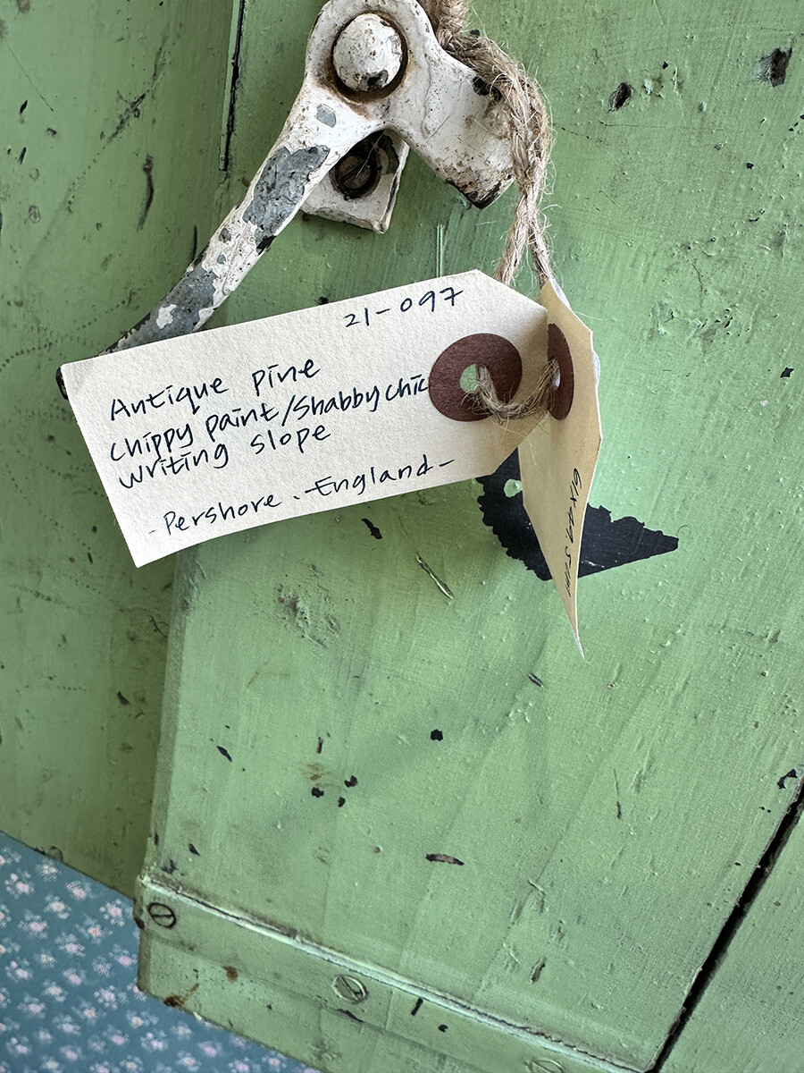 21-097 Antique pine shabby chic writing slope cabinet (soft green)