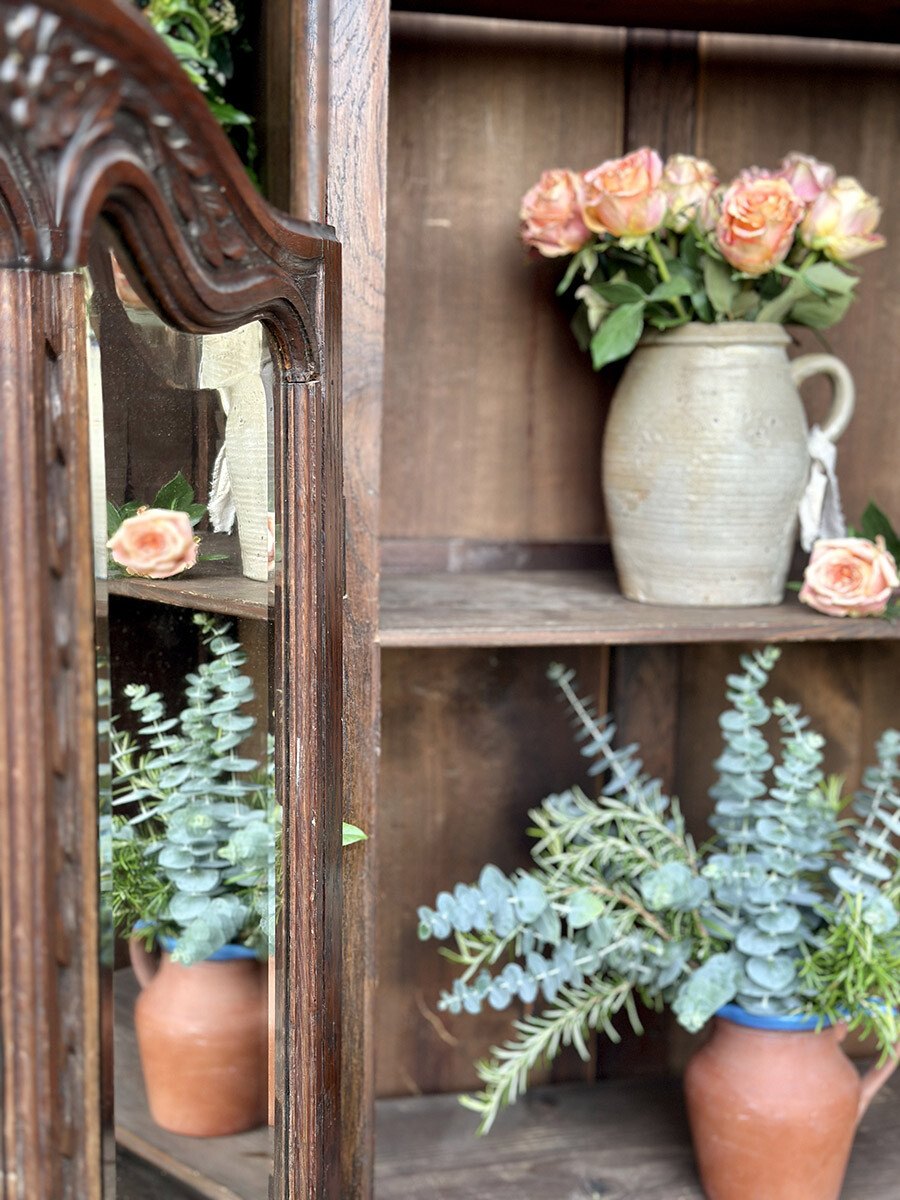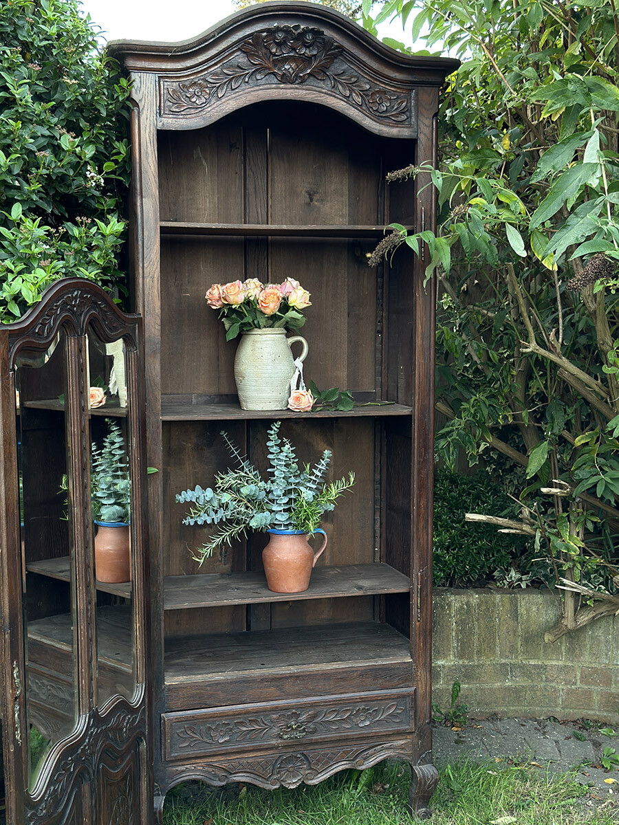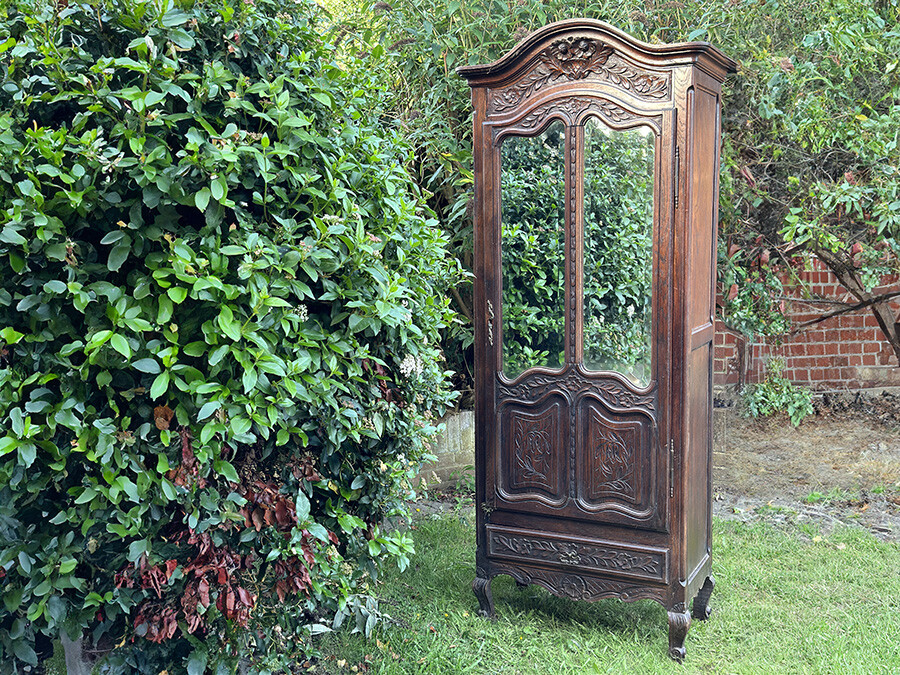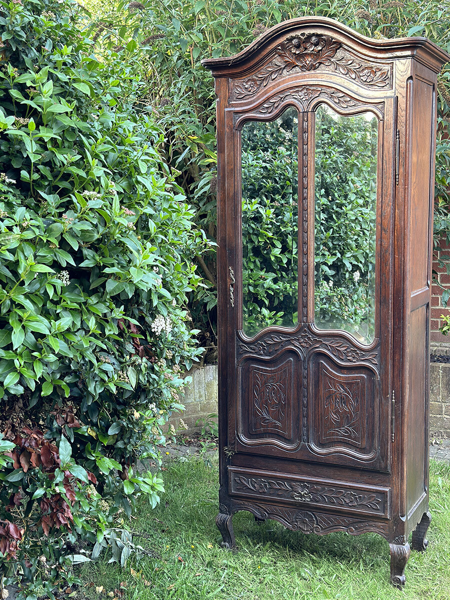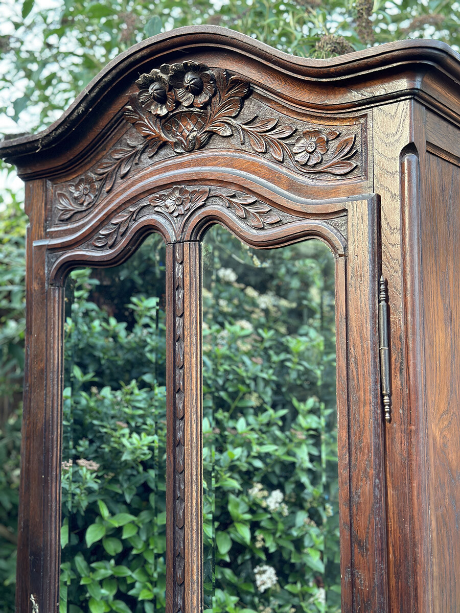 21-105 Antique Oak & Pine French wardrobe with a drawer and mirror