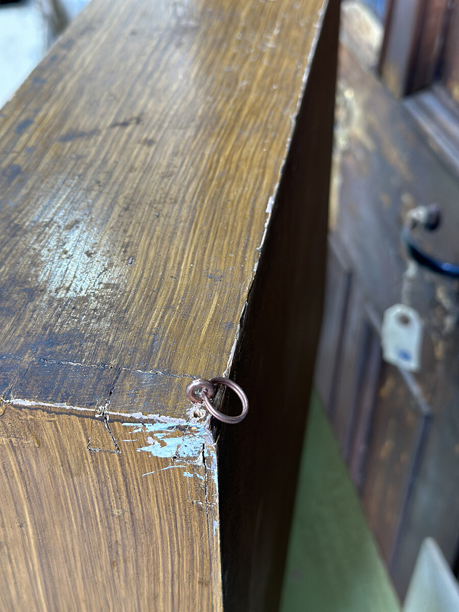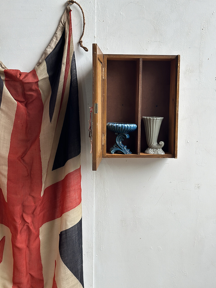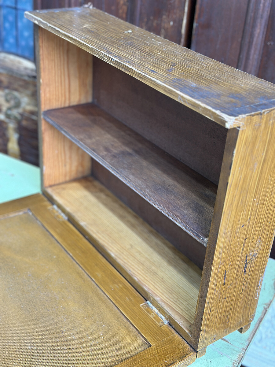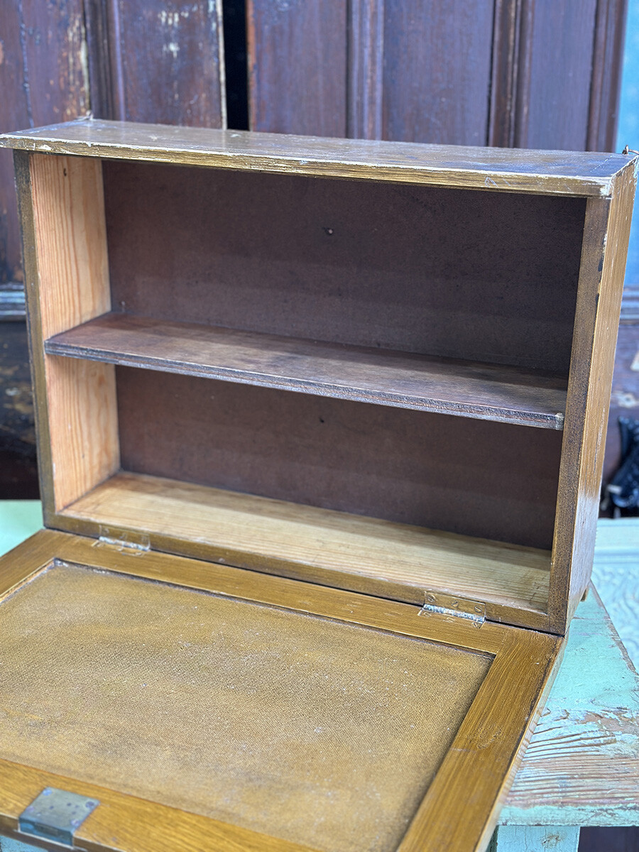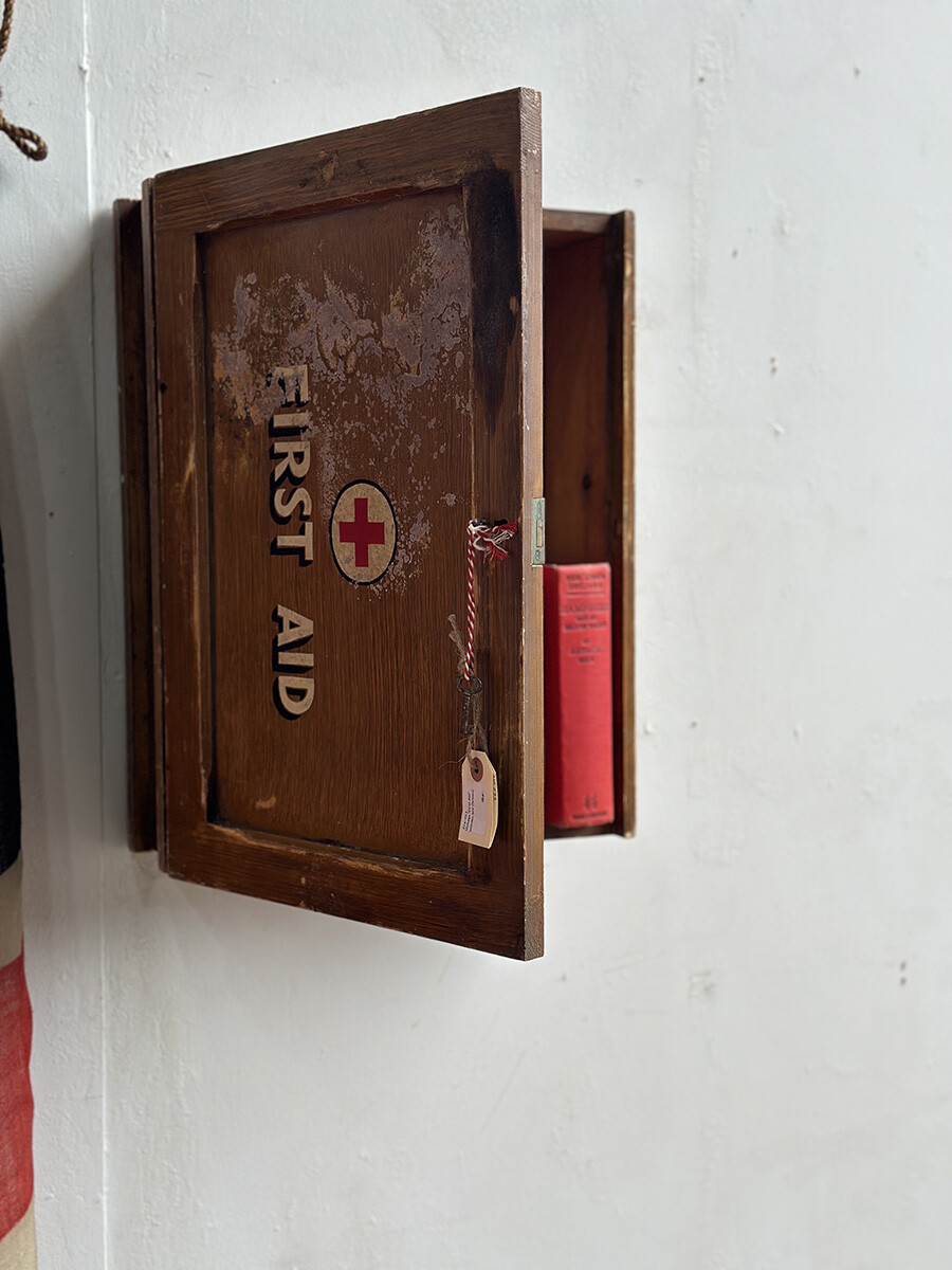 러스틱한 느낌의 세월감이 짙게 묻어나는 빈티지 응급처치 상자입니다. 원목과 플라이우드로 제작되어 있으며, 브라운 컬러의 우든 박스에 긴 세월이 흘러 입혀진 파티나가 멋스러움을 더해주고 있습니다. 퍼스트 에이드(First Aid)는 '응급처치'를 뜻하는 말로, 이에 필요한 약품이나 붕대, 의료 가위 등을 수납하던 상자였습니다. 지금은 이러한 빈티지 응급상자를 소품이나 디스플레이용 캐비넷으로 활용하곤 합니다. 벽에 걸 수 있게끔 모서리에 고리가 있어서, 벽걸이로도 사용 가능합니다. 내부는 2단으로 나뉘어 있습니다.