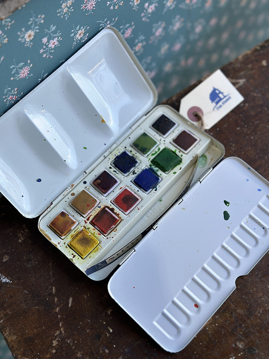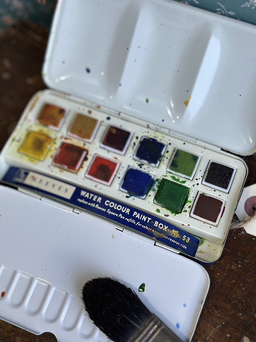 21a-094 Vintage REEVES paint & tin - Water colour paint box no.53
