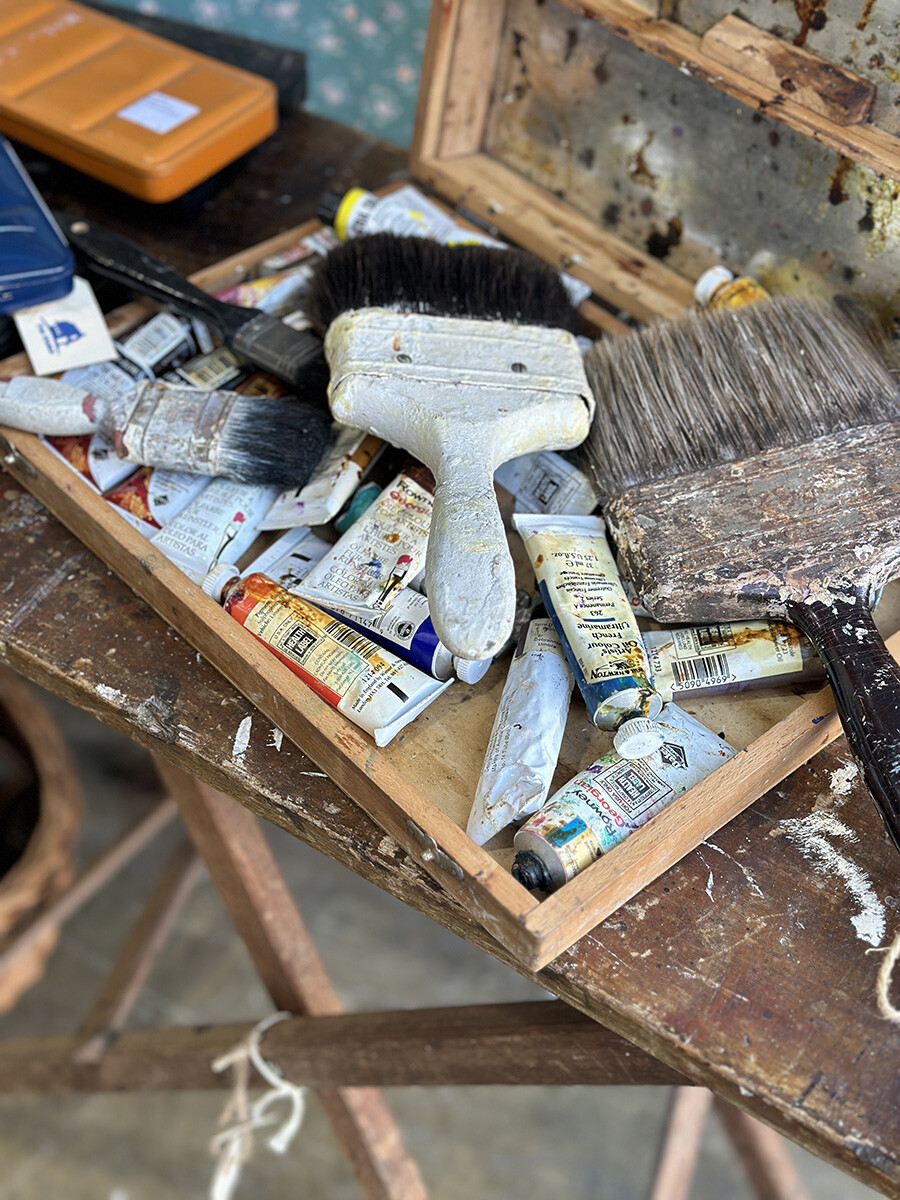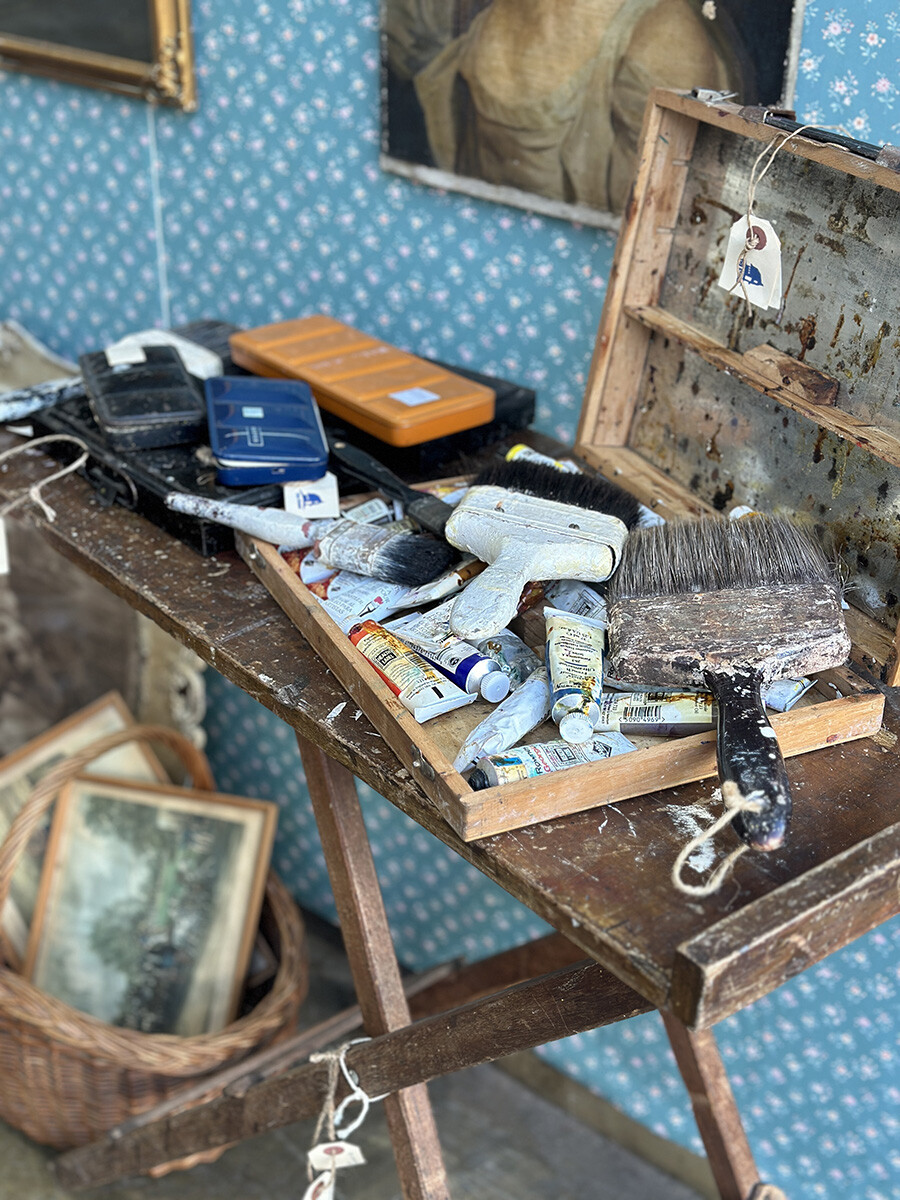 리브스(Reeves)는 1766년에 설립된 영국의 미술 재료 제조회사로, 창업자인 윌리엄 리브스(Willam Reeves)가 미술용 수채화 물감을 처음으로 발명한 것으로 잘 알려져 있습니다. 지금까지도 리브스에서는 수채와 및 유화 물감을 비롯해 붓과 다양한 미술 도구 등을 제작하고 있습니다. 1991년에는 미국 회사에 인수가 되었으나, 아직까지도 그 브랜드와 명맥을 훌륭하게 이어나가는 중입니다. 해당 제품은 Reeves water colour paint box no.53 으로, 일반적으로 현재 수집 가능한 동종 상품 중, 상태가 매우 뛰어나게 보전된 키트입니다.