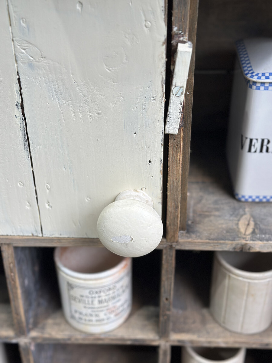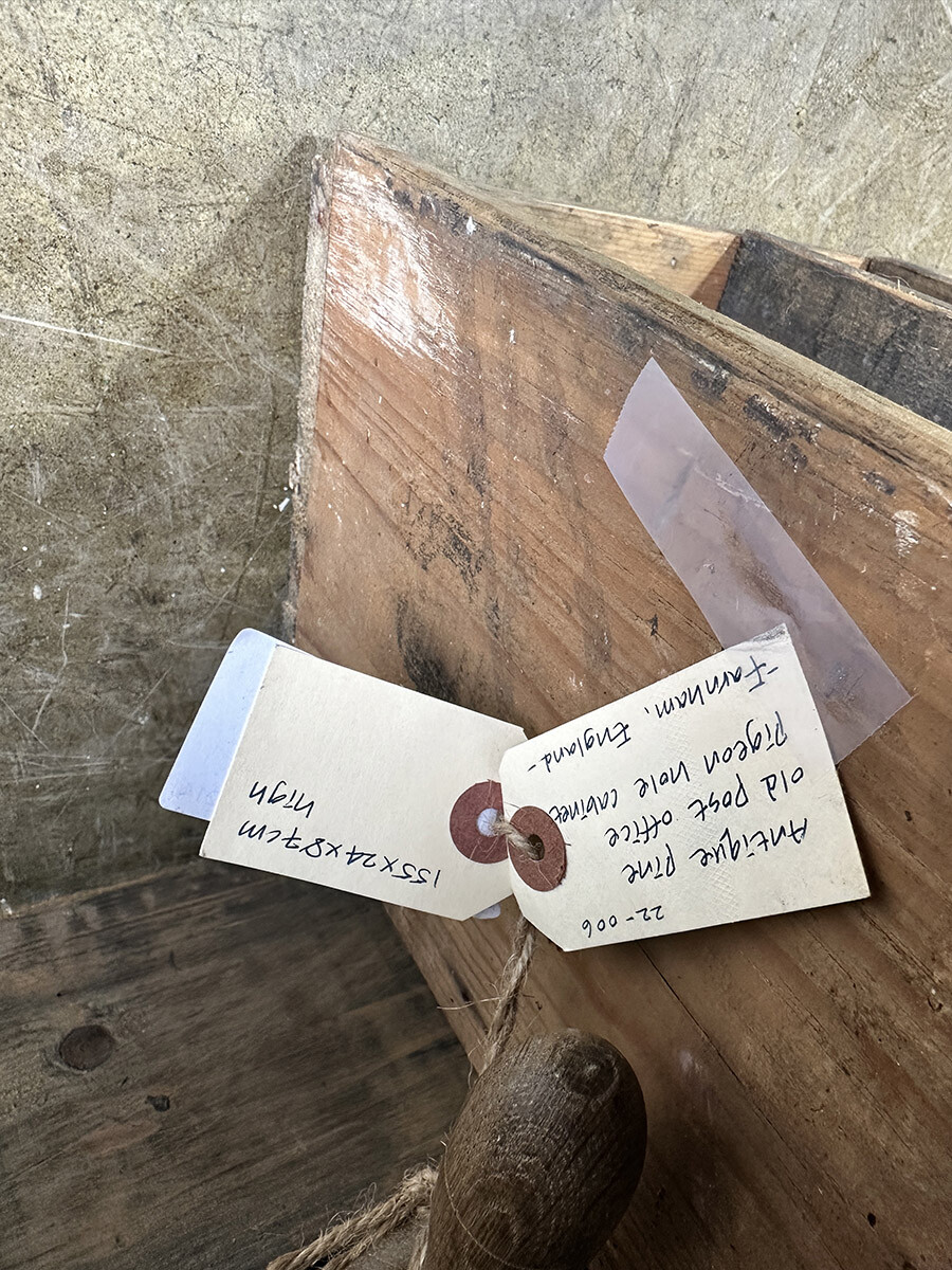 영국 런던에서 약간 떨어진 교외에 우아한 시골도시, 판햄(Farnham)의 우체국에서 사용했던 앤틱 파인 소재의 피전홀 캐비넷입니다. 우편물의 분류 작업을 위해 사용되었던 캐비넷이라고 하는데, 다양한 크기에 맞는 우편물을 분류하기에 좋게끔 파티션의 구성이 다채롭게 되어 있습니다. 이렇게 오래된 피전홀 캐비넷들은 최초의 용도가 어떤 것이었든지, 지금에 와서는 다양한 물건들을 디스플레이 하는 용도로 사용되고 있습니다. 사용할 때에는 사이드보드나 테이블, 카운터 등과 같은 가구 위에 위치해두는 것도 좋겠고, 철물을 써서 벽에 걸어두는 것도 좋겠습니다.
