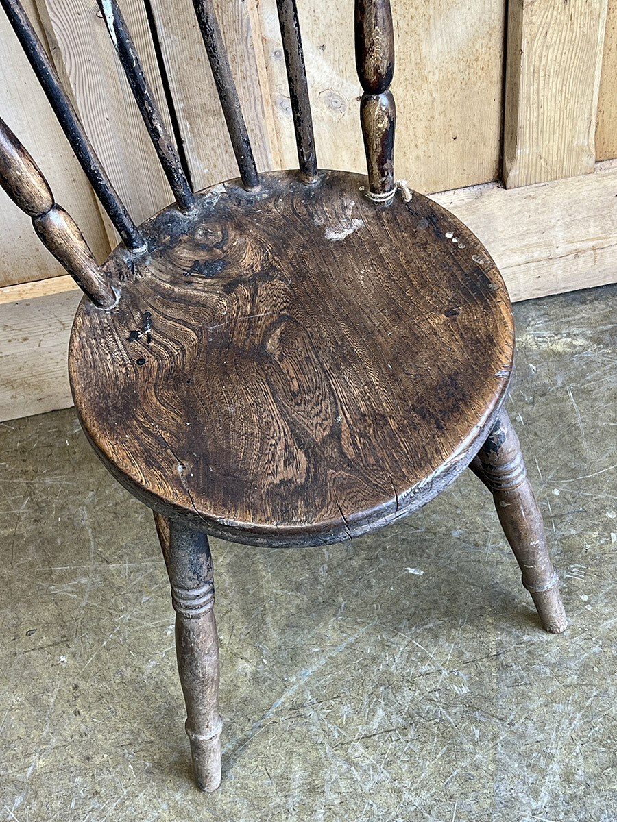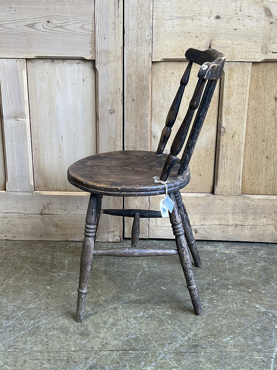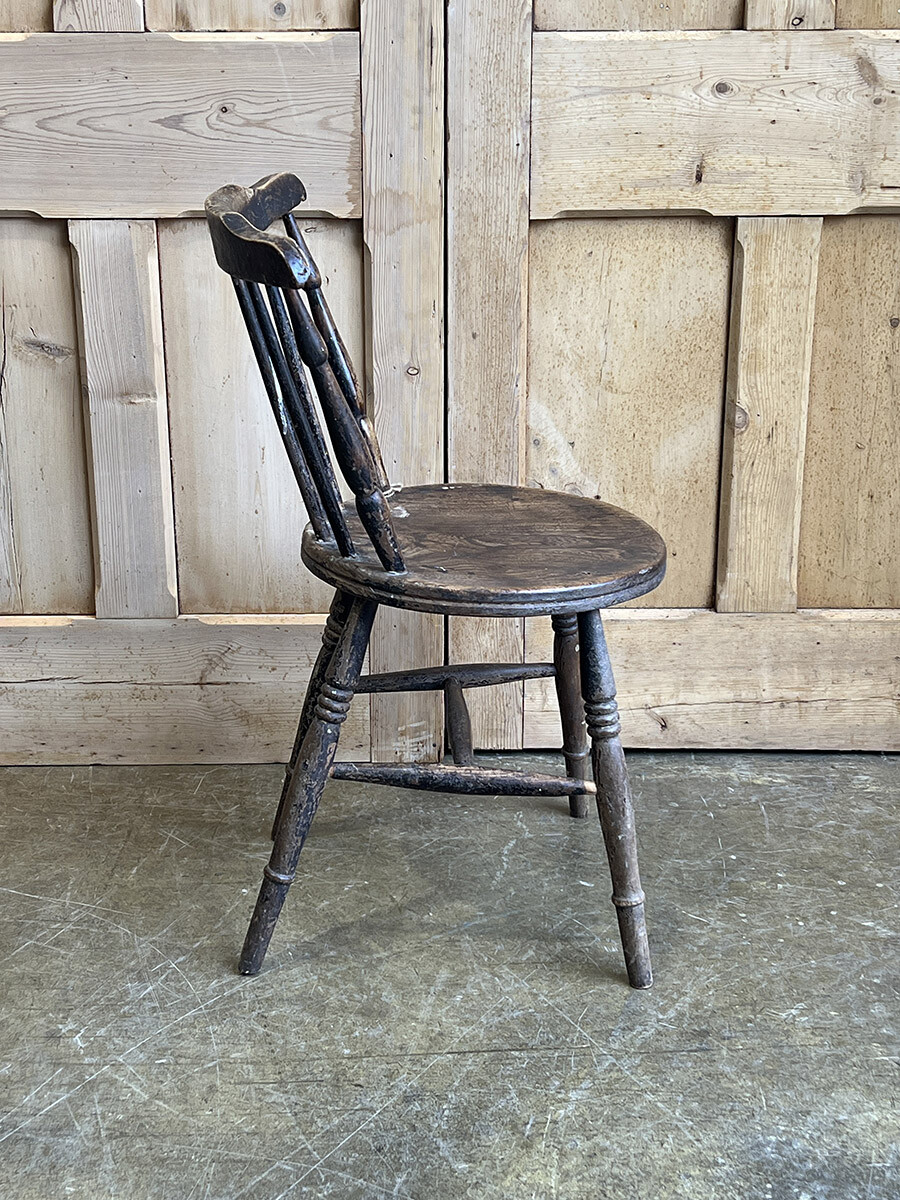 페니 시트 체어는 클래식 윈저 체어의 일종으로, 시트 모양이 동그란 페니 동전 모양을 닮아 붙은 명칭입니다. 라운드 시트 체어라고도 합니다. 선이 부드럽고 우아한 디자인으로 인기가 좋은 편입니다. 페니 시트 체어의 경우, 패널 여러 개로 시트가 조립된 것과 본 상품처럼 원목 통판인 것 두 가지가 있는데, 본 상품과 같이 원목 통판인 경우에 보다 희소성이 높습니다.