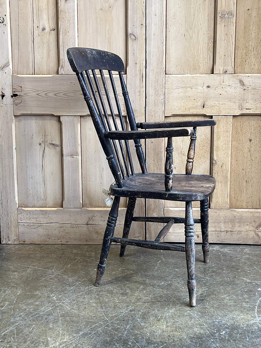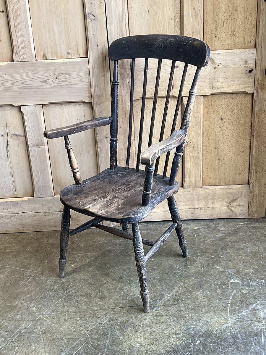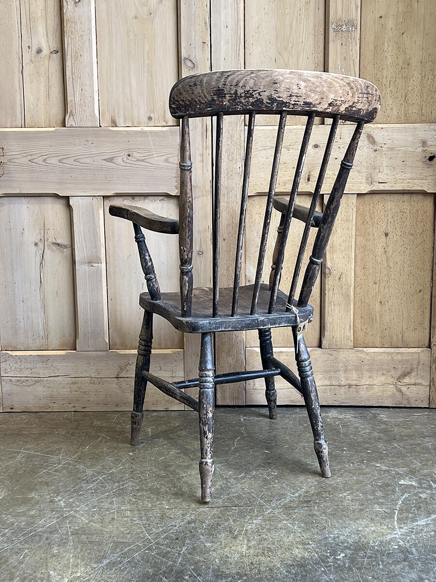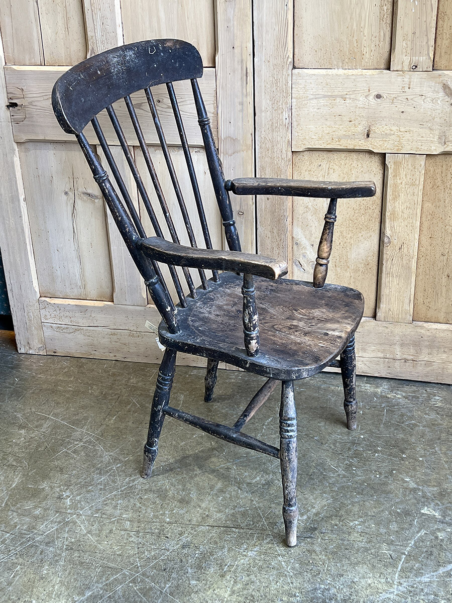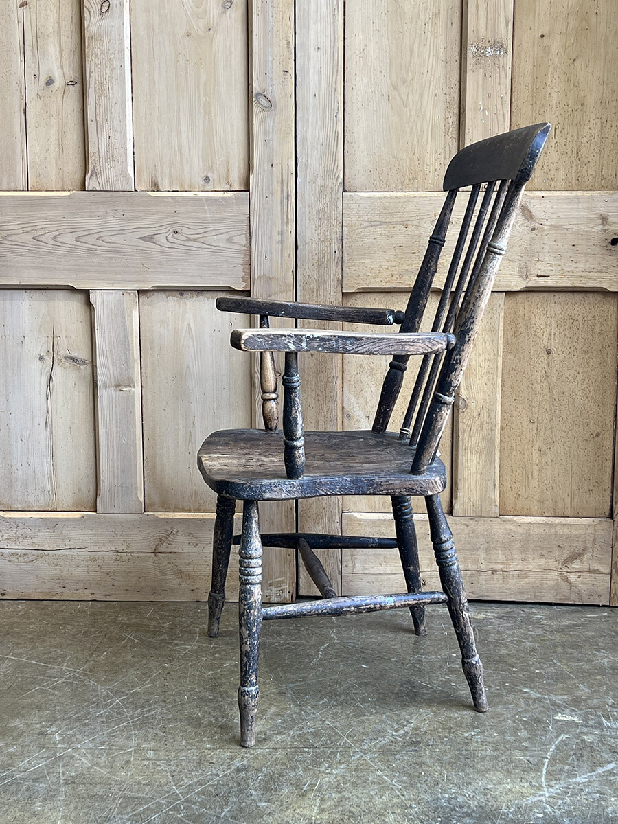 윈저 스틱백 체어는 윈저 체어의 원형이자 가장 기본적인 형태를 갖고 있습니다. 등받이를 이루는 스핀들 부분이 심플한 스틱(stick) 모양을 하고 있기에 스틱백(stickback) 체어라고 부릅니다. 스핀들 중 바깥 쪽의 좌,우 기둥들(uprights)에 스크롤 모양이 들어가게 선반으로 가공되어 있습니다. 팔걸이가 있는 의자를 암체어, 혹은 카버(caver)라고 부르는데 스탠다드 타입의 윈저 체어에 비해 모두 크게 만들어져 있습니다. 편하게 앉아서 작업을 하거나 휴식을 하라는 의미이기도 하죠. 적당한 방석이나 쿠션을 갖추신다면 더욱 안락한 의자로 사용하실 수 있습니다.
