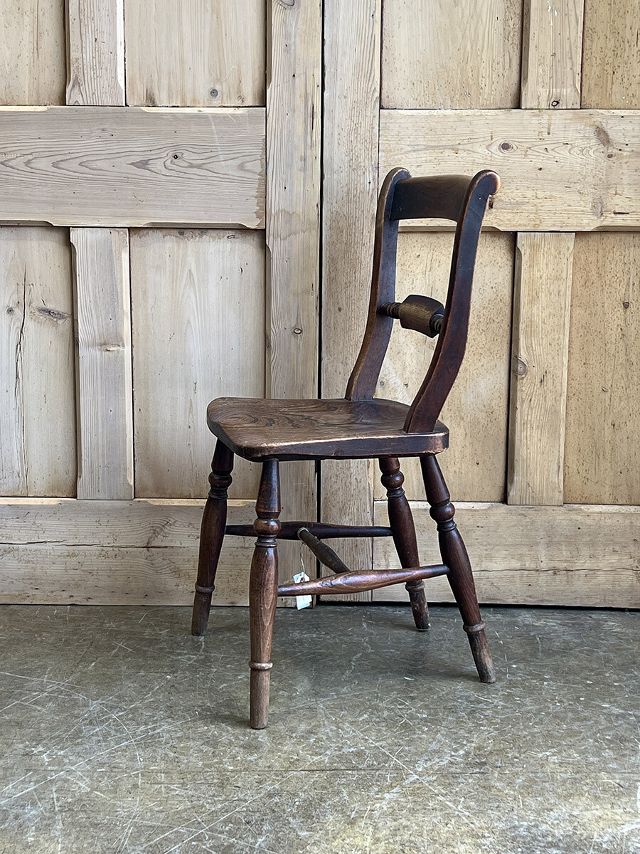 또한 이 체어의 프리미엄은 소재에서도 찾아볼 수 있는데, 시트 부분이 잉글리쉬 엘름(elm ; 느릅나무)으로 제작되었다는 점입니다. 잉글리쉬 엘름(elm ; 느릅나무) 소재의 가구들에 특별한 프리미엄이 얹혀진 이유는, 특정 시점부터 영국 내에서 엘름 나무의 벌목은 금지된 상태이기 때문입니다. 즉, 잉글리쉬 엘름으로 새가구를 만들 수 없고, 고가구에서만 잉글리쉬 엘름을 만날 수 있다는 확실한 희소성이 발생한 것이죠. 1900년대 초 영국에 수입된 목재에서 전해진 병충해로 인해서 영국 뿐 아니라 유럽 여러 나라의 엘름의 태반을 고사시키는 일이 발생했고, 이후 잠시 잠잠해지는 듯 했으나 1940년대에 다시 크게 번지는 바람에 영국에서는 엘름이 보호종으로 지정되어 지금에 이르러서도 귀한 대접을 받게 되었습니다.