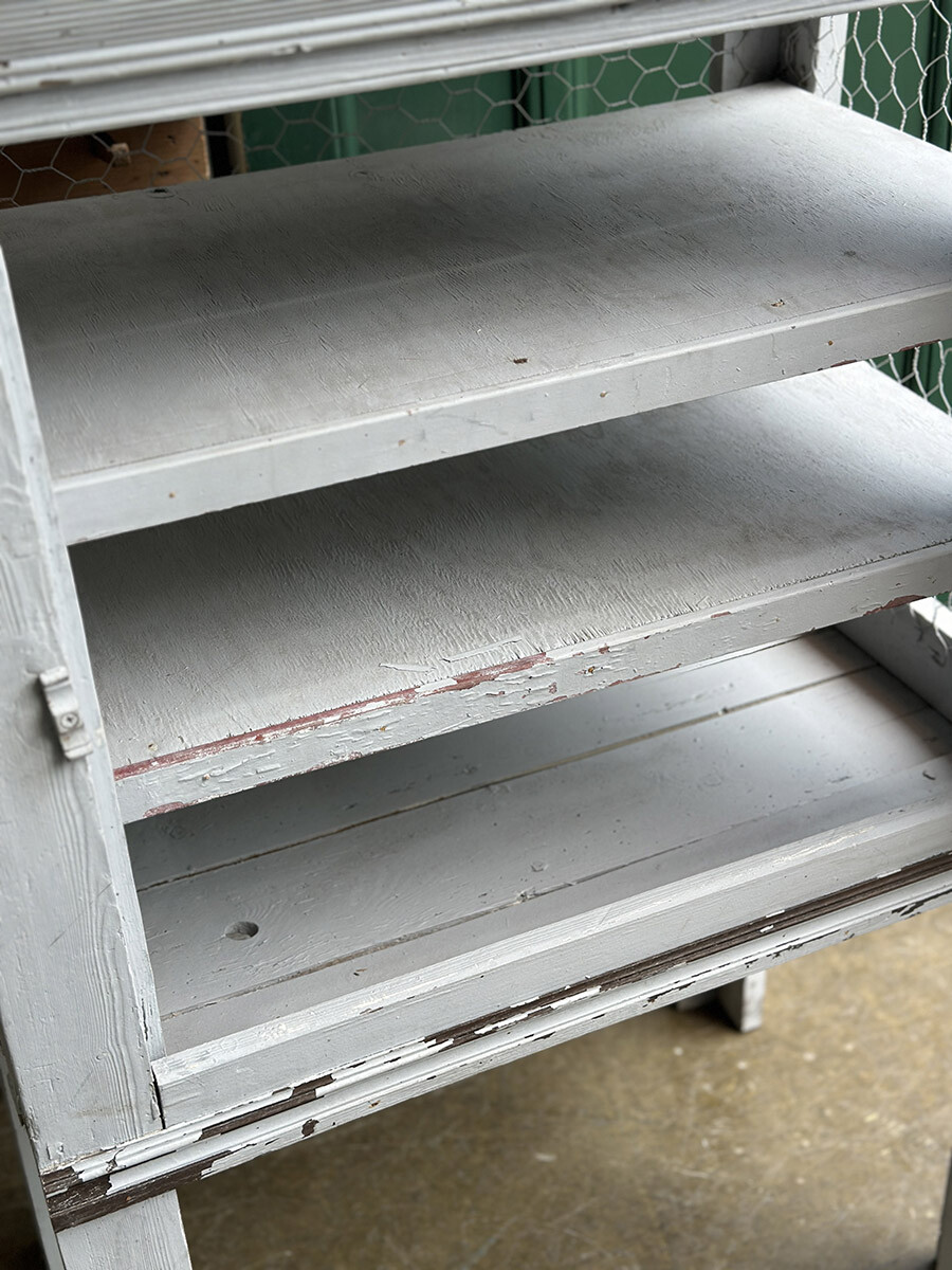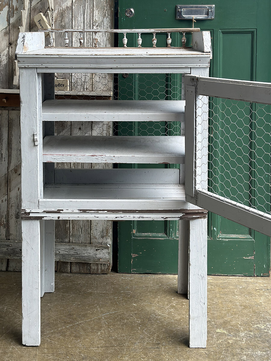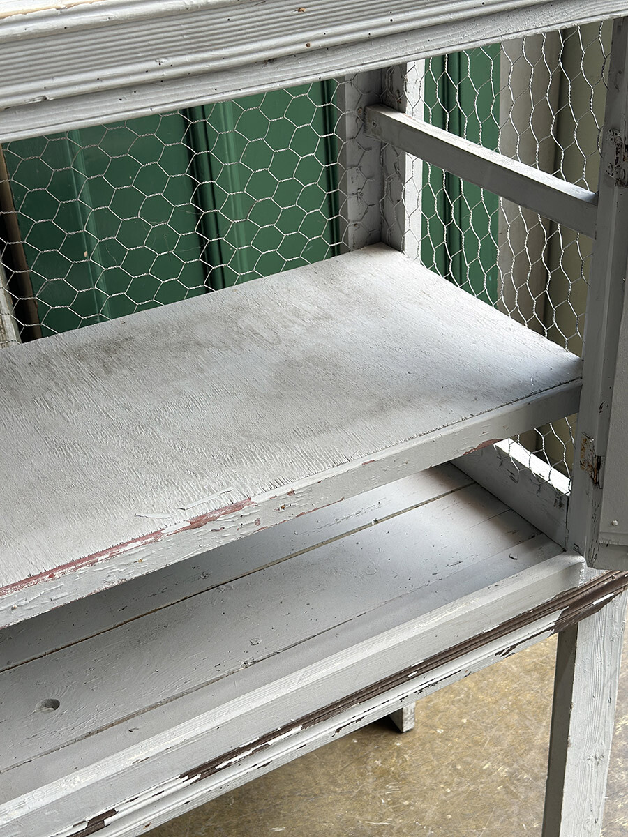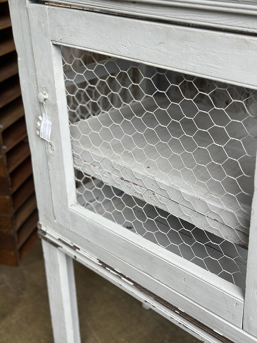 앤틱 파인 소재의 디스플레이용 라더입니다. 내부에는 2개의 선반 패널이 있어서 3단으로 쪼개어 쓰는 것도 가능하고, 패널은 탈거가 가능하므로 모두 빼서 넉넉하게 공간을 활용할 수도 있습니다. 라더(ladder)는 본래 식용 지방인 라드나 소세지, 염장 육류인 샤퀴테리, 치즈 등을 보관하기 위해 통기가 잘 되는 캐비넷이 필요해서 제작된 것인데, 따라서 아이언 메쉬로 정면과 측면 양쪽에 통기가 잘 되게끔 제작되어 있습니다. 냉장 기술이 좋아지고 가정에서도 냉장고를 대신 사용하게 되면서부터는 통기가 잘되는만큼 리넨을 보관하는 캐비넷 용도로 그 기능이 대체 되거나, 그 자체로 개성이 있는만큼 빈티지 캐릭터 디스플레이를 위한 베이스 퍼니쳐로 사용되기도 합니다.