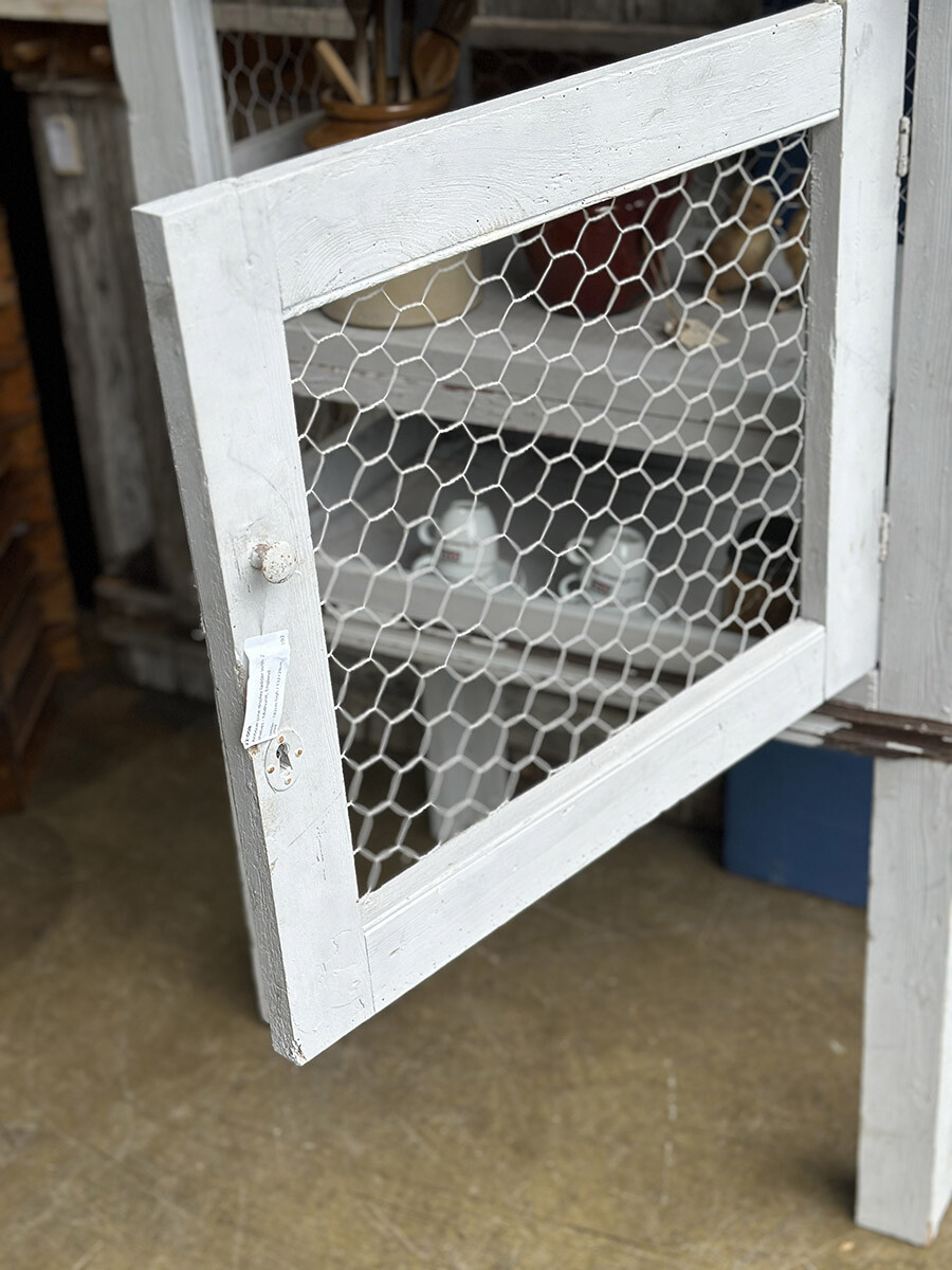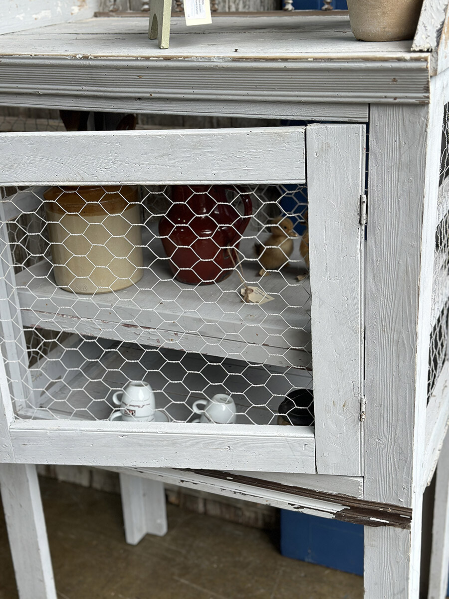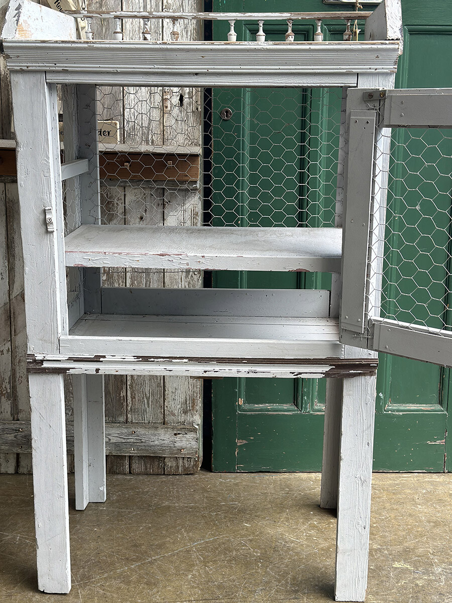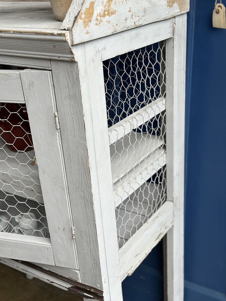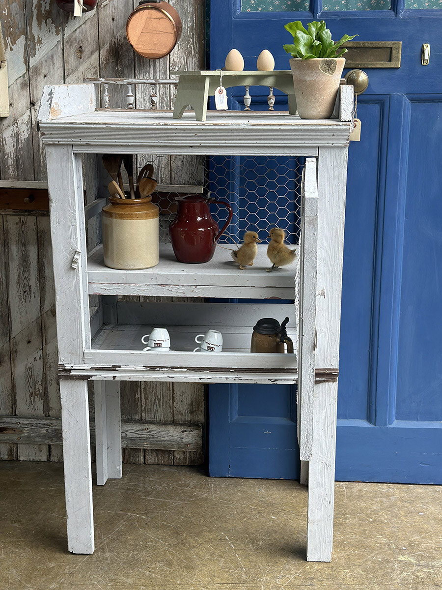 앤틱 파인 소재의 디스플레이용 라더입니다. 내부에는 2개의 선반 패널이 있어서 3단으로 쪼개어 쓰는 것도 가능하고, 패널은 탈거가 가능하므로 모두 빼서 넉넉하게 공간을 활용할 수도 있습니다. 라더(ladder)는 본래 식용 지방인 라드나 소세지, 염장 육류인 샤퀴테리, 치즈 등을 보관하기 위해 통기가 잘 되는 캐비넷이 필요해서 제작된 것인데, 따라서 아이언 메쉬로 정면과 측면 양쪽에 통기가 잘 되게끔 제작되어 있습니다. 냉장 기술이 좋아지고 가정에서도 냉장고를 대신 사용하게 되면서부터는 통기가 잘되는만큼 리넨을 보관하는 캐비넷 용도로 그 기능이 대체 되거나, 그 자체로 개성이 있는만큼 빈티지 캐릭터 디스플레이를 위한 베이스 퍼니쳐로 사용되기도 합니다.