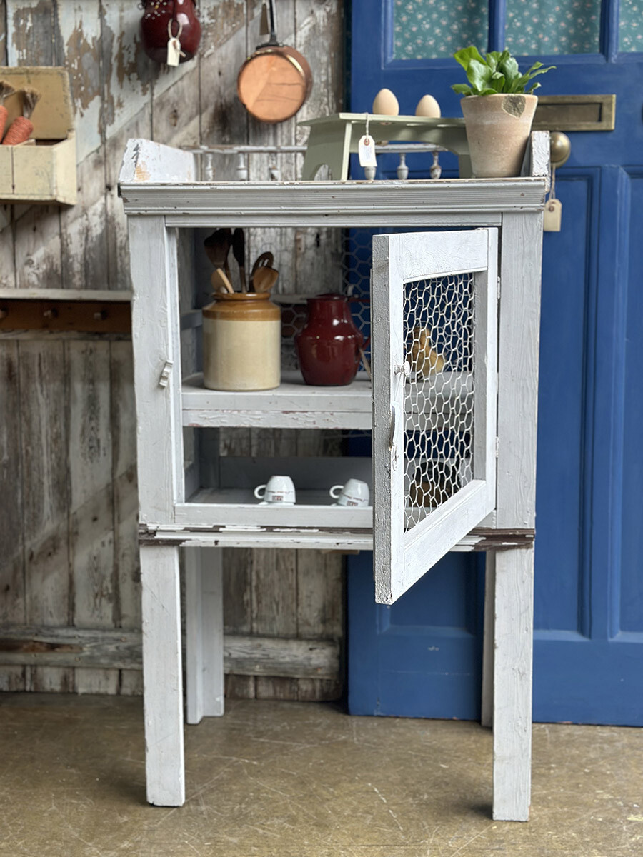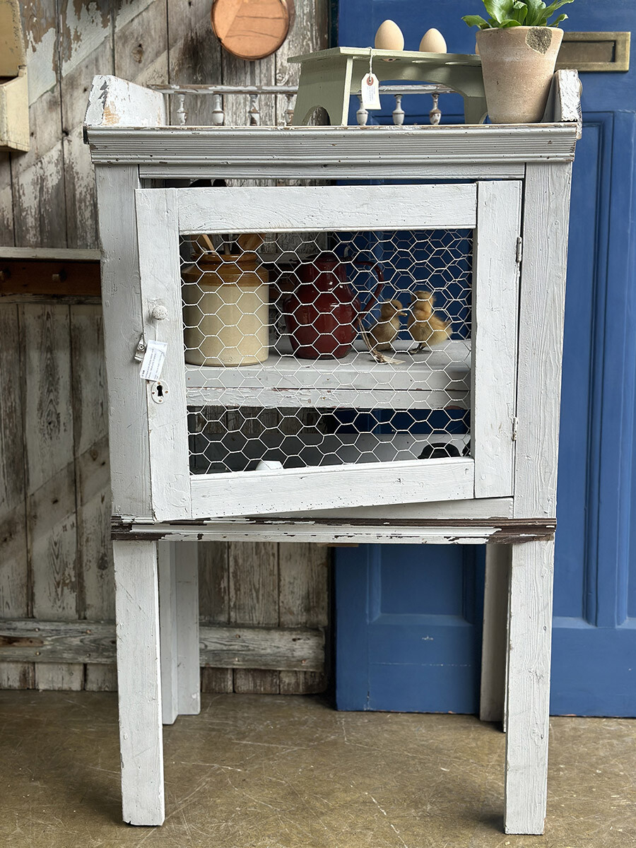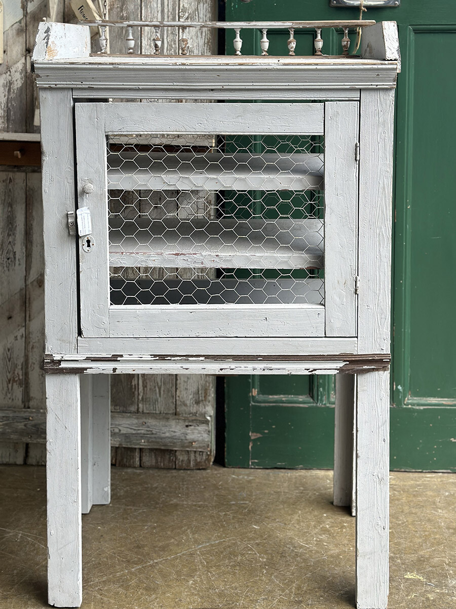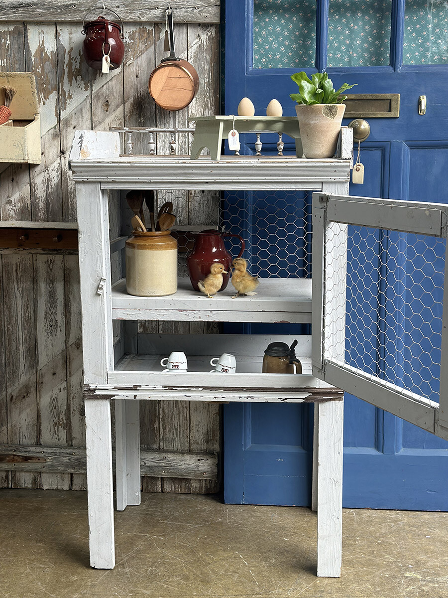 앤틱 파인 소재의 디스플레이용 라더입니다. 내부에는 2개의 선반 패널이 있어서 3단으로 쪼개어 쓰는 것도 가능하고, 패널은 탈거가 가능하므로 모두 빼서 넉넉하게 공간을 활용할 수도 있습니다. 라더(ladder)는 본래 식용 지방인 라드나 소세지, 염장 육류인 샤퀴테리, 치즈 등을 보관하기 위해 통기가 잘 되는 캐비넷이 필요해서 제작된 것인데, 따라서 아이언 메쉬로 정면과 측면 양쪽에 통기가 잘 되게끔 제작되어 있습니다. 냉장 기술이 좋아지고 가정에서도 냉장고를 대신 사용하게 되면서부터는 통기가 잘되는만큼 리넨을 보관하는 캐비넷 용도로 그 기능이 대체 되거나, 그 자체로 개성이 있는만큼 빈티지 캐릭터 디스플레이를 위한 베이스 퍼니쳐로 사용되기도 합니다.