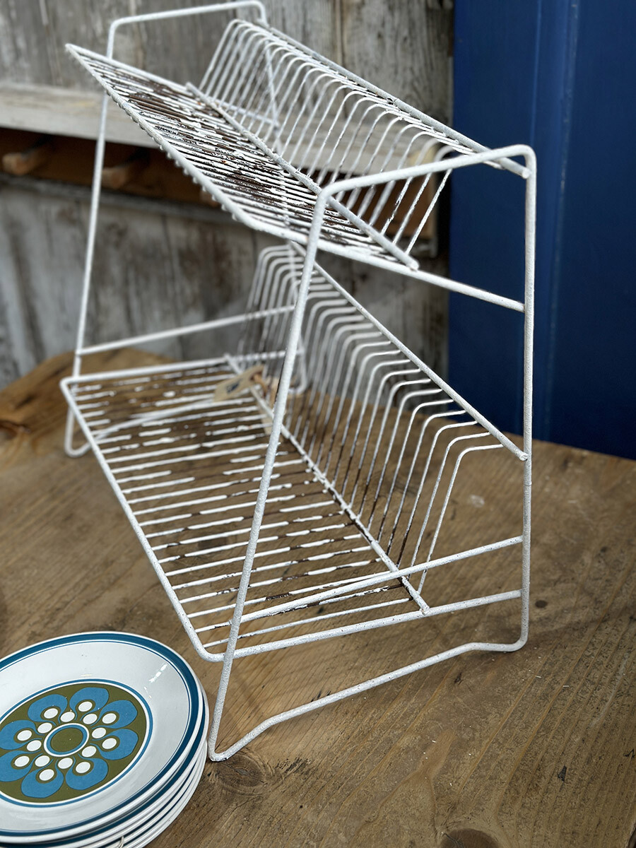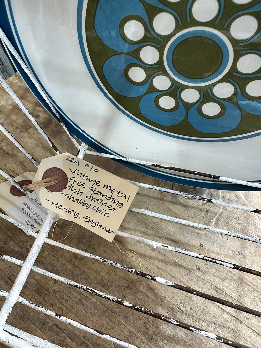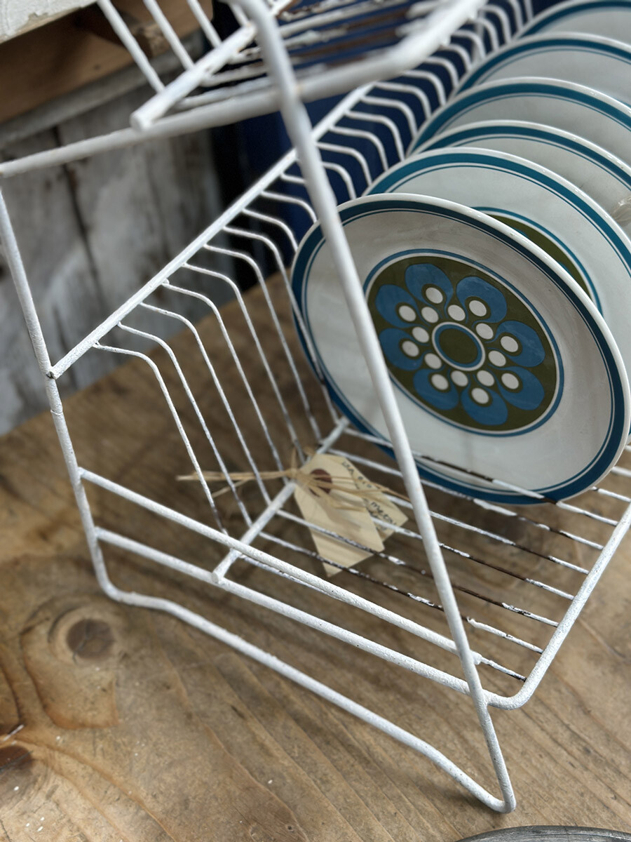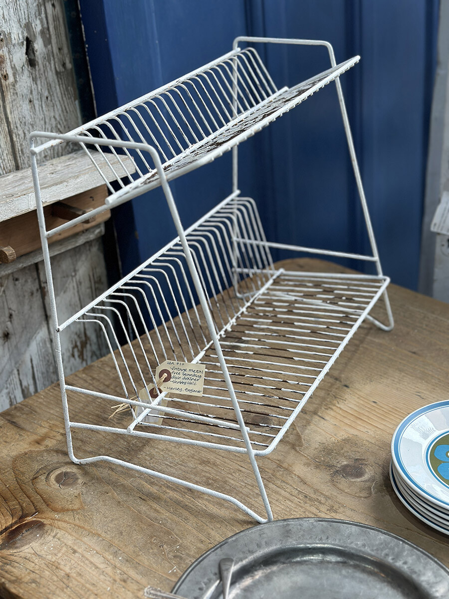 화이트 컬러의 빈티지 디쉬 드레이너입니다. 싱크대나 커보드 위에 올려두기 편하게끔 프리 스탠딩 타입으로 제작되었으며, 소재는 철로 제작되었습니다.