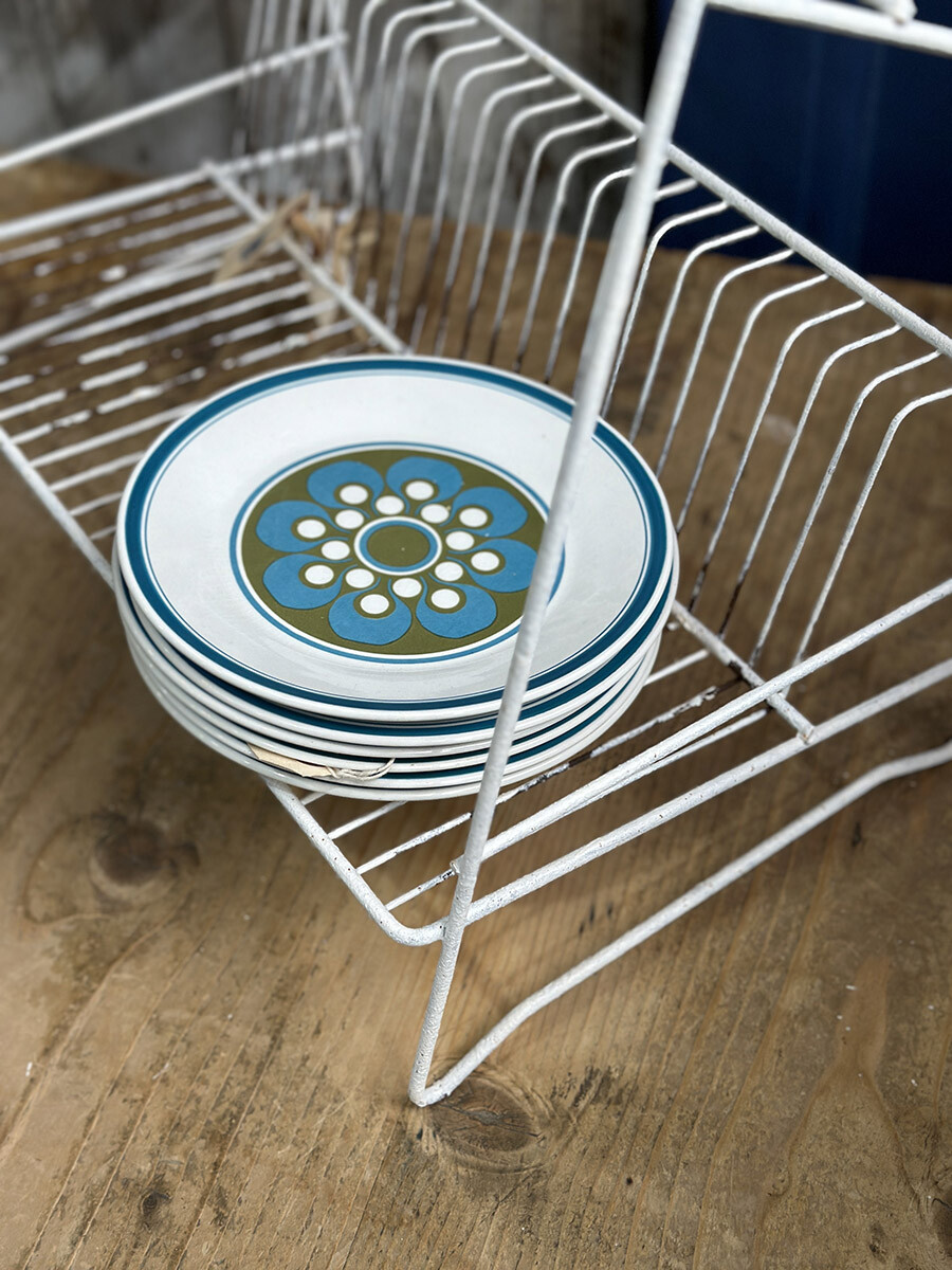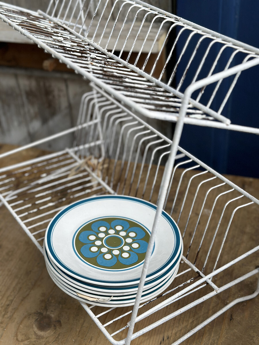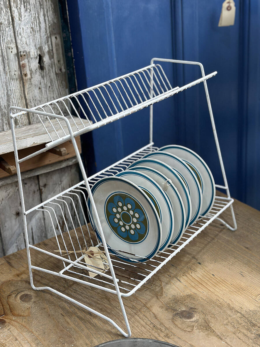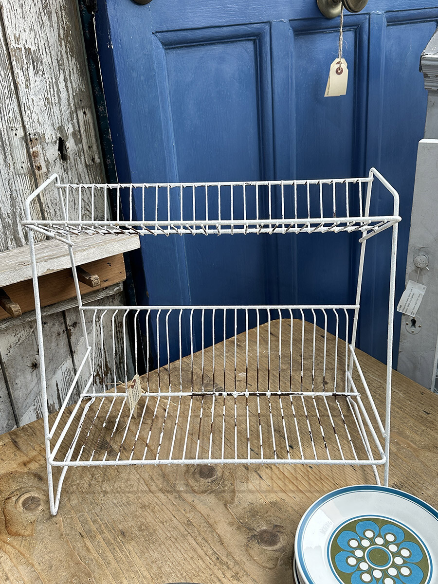 화이트 컬러의 빈티지 디쉬 드레이너입니다. 싱크대나 커보드 위에 올려두기 편하게끔 프리 스탠딩 타입으로 제작되었으며, 소재는 철로 제작되었습니다.